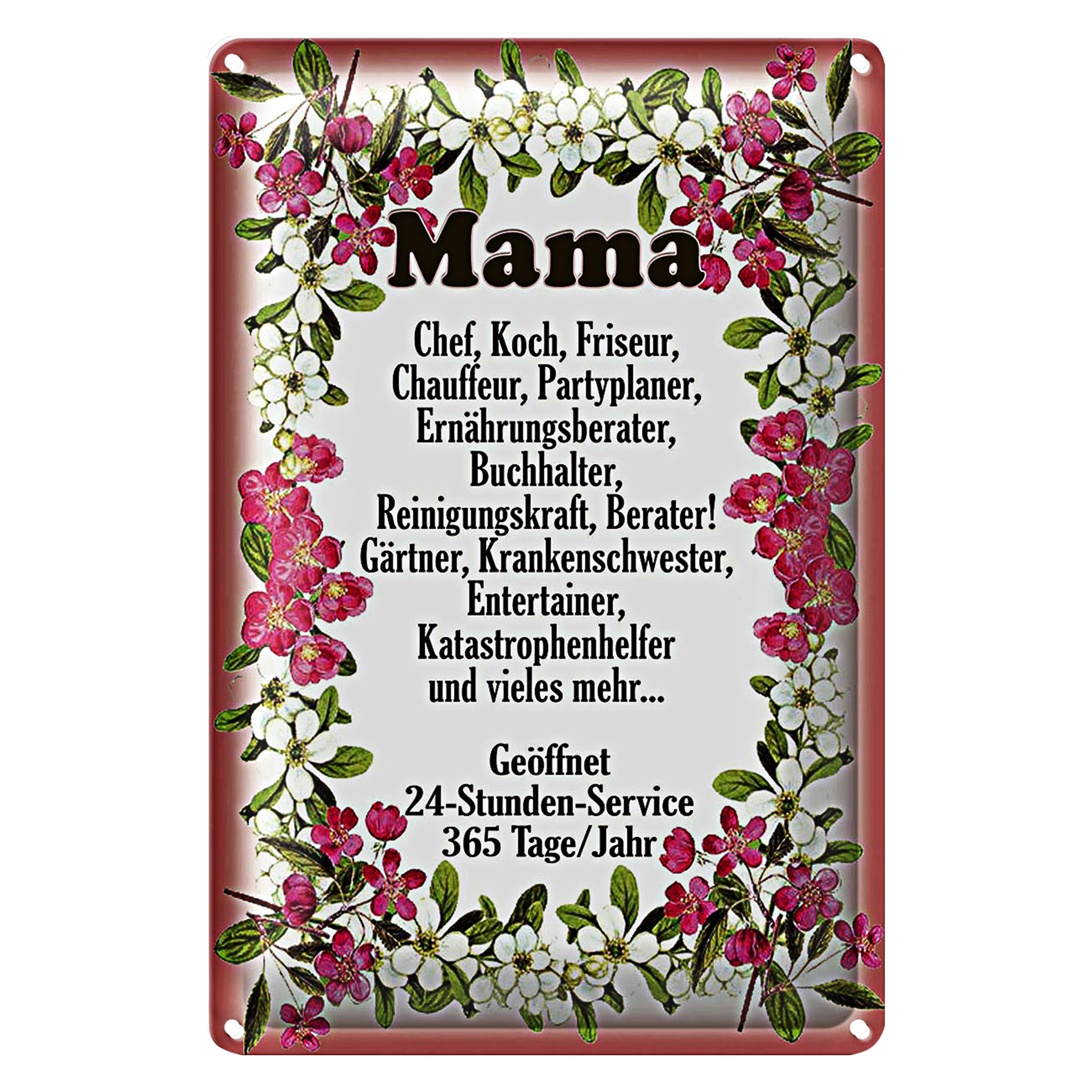 Blechschild Spruch 20x30cm Mama Chef Koch Friseur Blumen