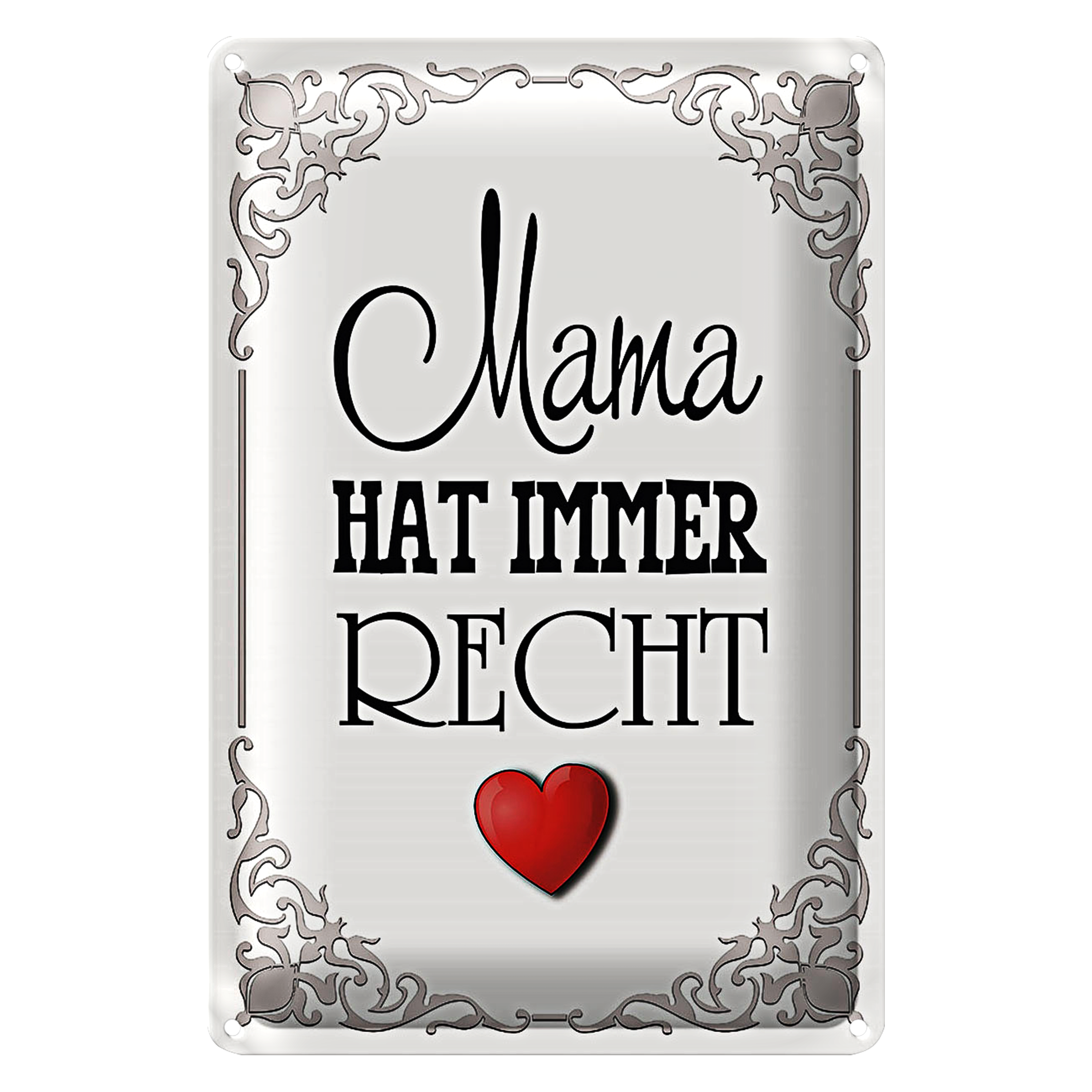 Blechschild Spruch 20x30cm Mama hat immer Recht Herz