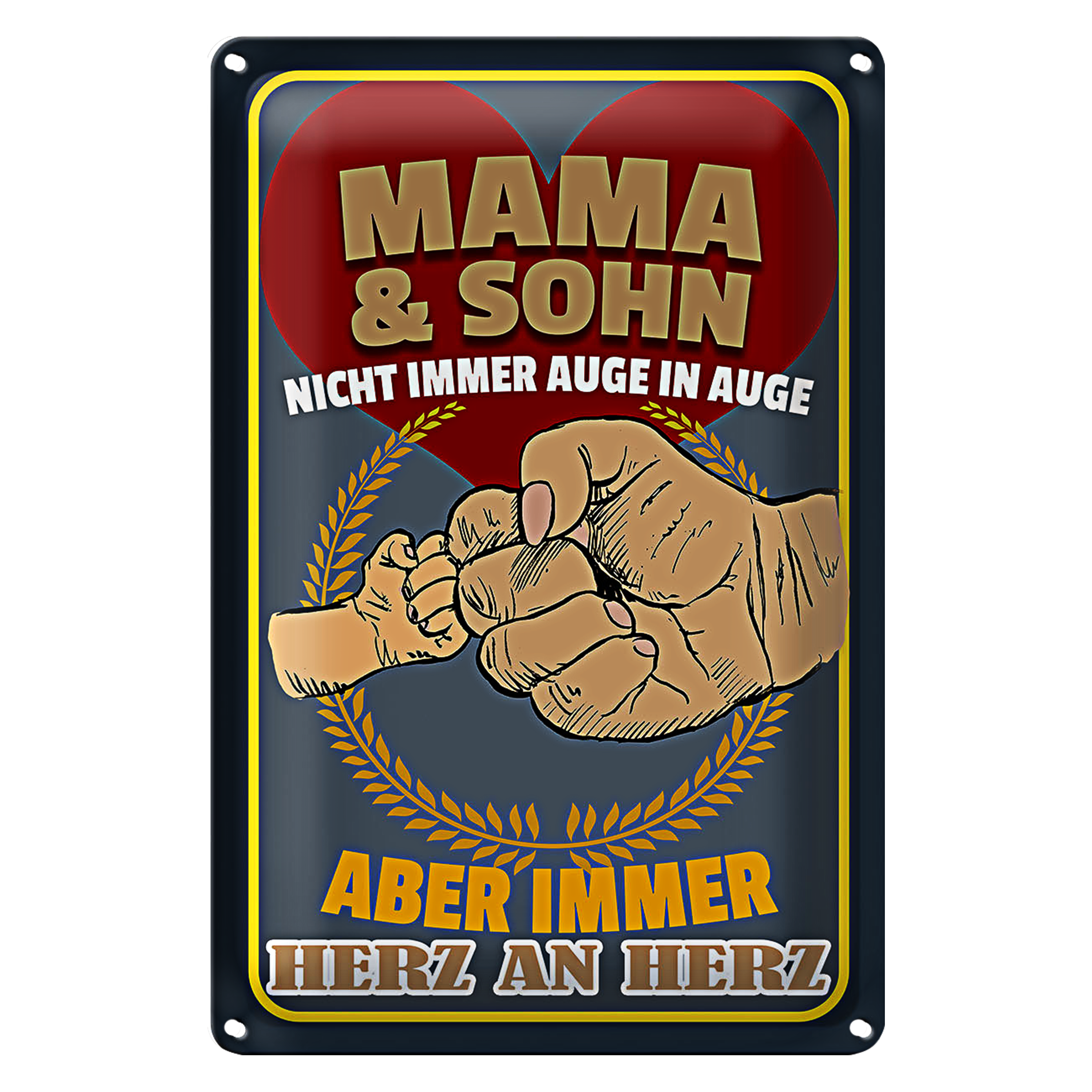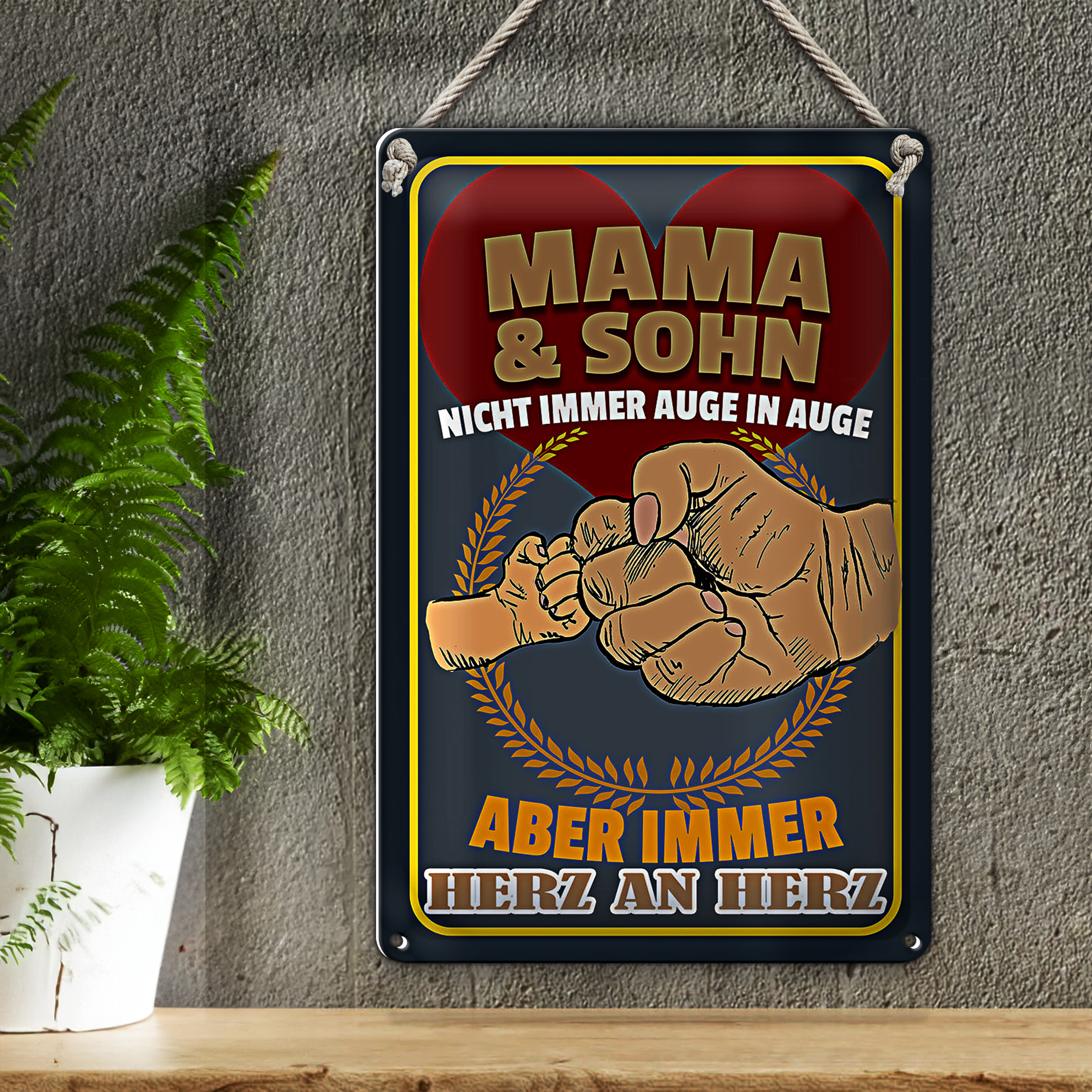 Blechschild Spruch 20x30cm Mama und Sohn immer Herz an Herz