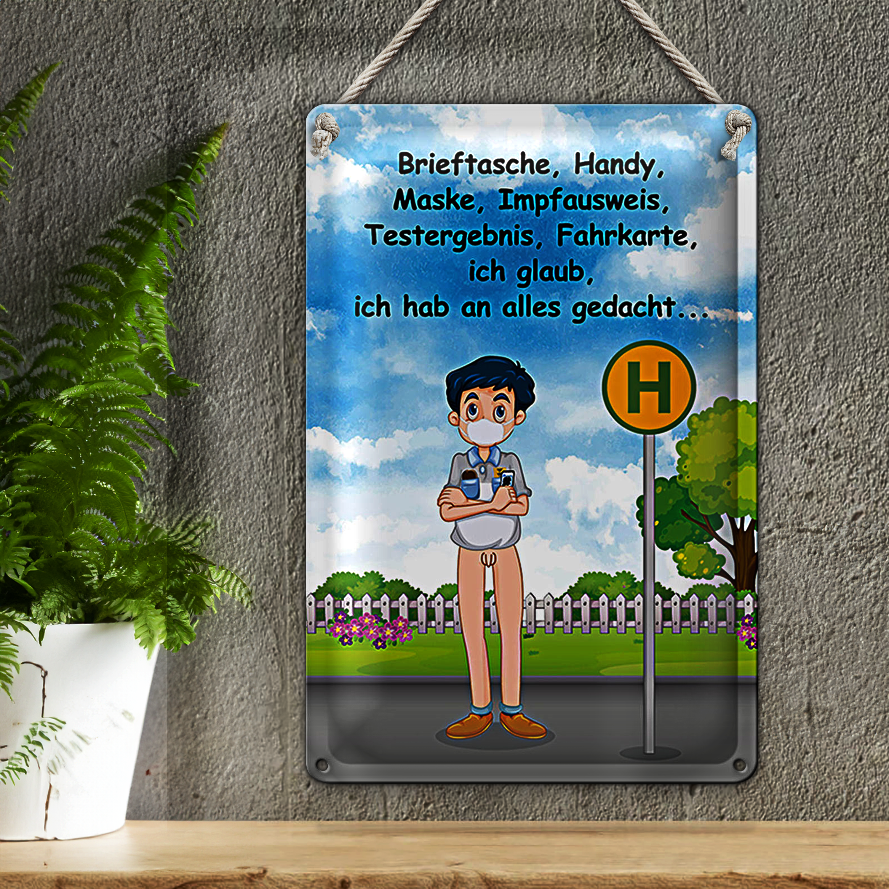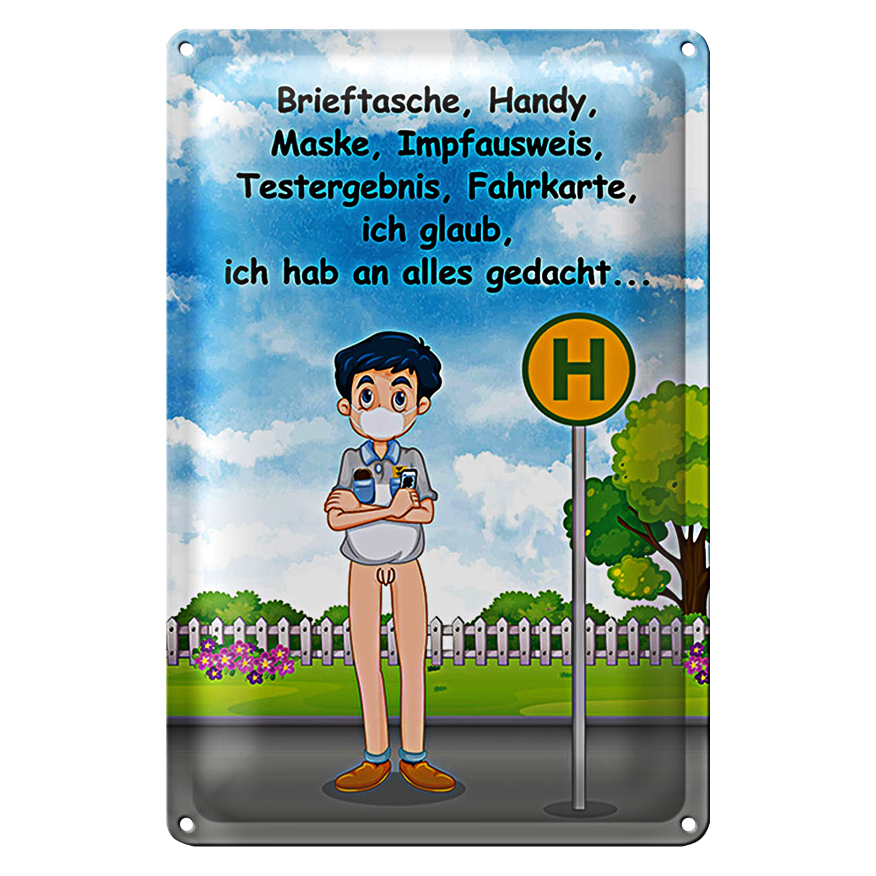 Blechschild Spruch 20x30cm Maske Impfausweis alles gedacht