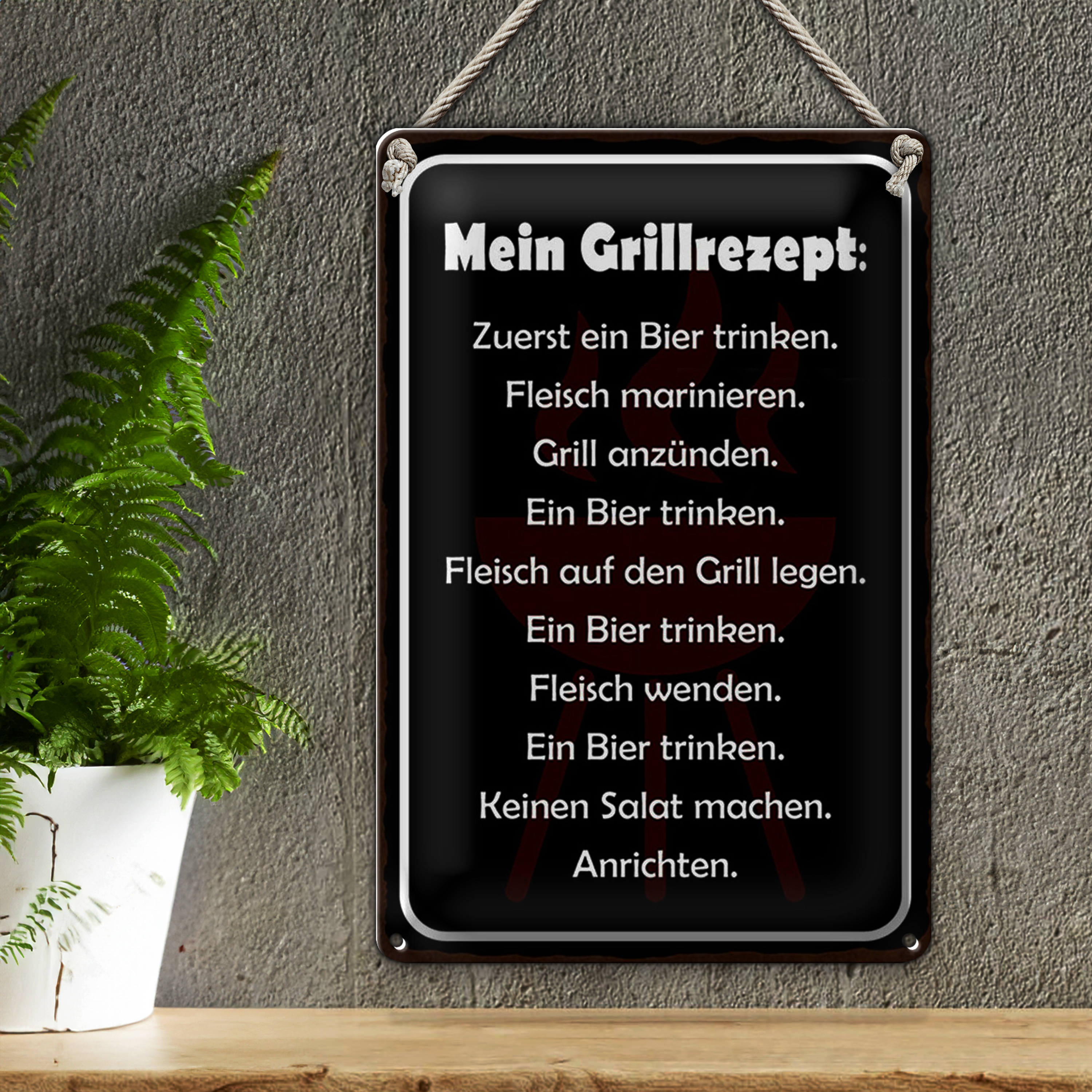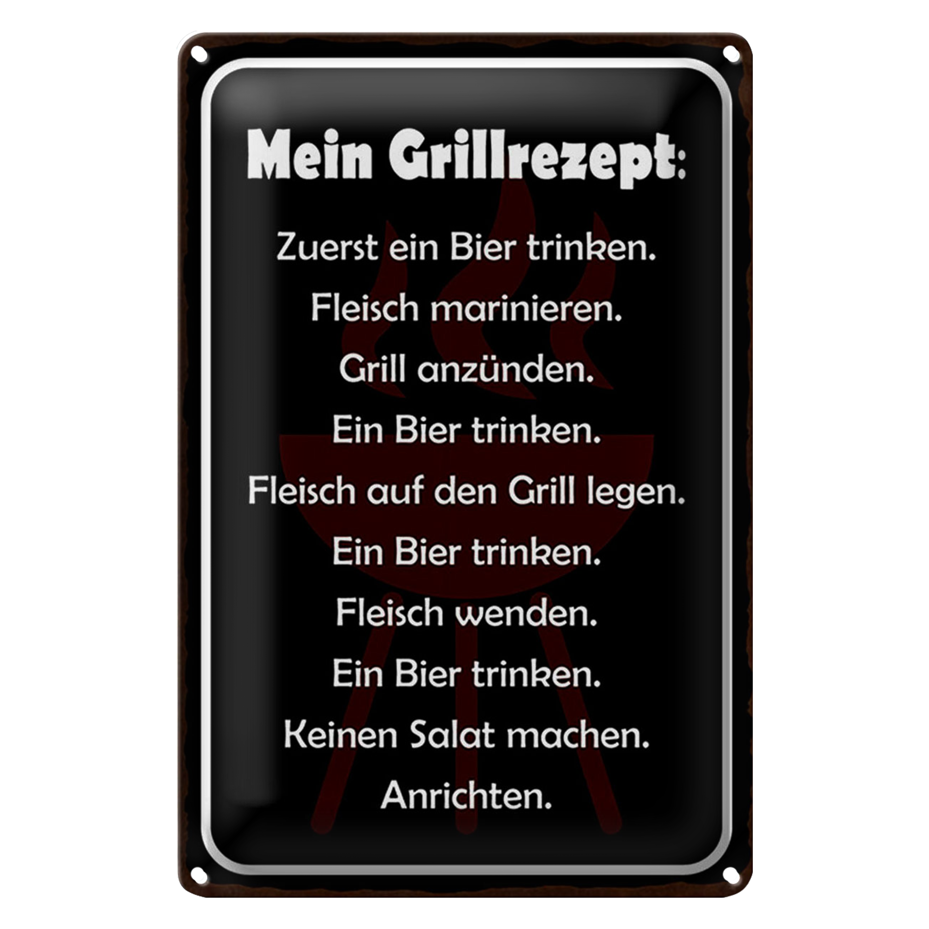 Blechschild Spruch 20x30cm Mein Grillrezept zuerst Bier