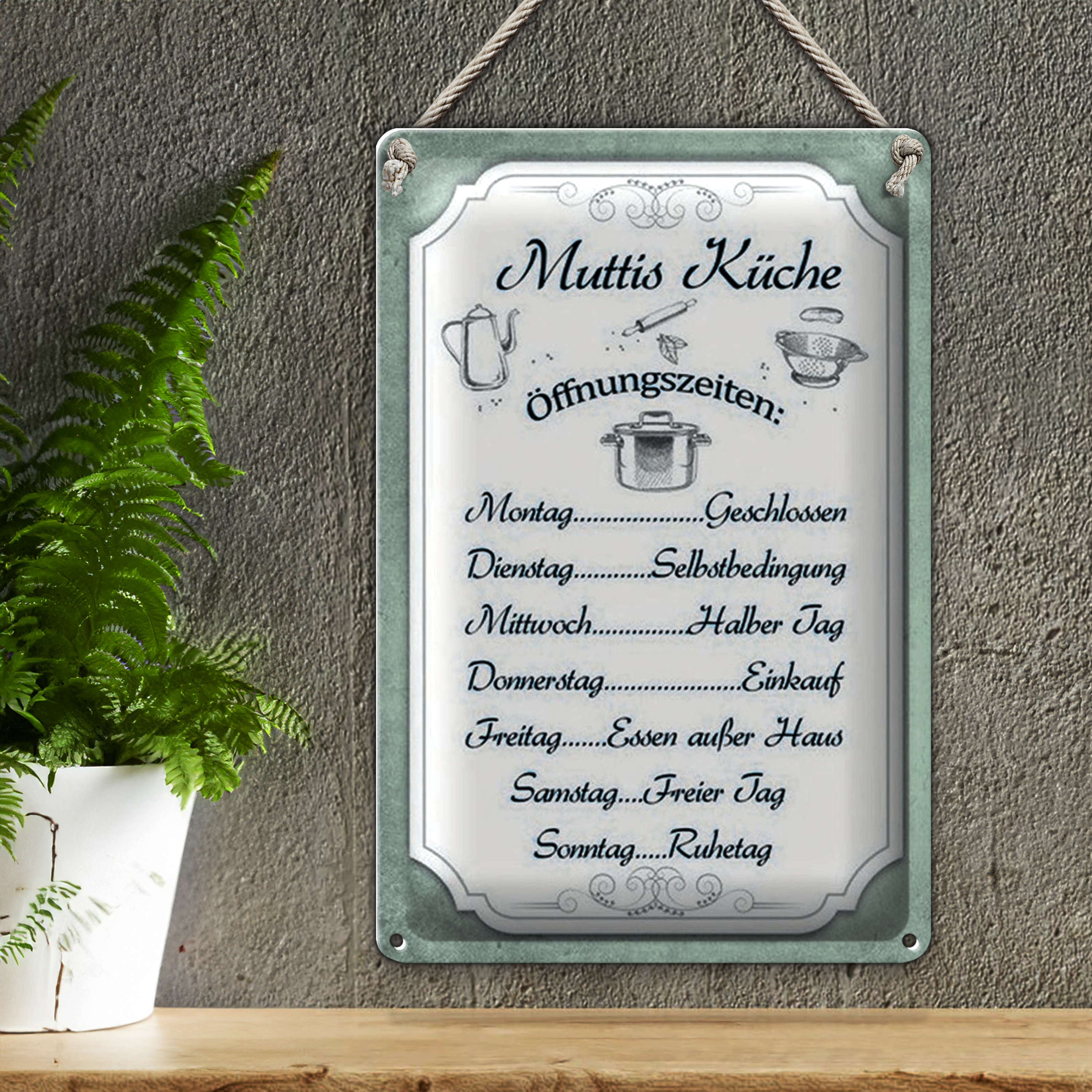 Blechschild Spruch 20x30cm Muttis Küche Öffnungszeiten