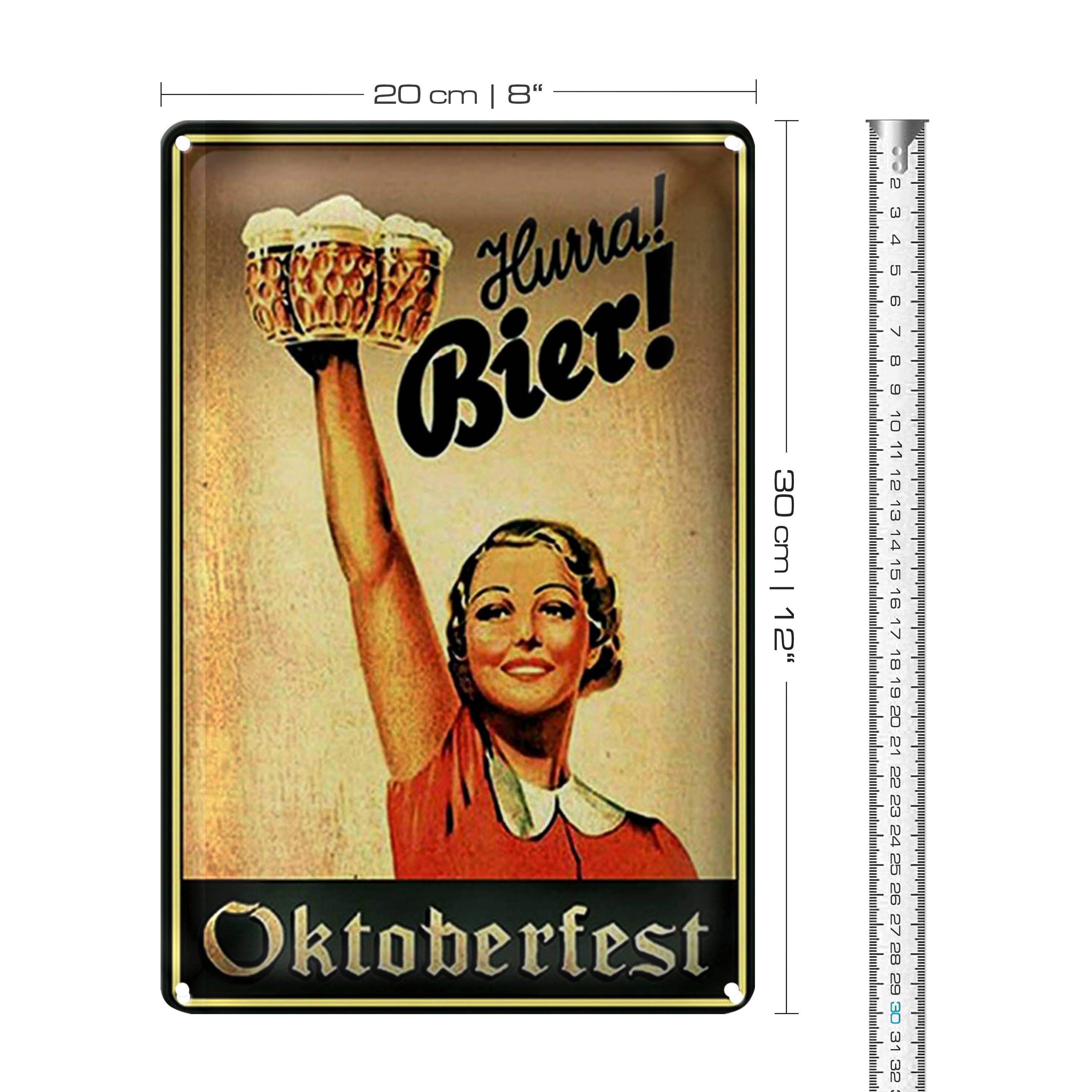 Blechschild Spruch 20x30cm Oktoberfest Hurra Frau mit Bier