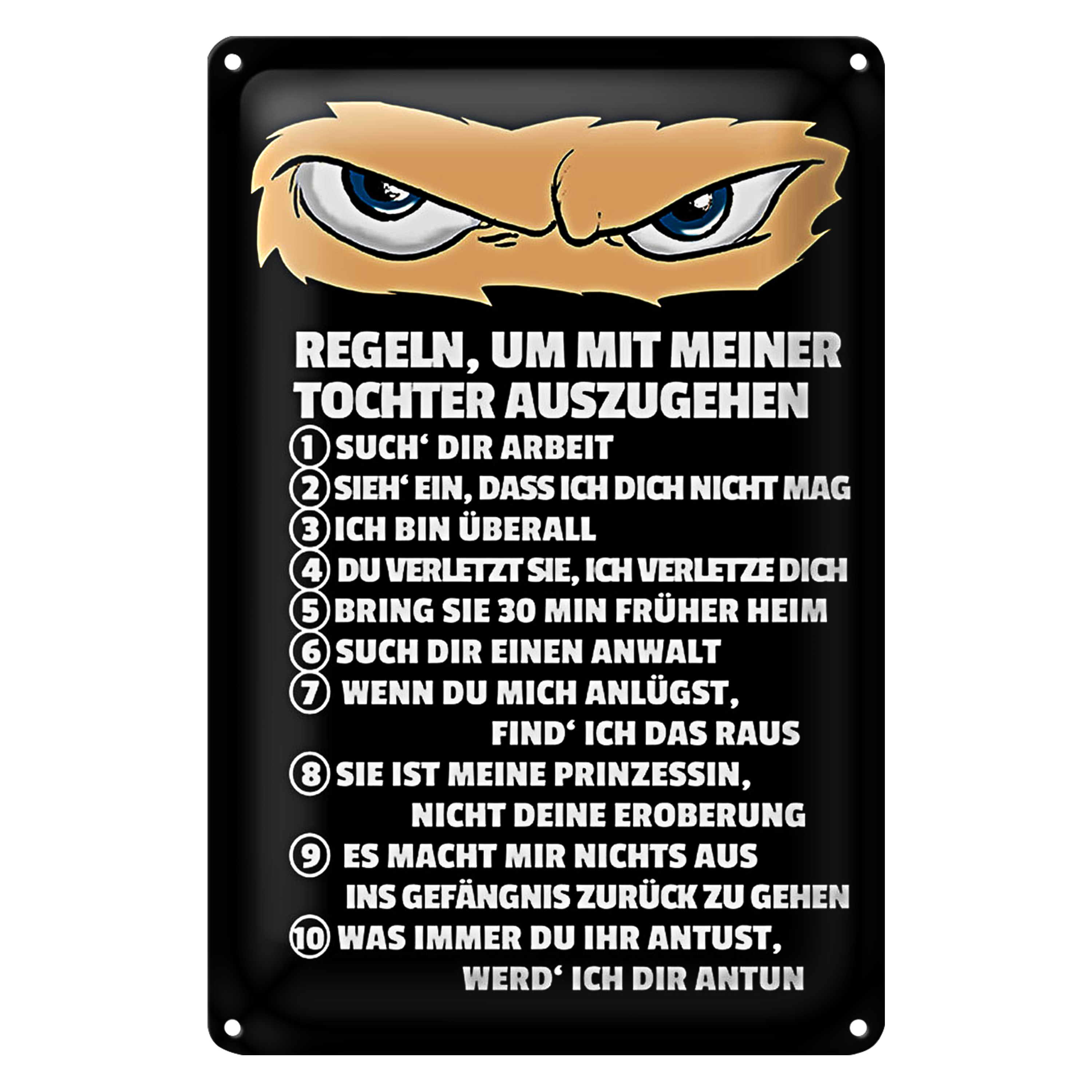 Blechschild Spruch 20x30cm Regeln um mit Tochter auszugehen