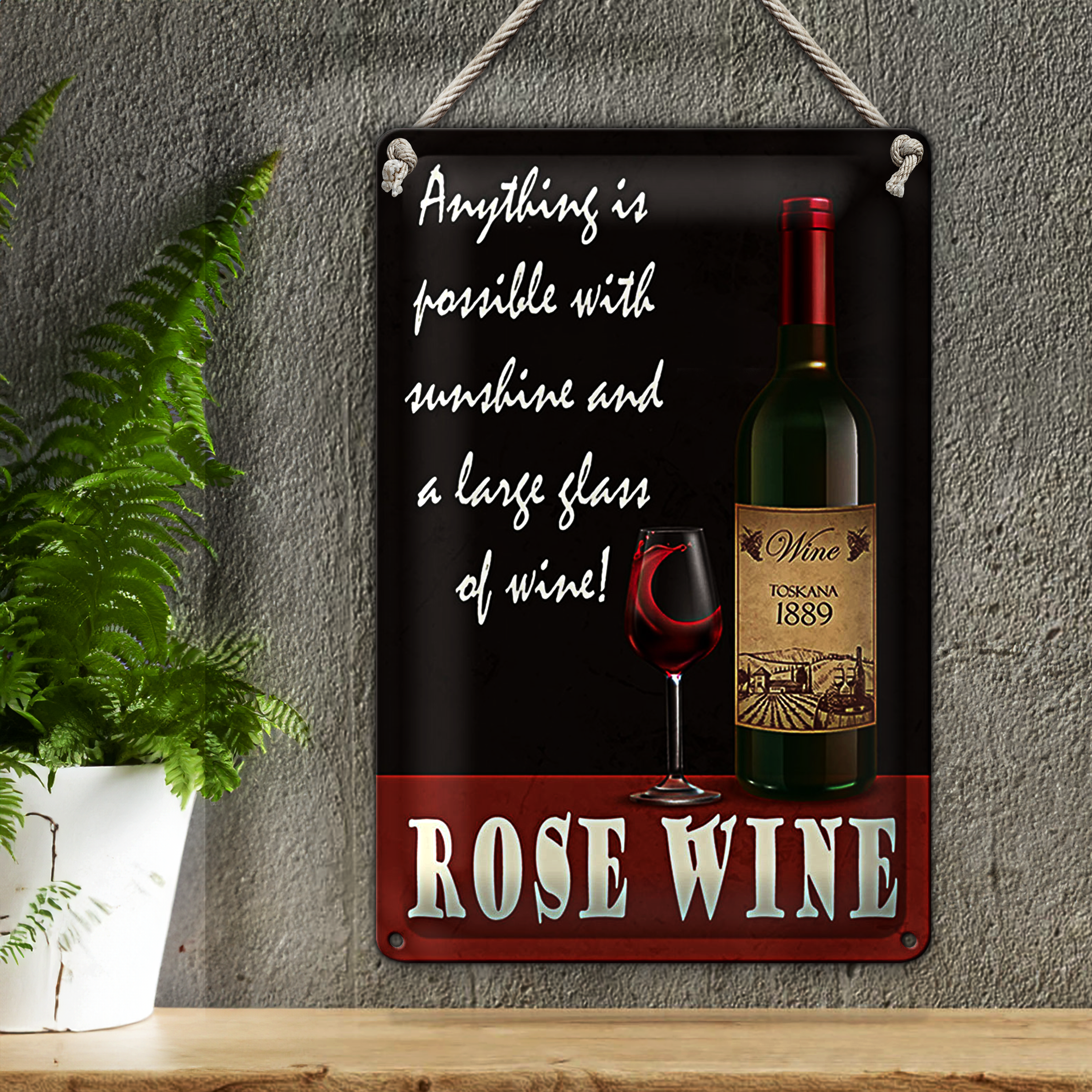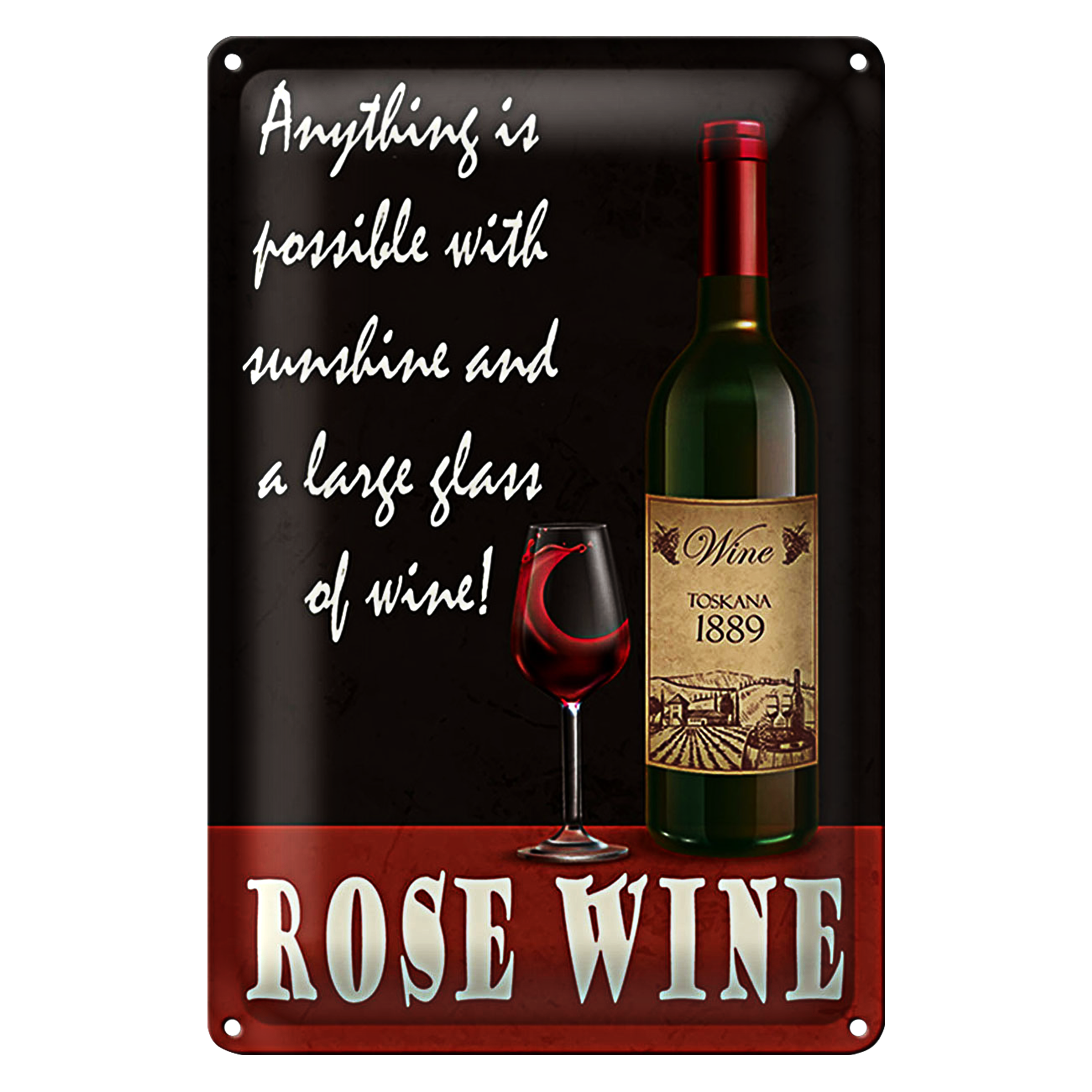 Blechschild Spruch 20x30cm Rose Wein anything is possible