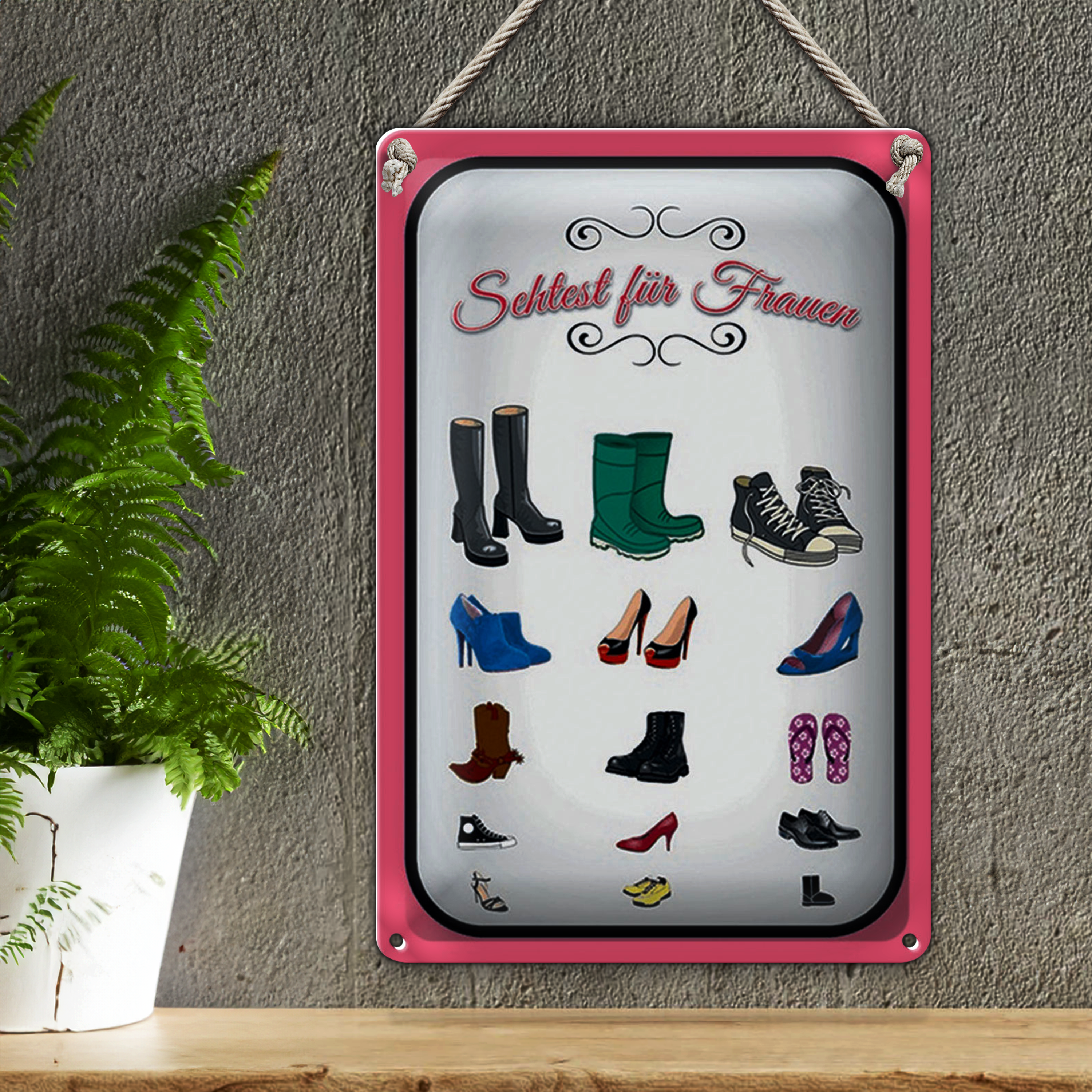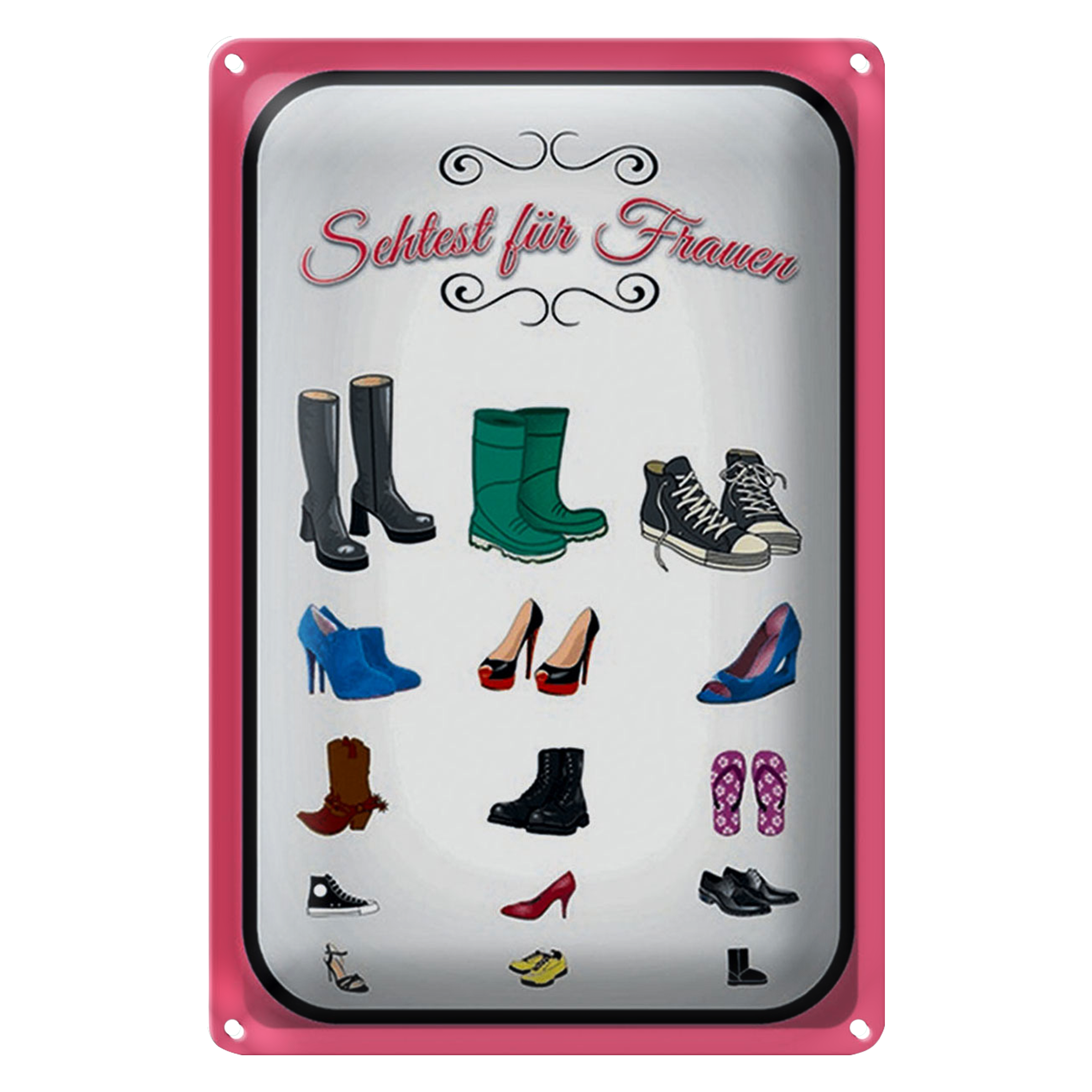 Blechschild Spruch 20x30cm Schuhe Arten Sehtest für Frauen