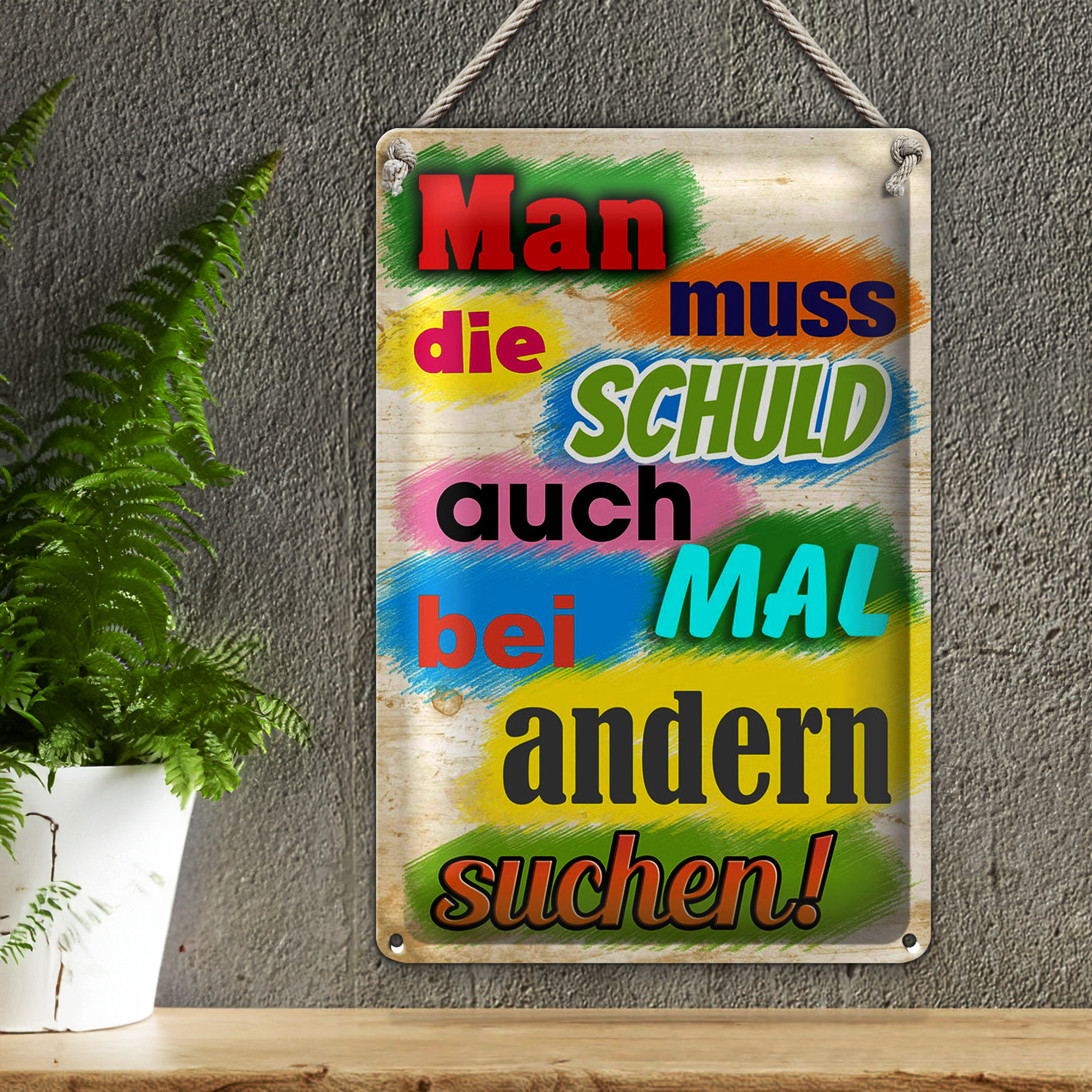 Blechschild Spruch 20x30cm Schuld auch bei anderen suchen