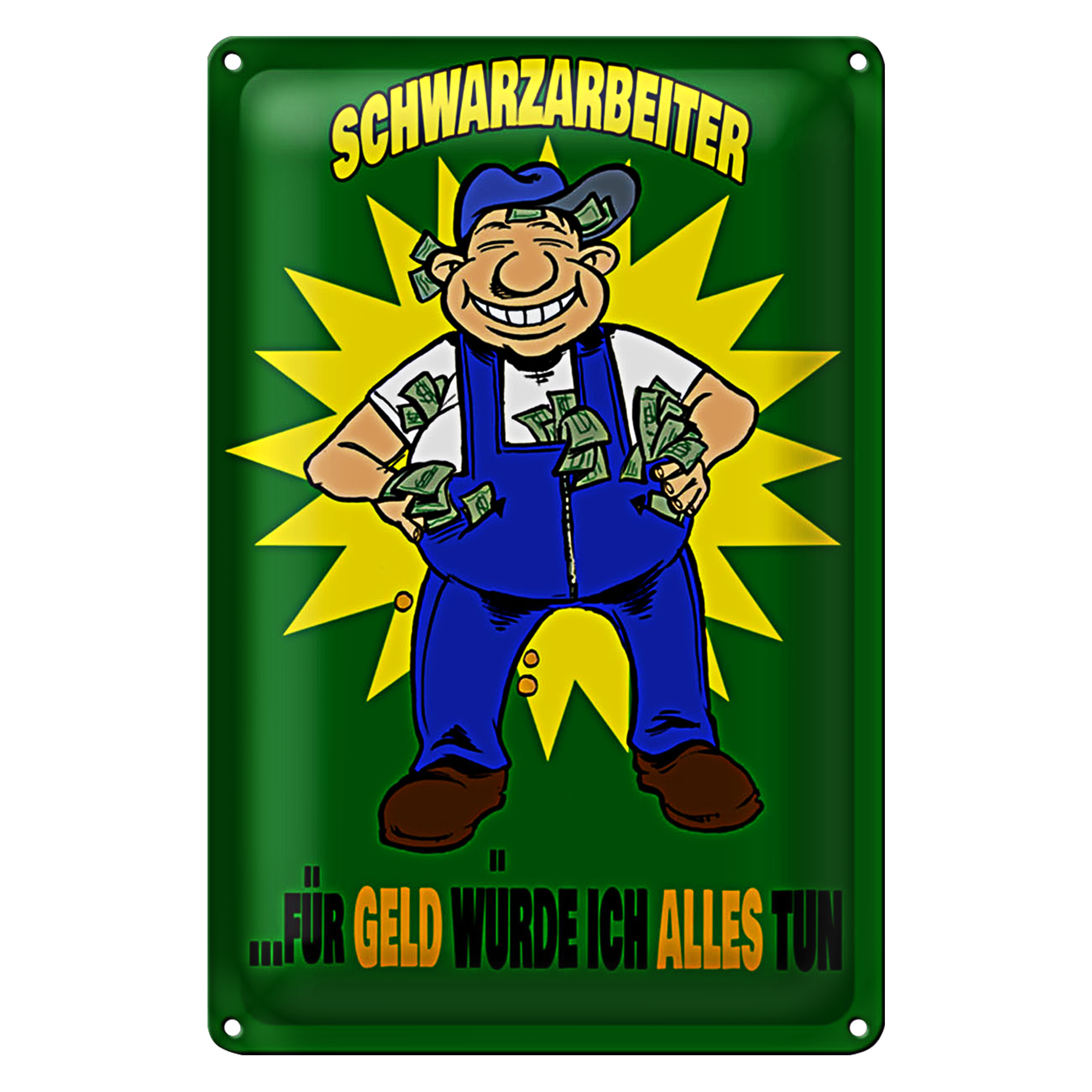 Blechschild Spruch 20x30cm Schwarzarbeiter für Geld alles tun
