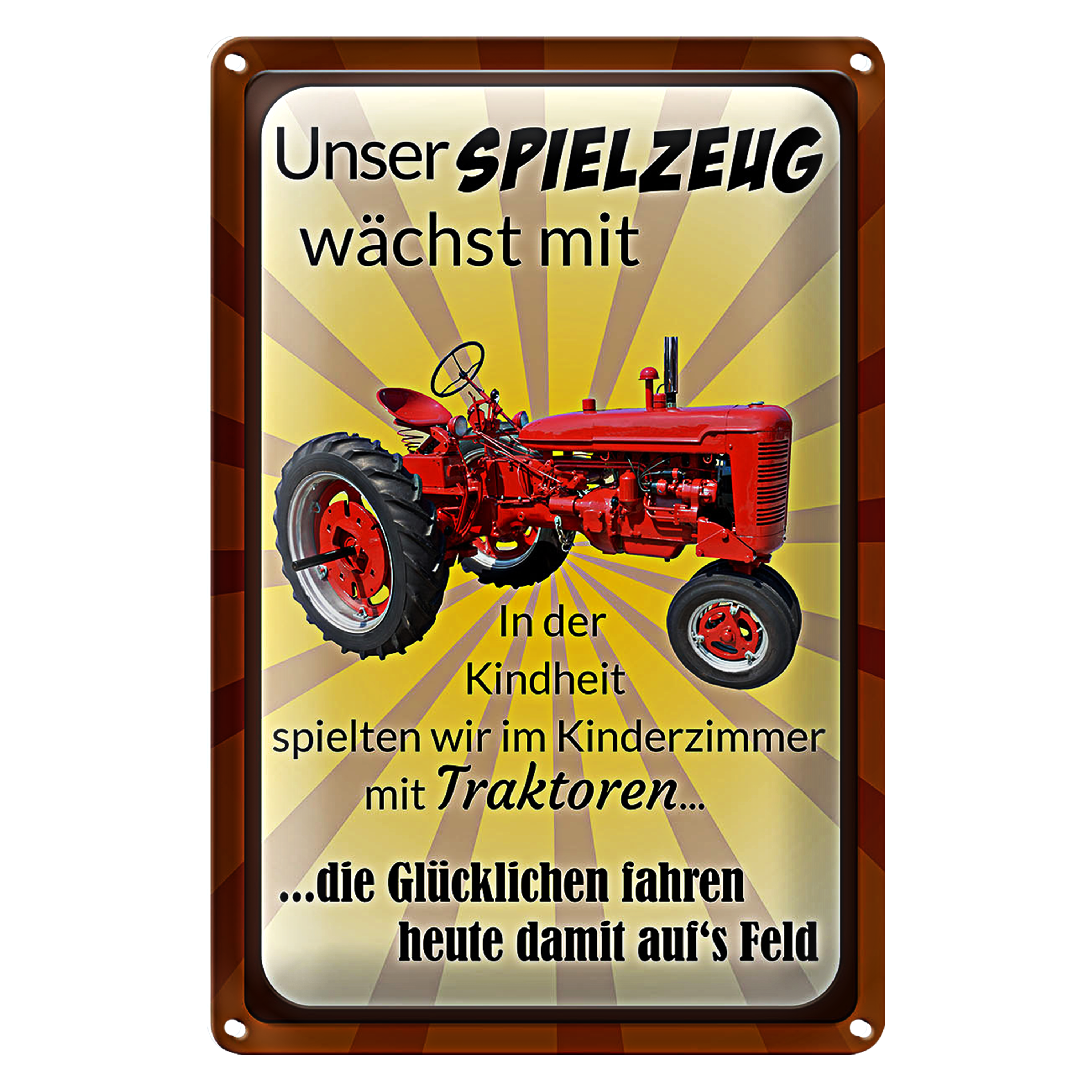 Blechschild Spruch 20x30cm Spielzeug wächst mit Traktor
