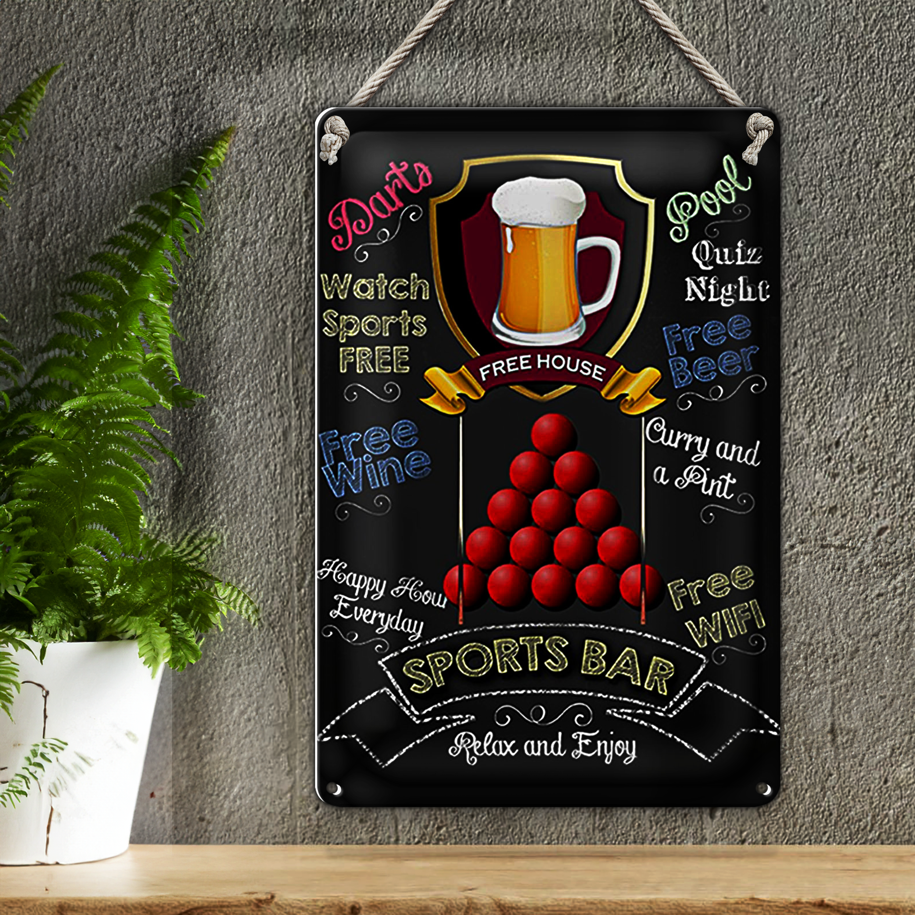 Blechschild Spruch 20x30cm sports bar Free WIFI free Beer