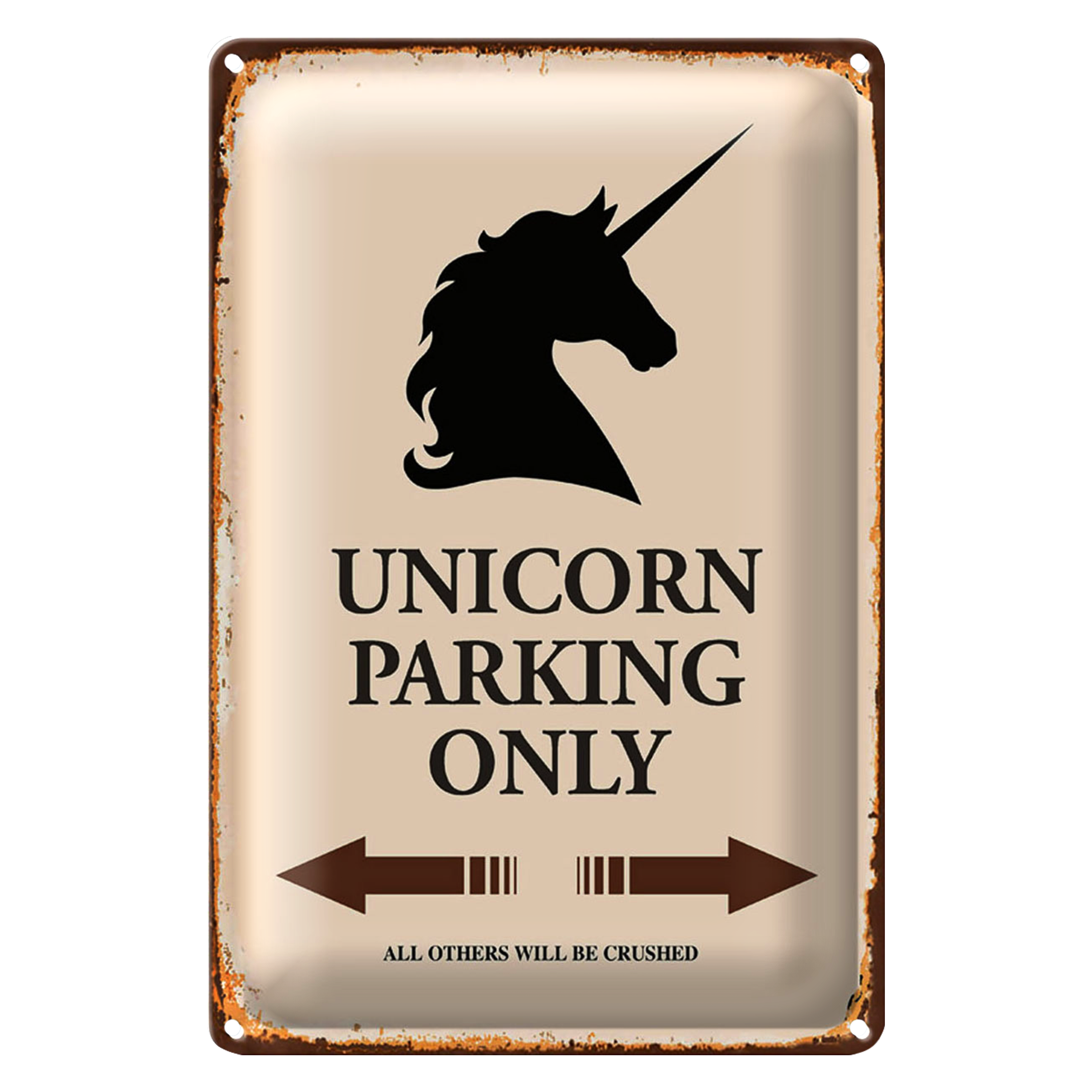 Blechschild Spruch 20x30cm Unicorn Parking only all others