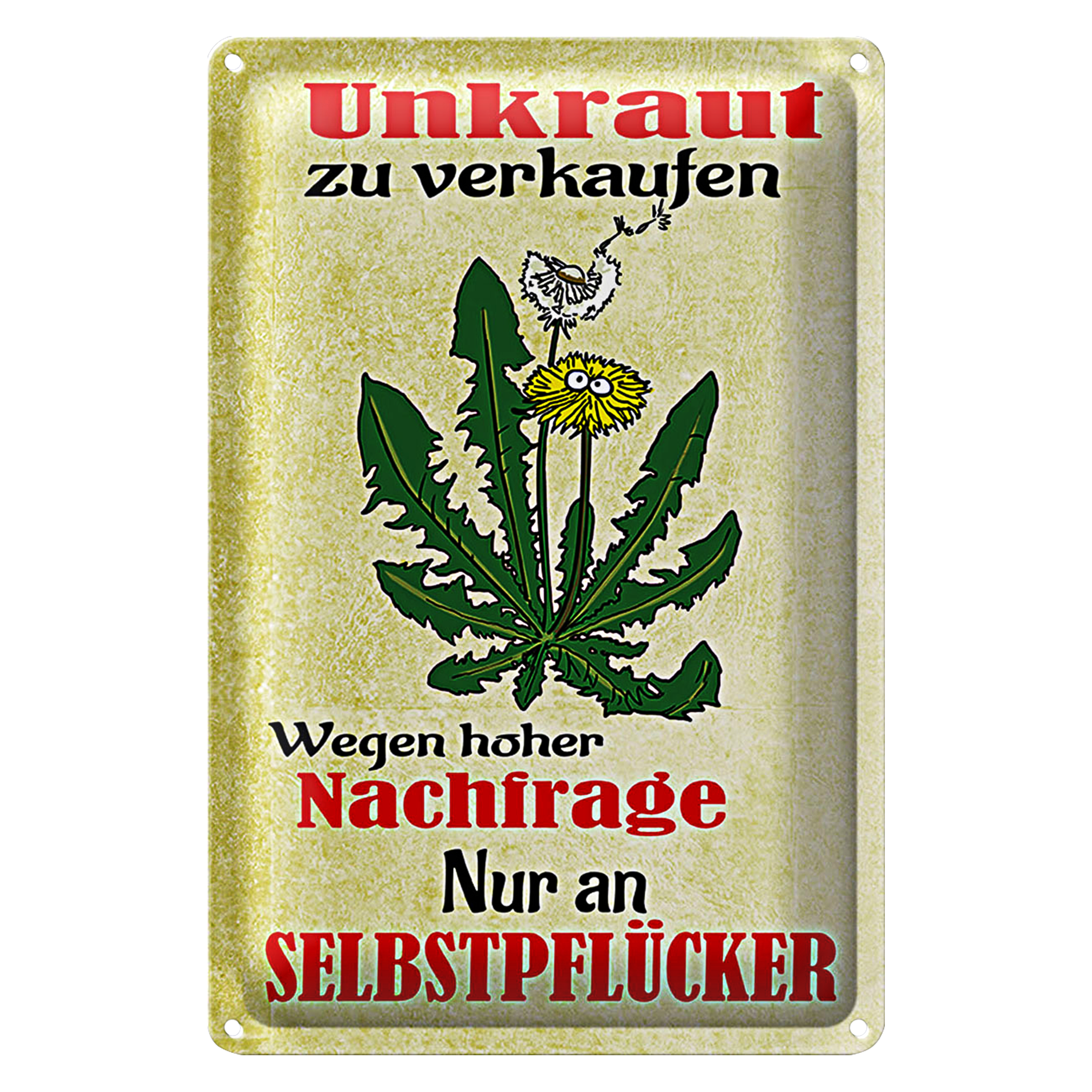 Blechschild Spruch 20x30cm Unkraut verkaufen Selbstpflücker