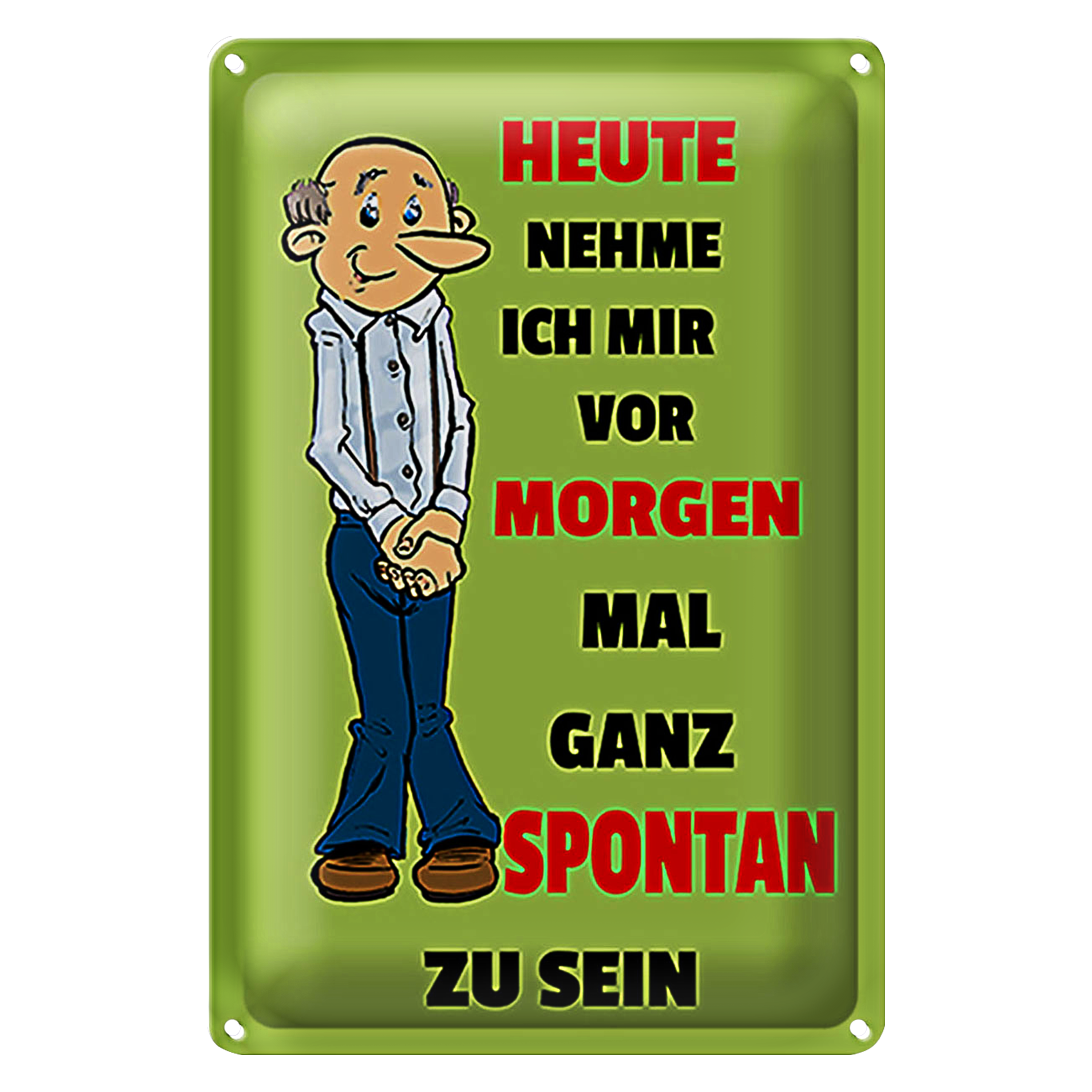 Blechschild Spruch 20x30cm vornehmen morgen spontan zu sein