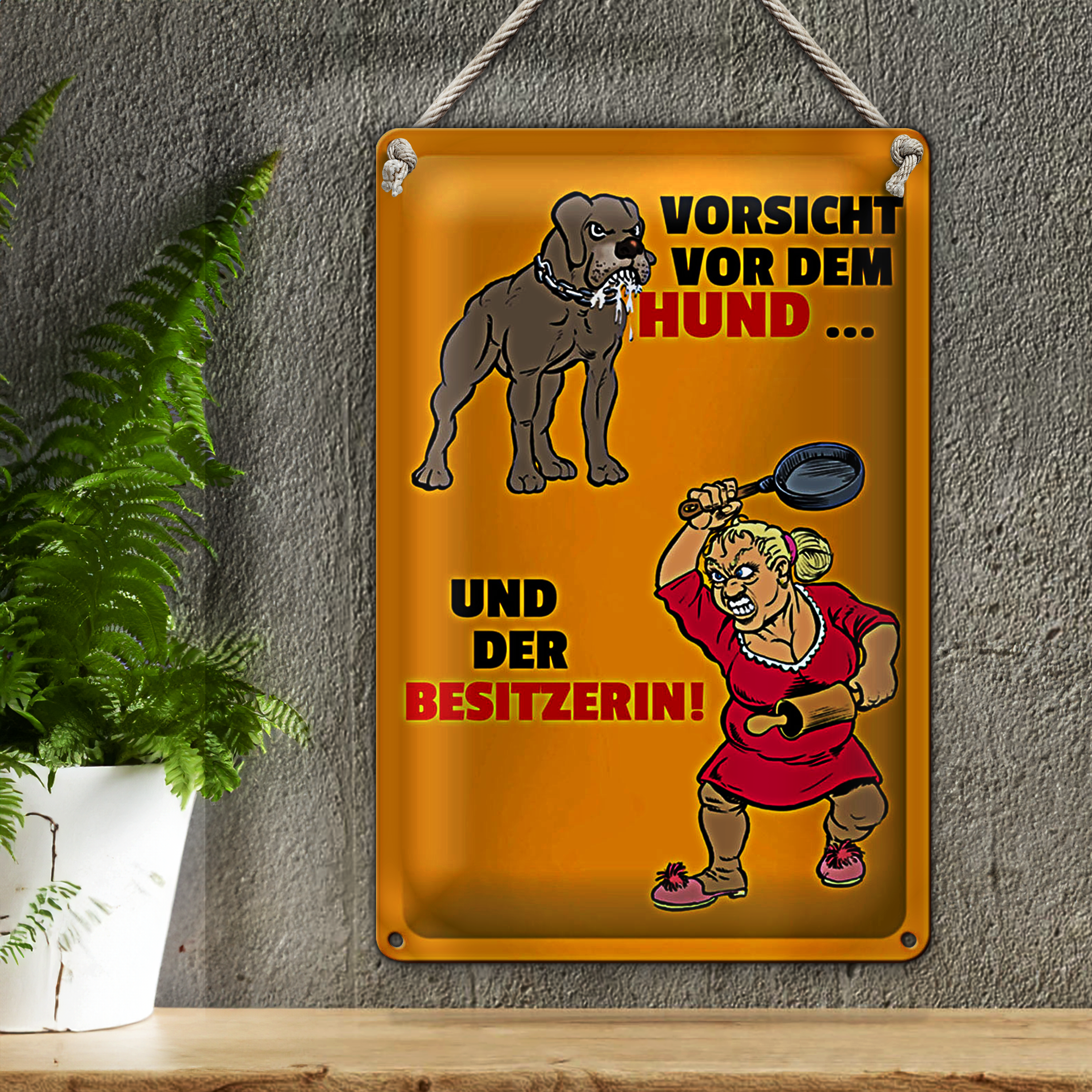 Blechschild Spruch 20x30cm Vorsicht vor Hund und der Besitzerin