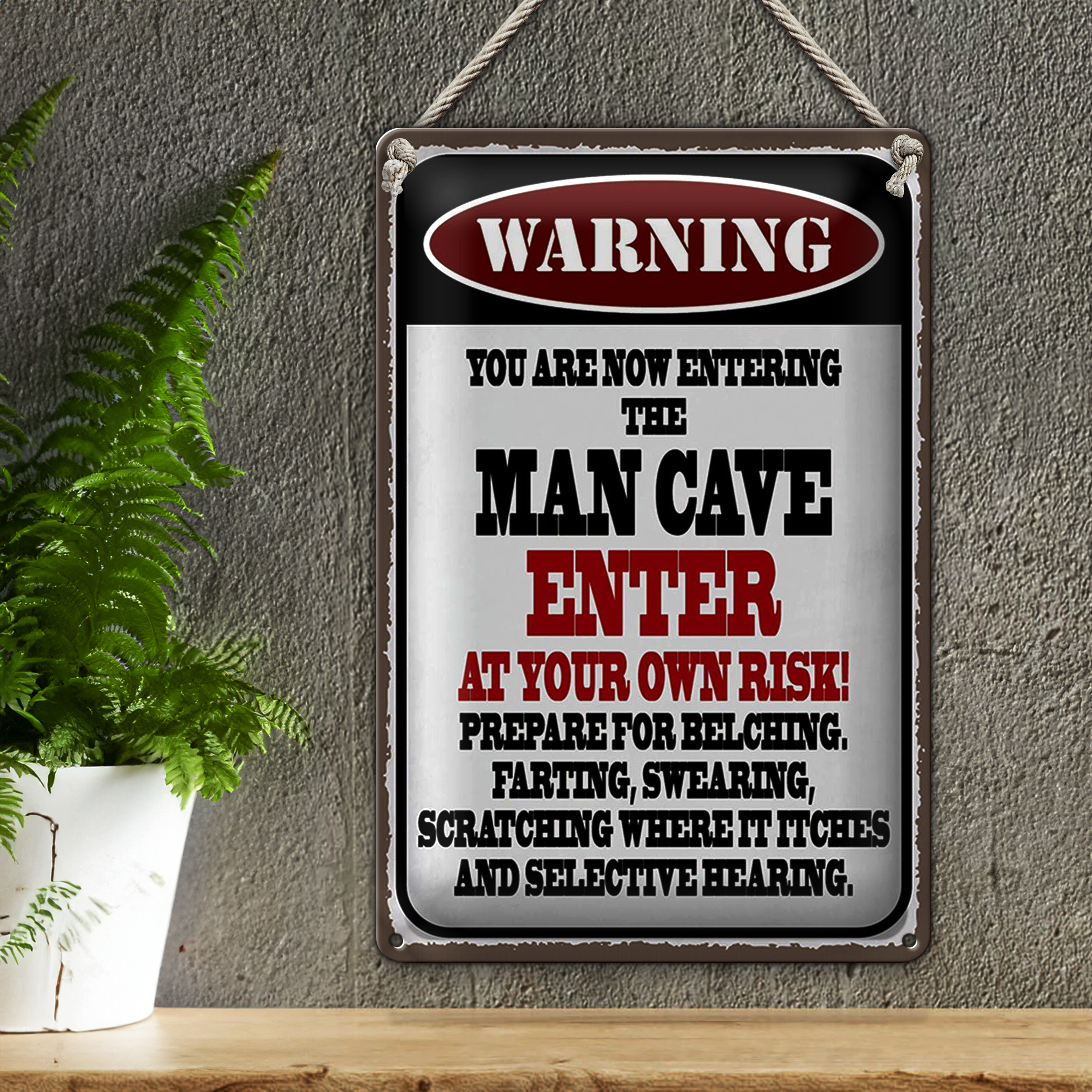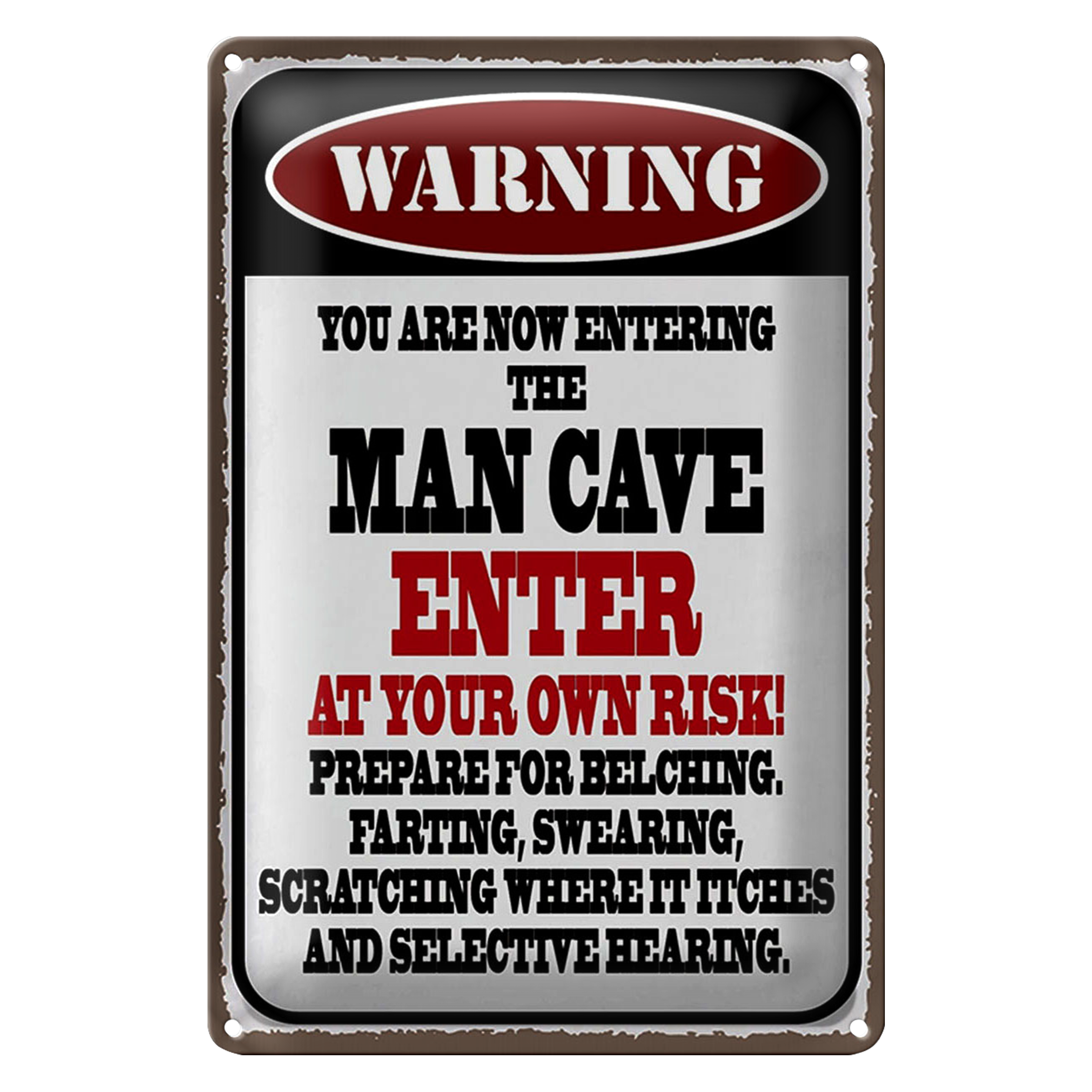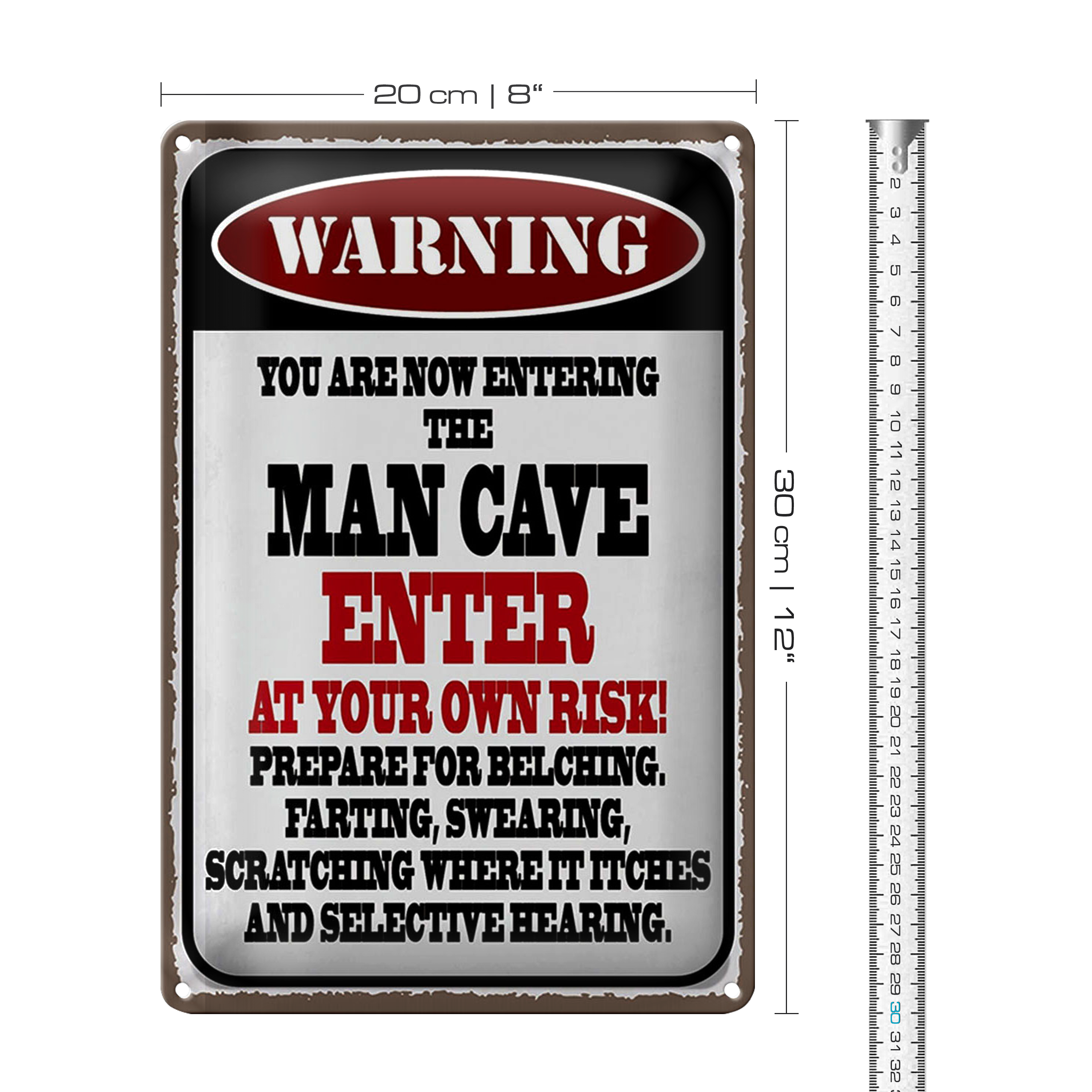 Blechschild Spruch 20x30cm warning man cave enter at your risk