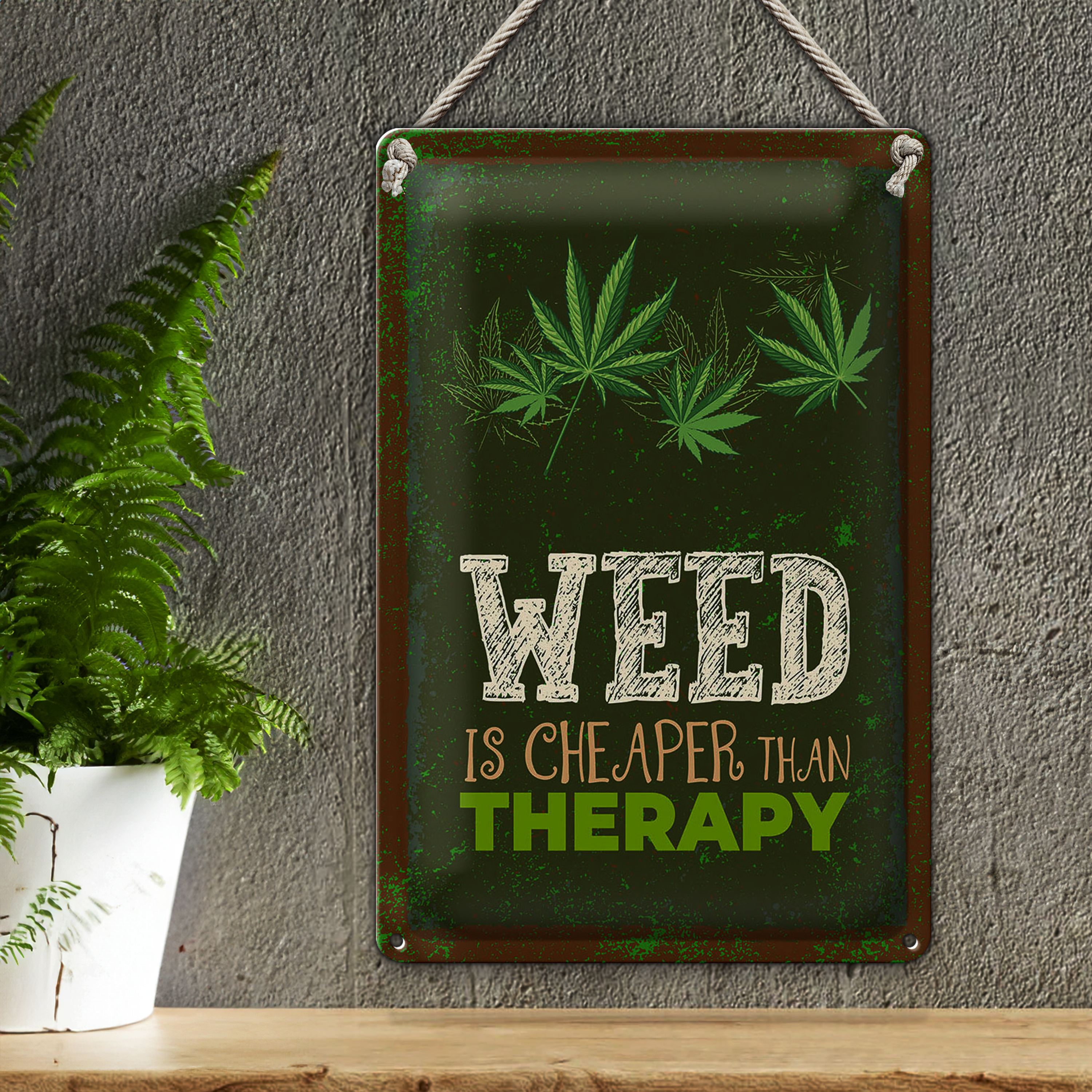 Blechschild Spruch 20x30cm Weed ist Cheaper than Therapy