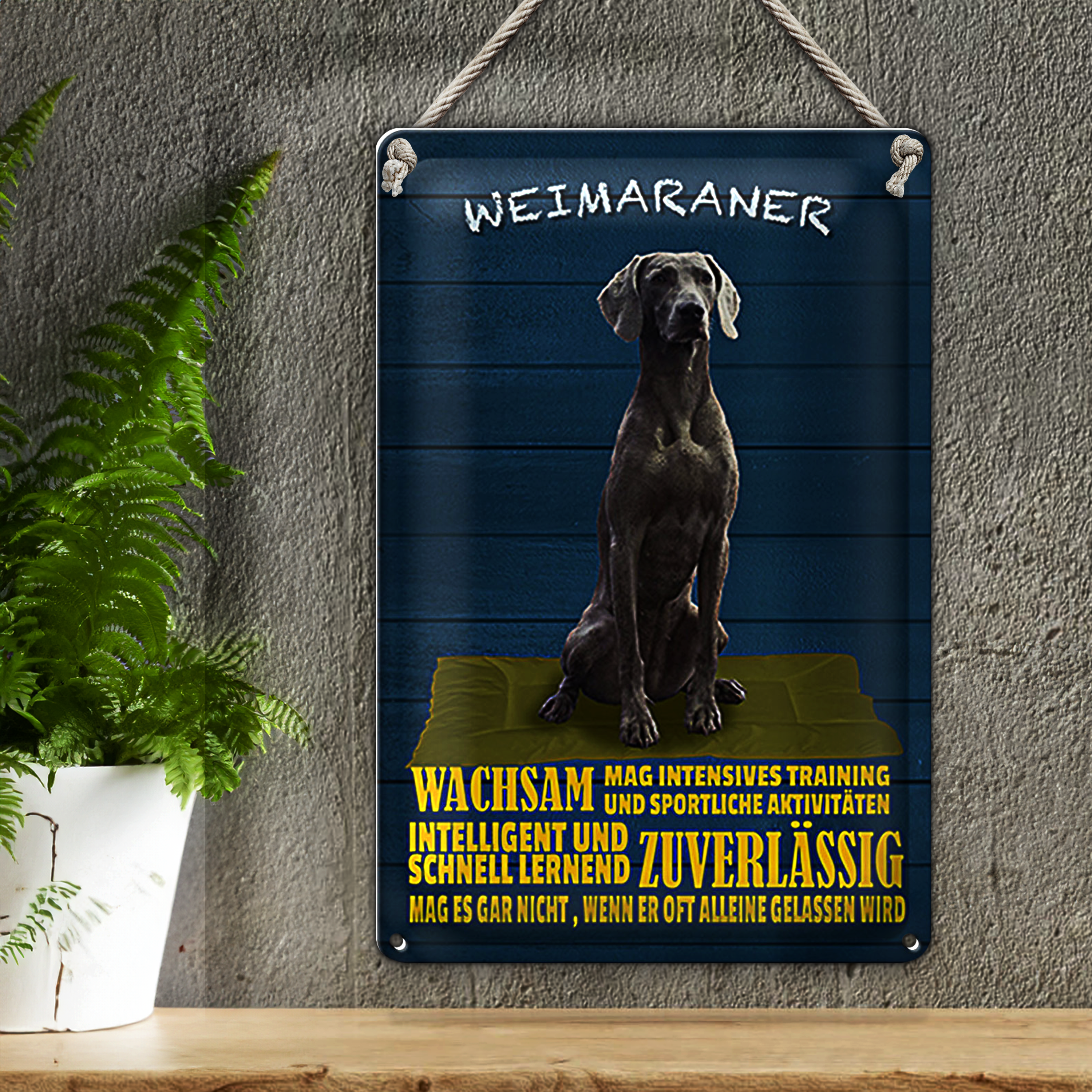 Blechschild Spruch 20x30cm Weimaraner Hund wachsam schnell