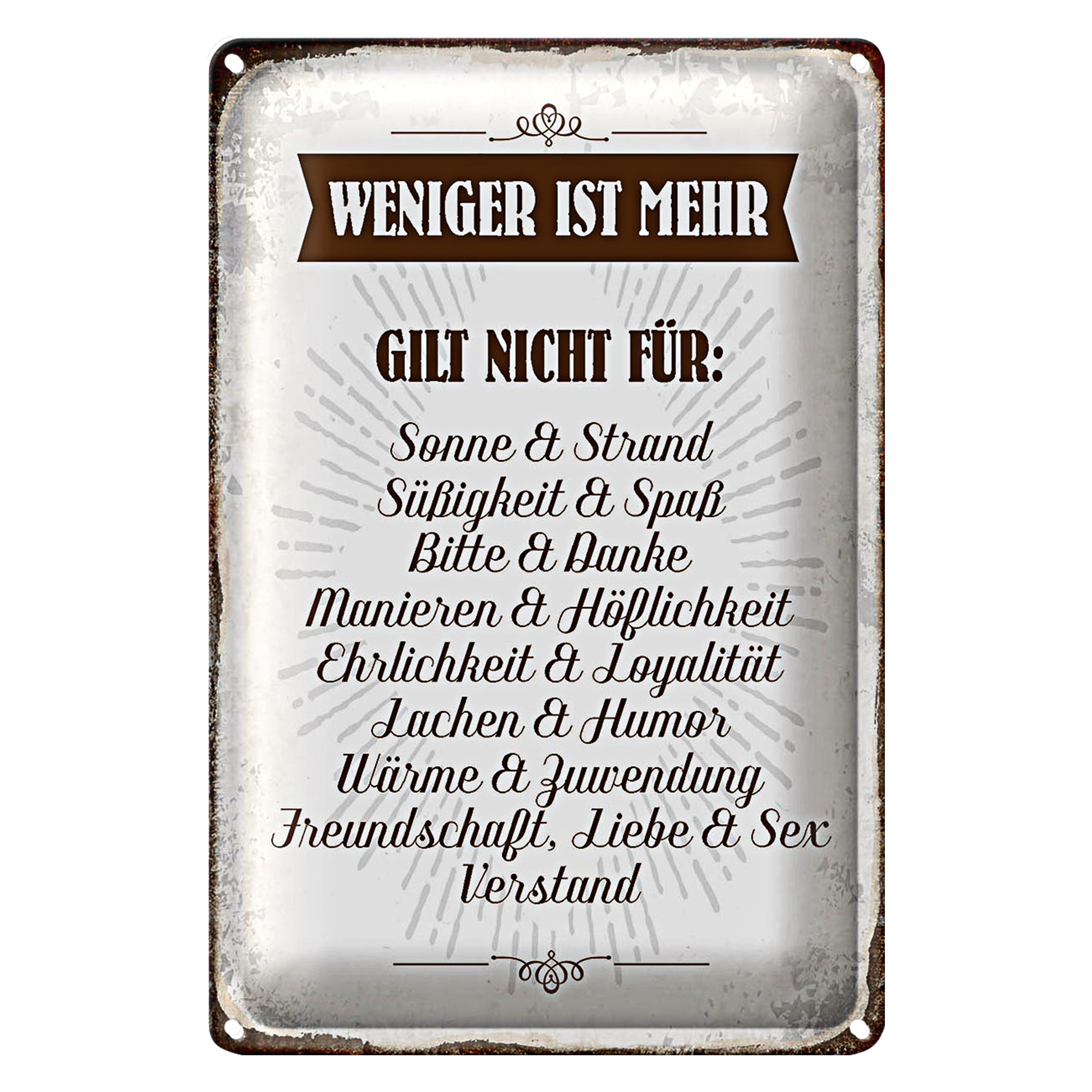 Blechschild Spruch 20x30cm weniger ist mehr gilt nicht für