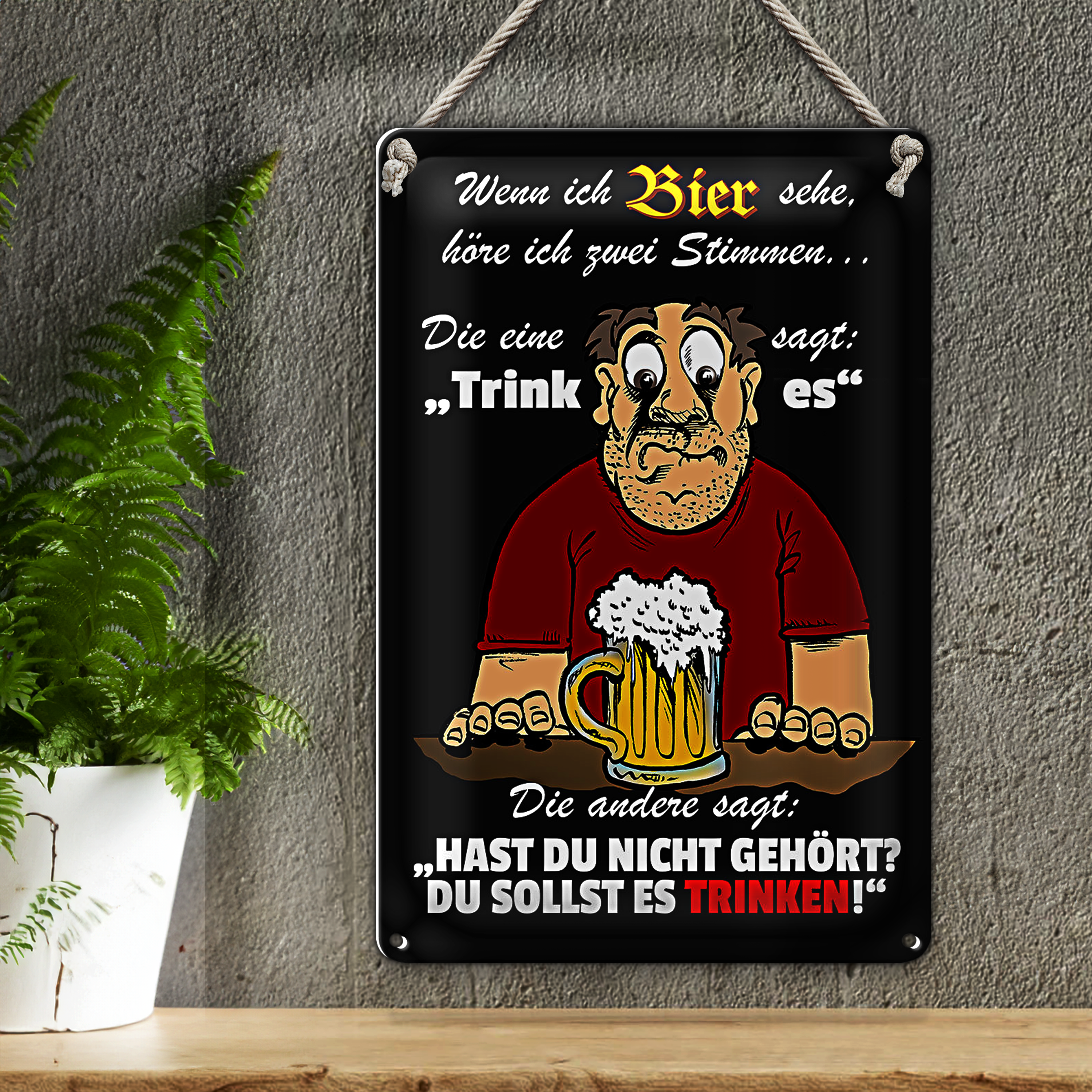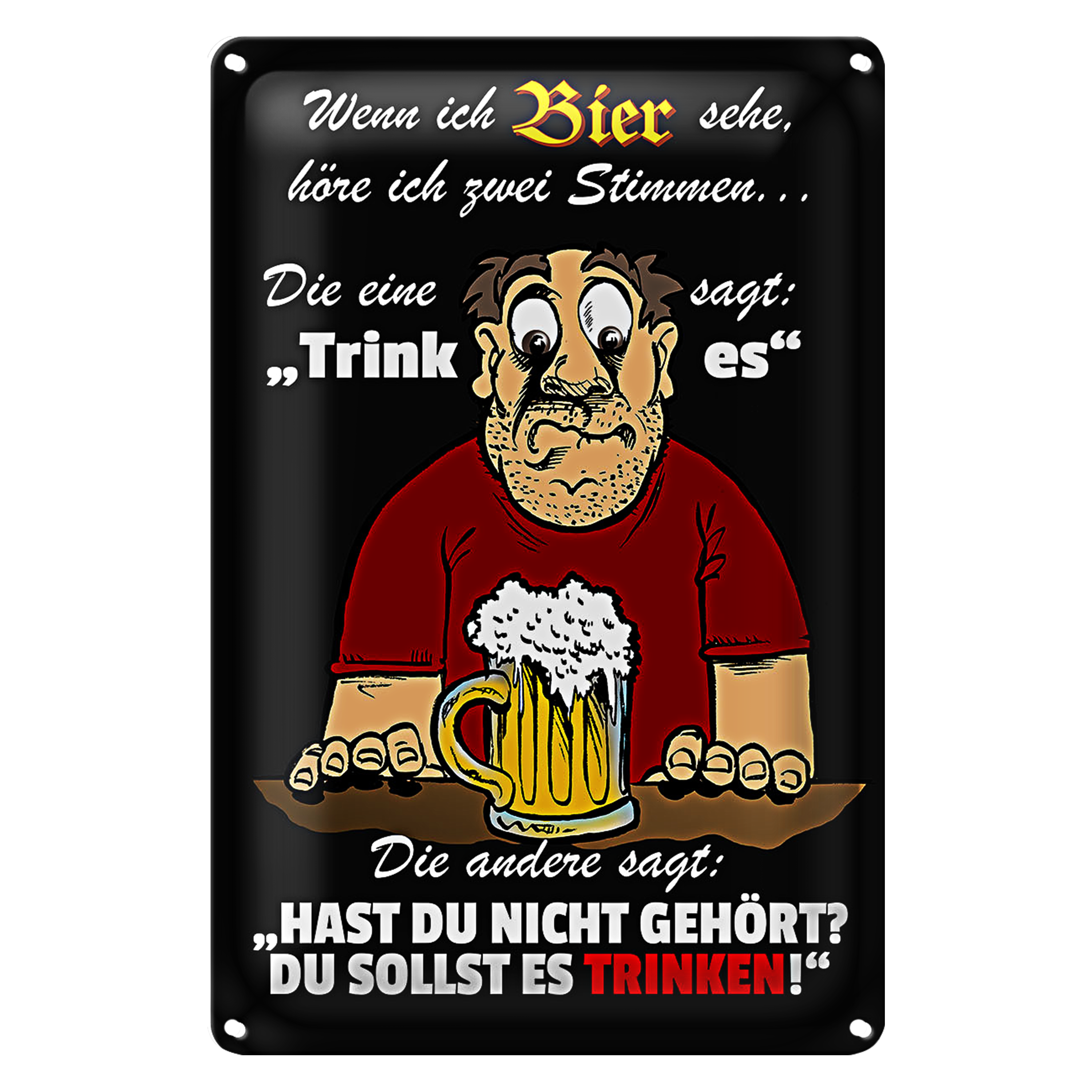 Blechschild Spruch 20x30cm wenn ich Bier sehe höre ich 2