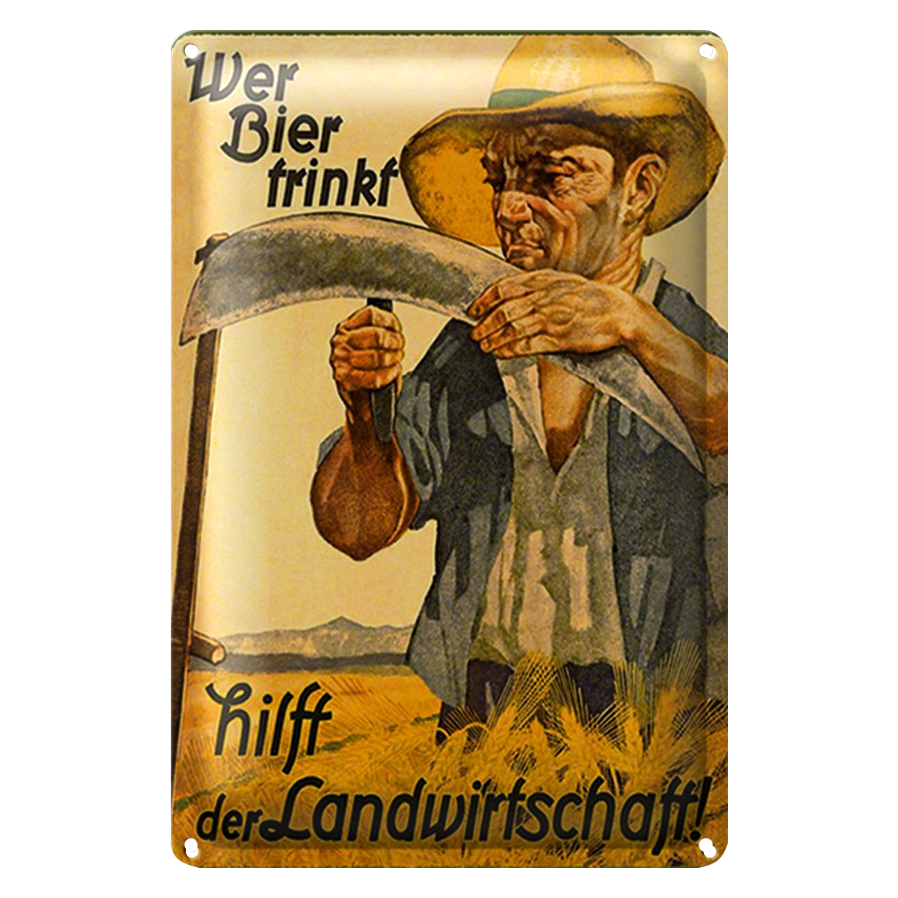 Blechschild Spruch 20x30cm wer Bier trinkt Landwitschaft