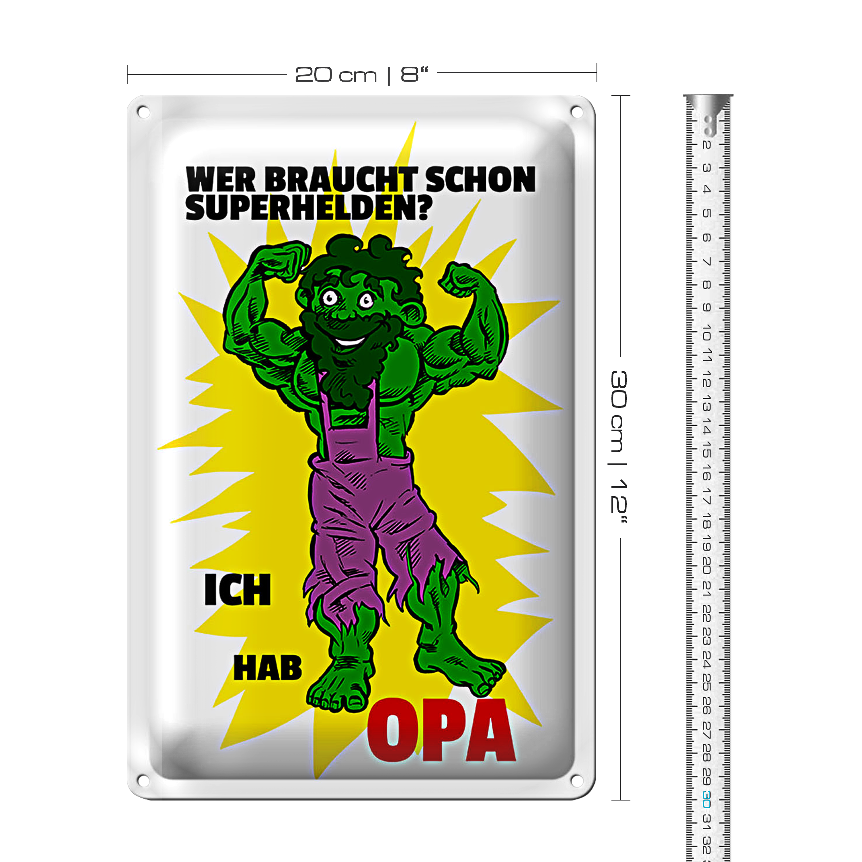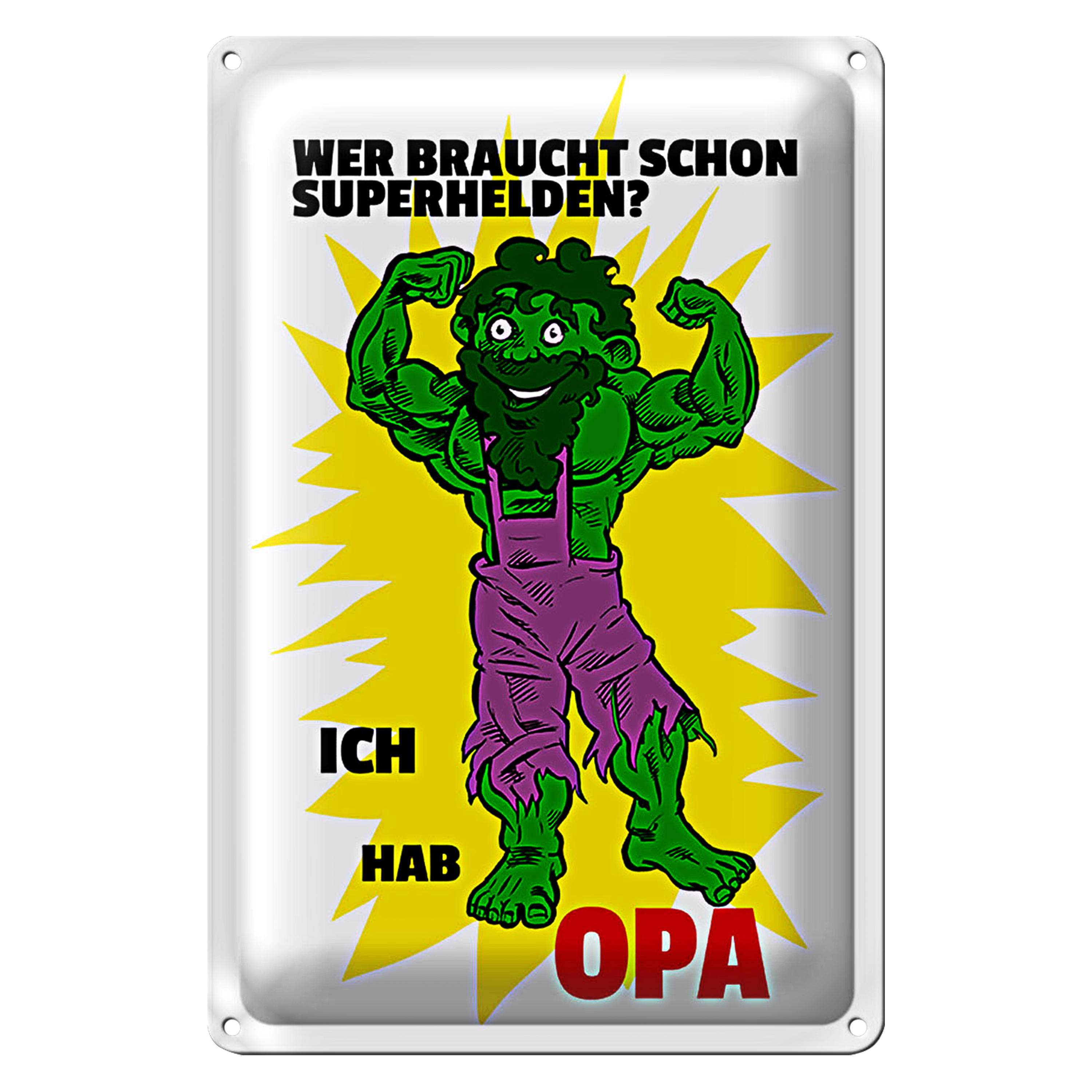 Blechschild Spruch 20x30cm Wer braucht Superhelden Hab Opa