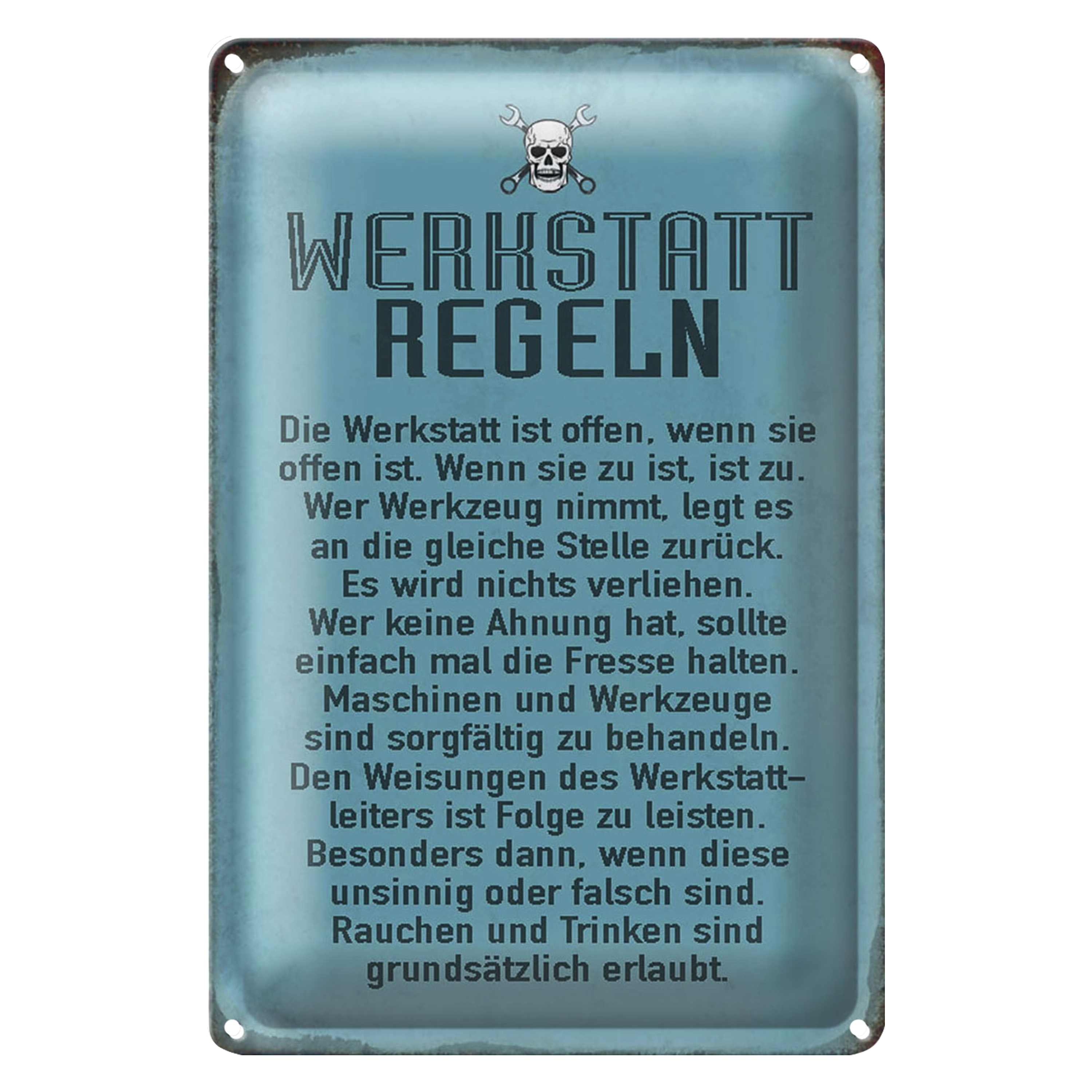 Blechschild Spruch 20x30cm Werkstatt Regeln Werkstatt