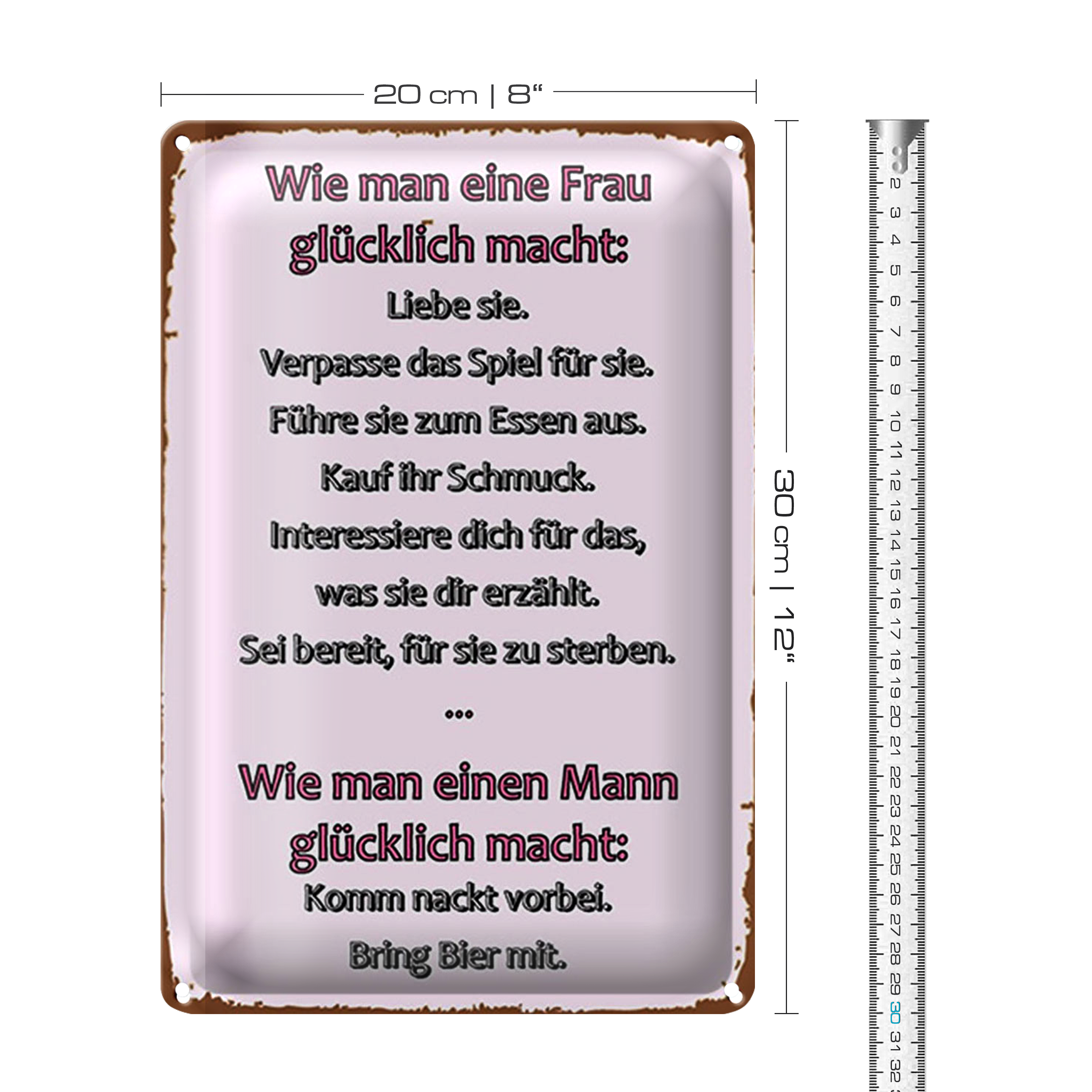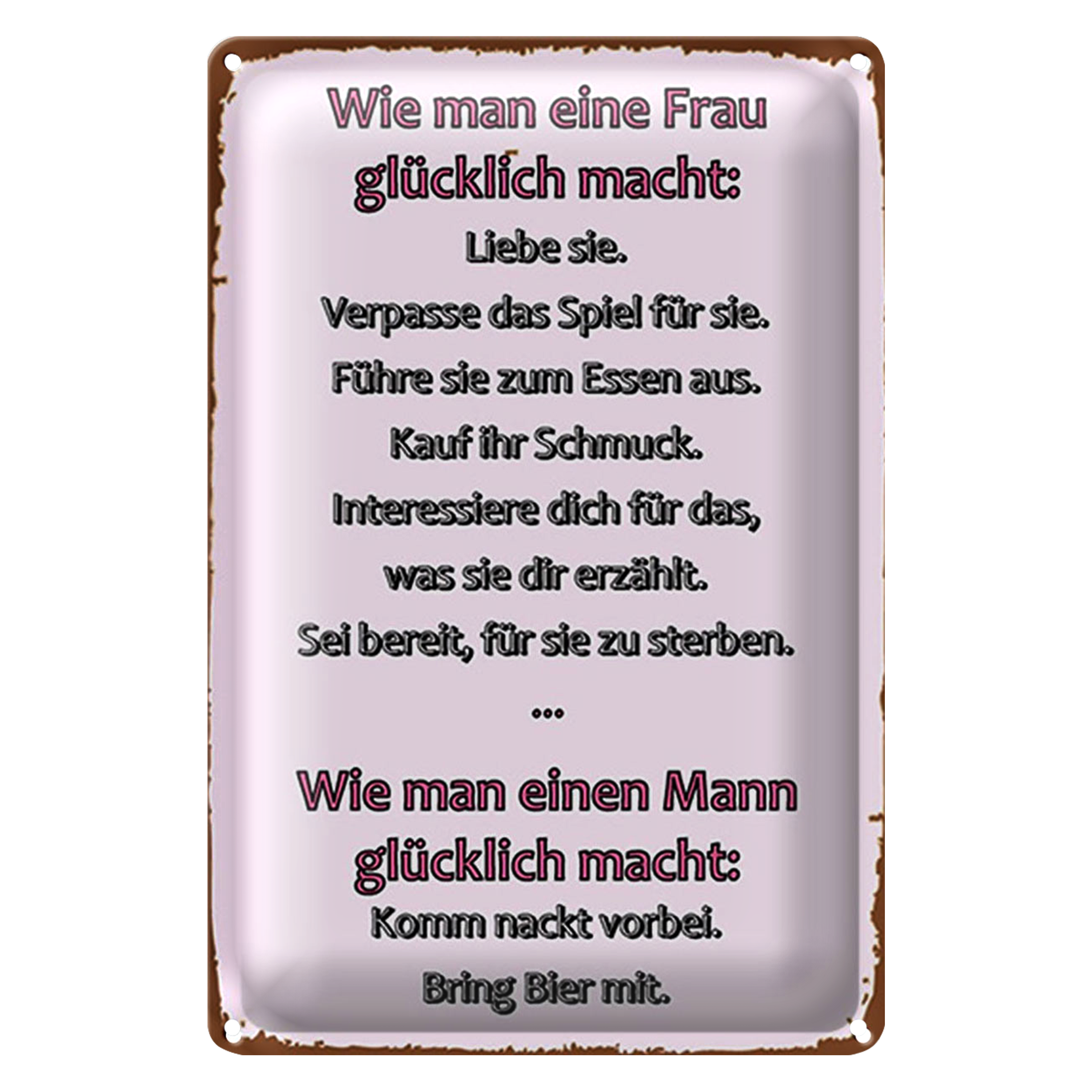 Blechschild Spruch 20x30cm Wie man Frau glücklich macht