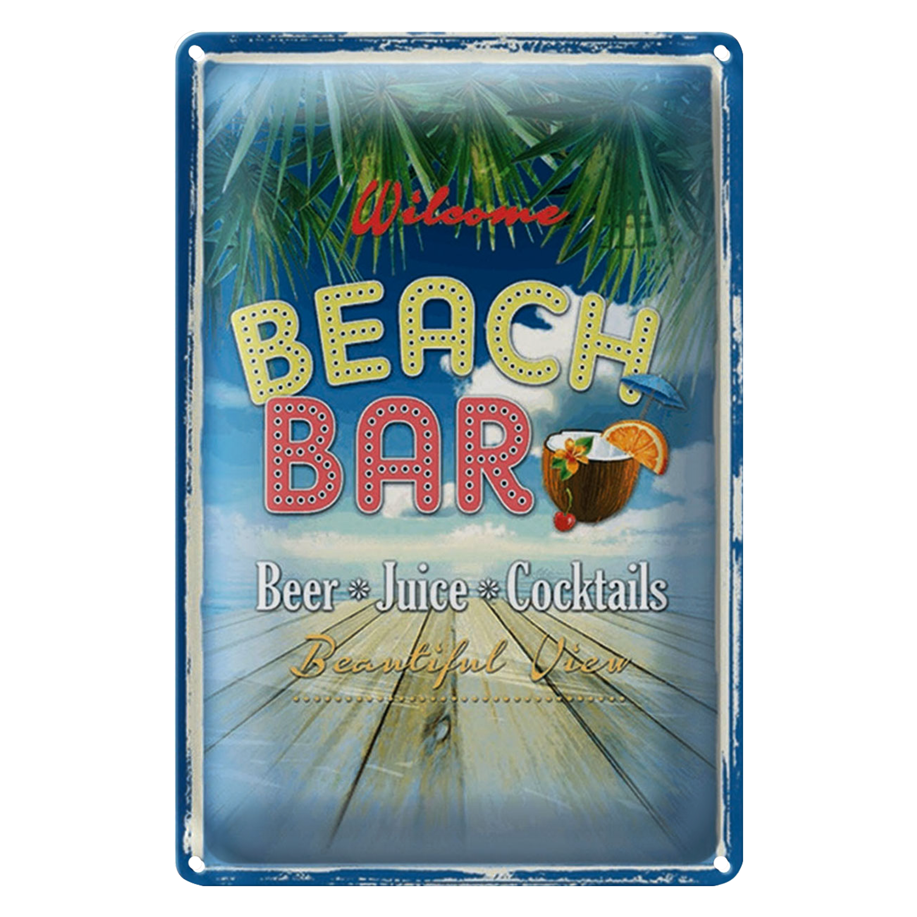 Blechschild Spruch 20x30cm Wilcome Beach Bar Beer Juice