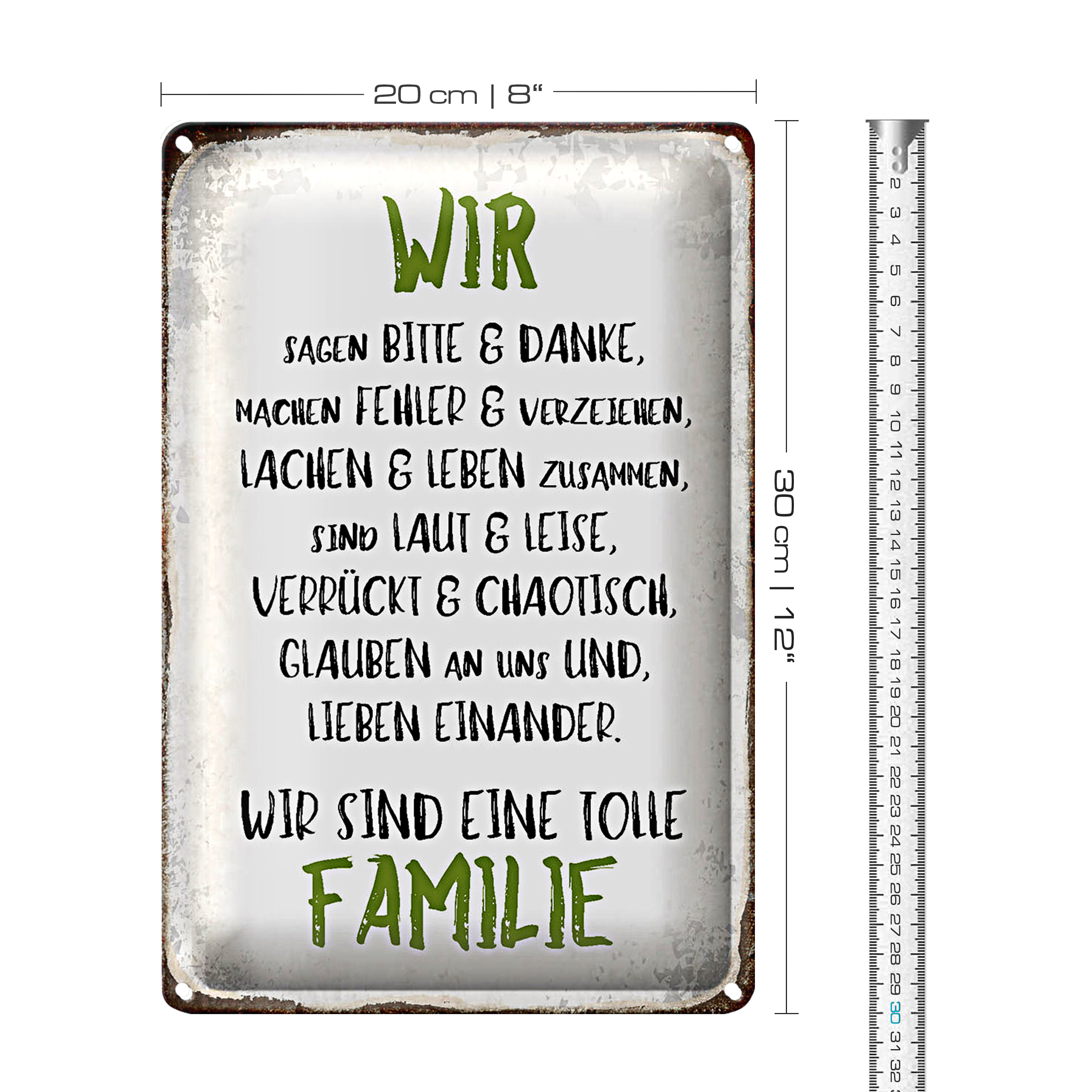 Blechschild Spruch 20x30cm wir eine tolle Familie