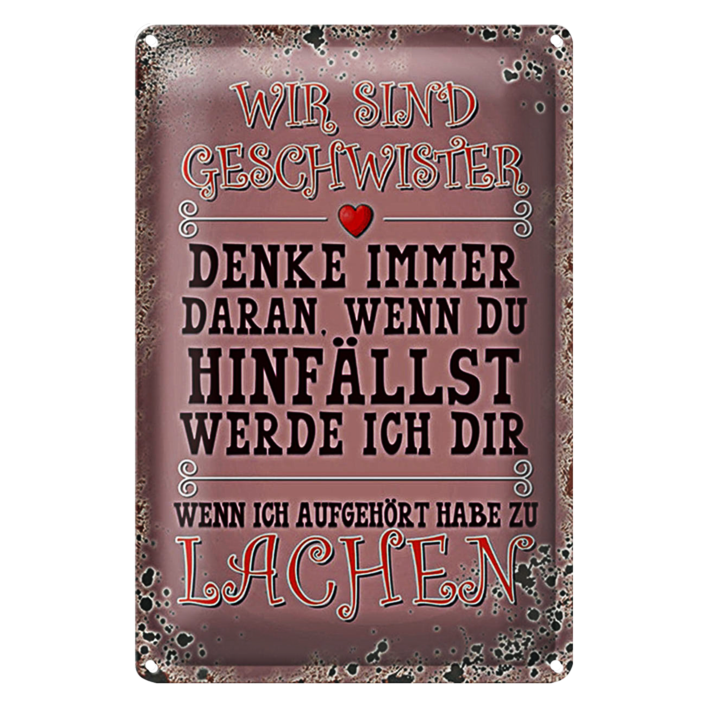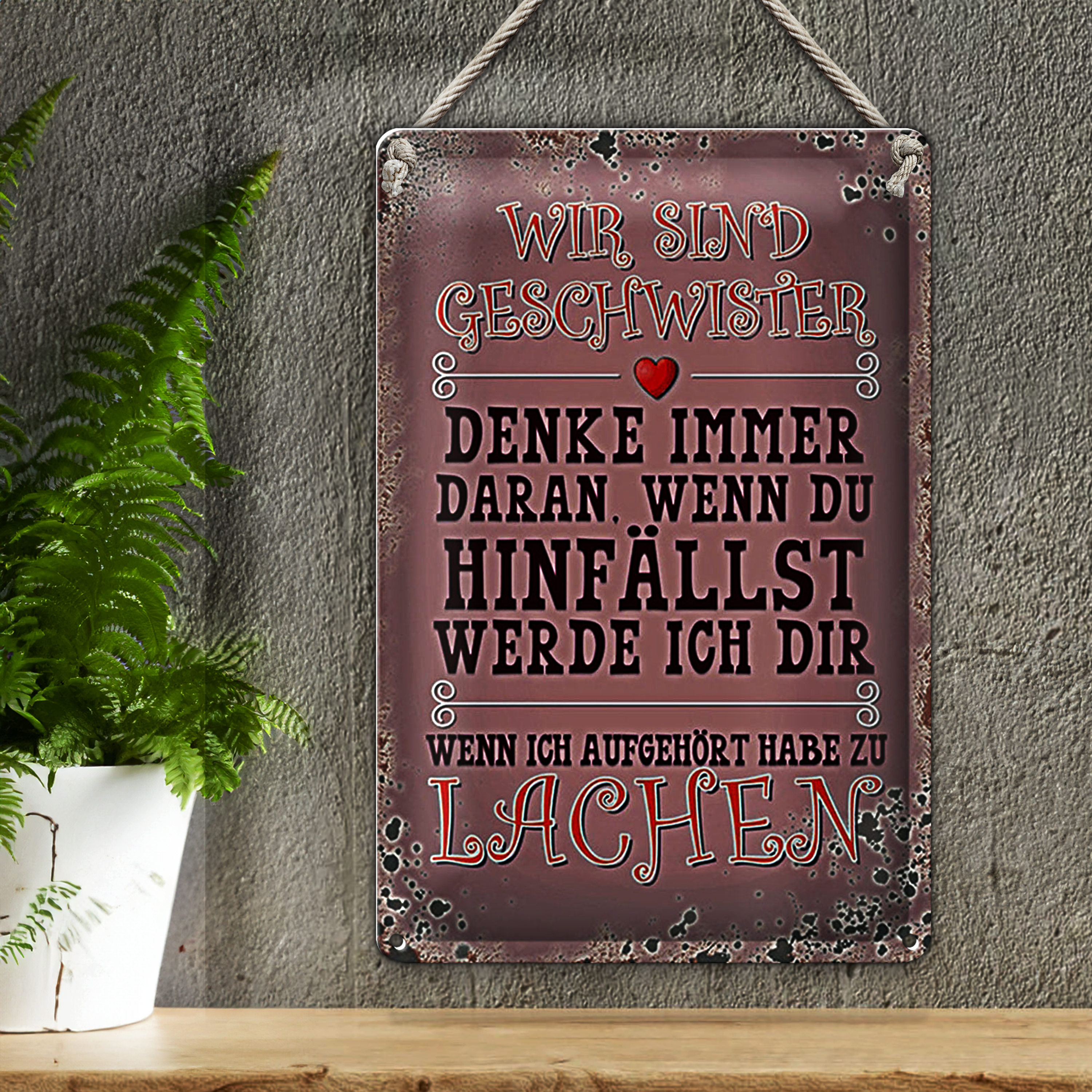 Blechschild Spruch 20x30cm wir Geschwister denke immer