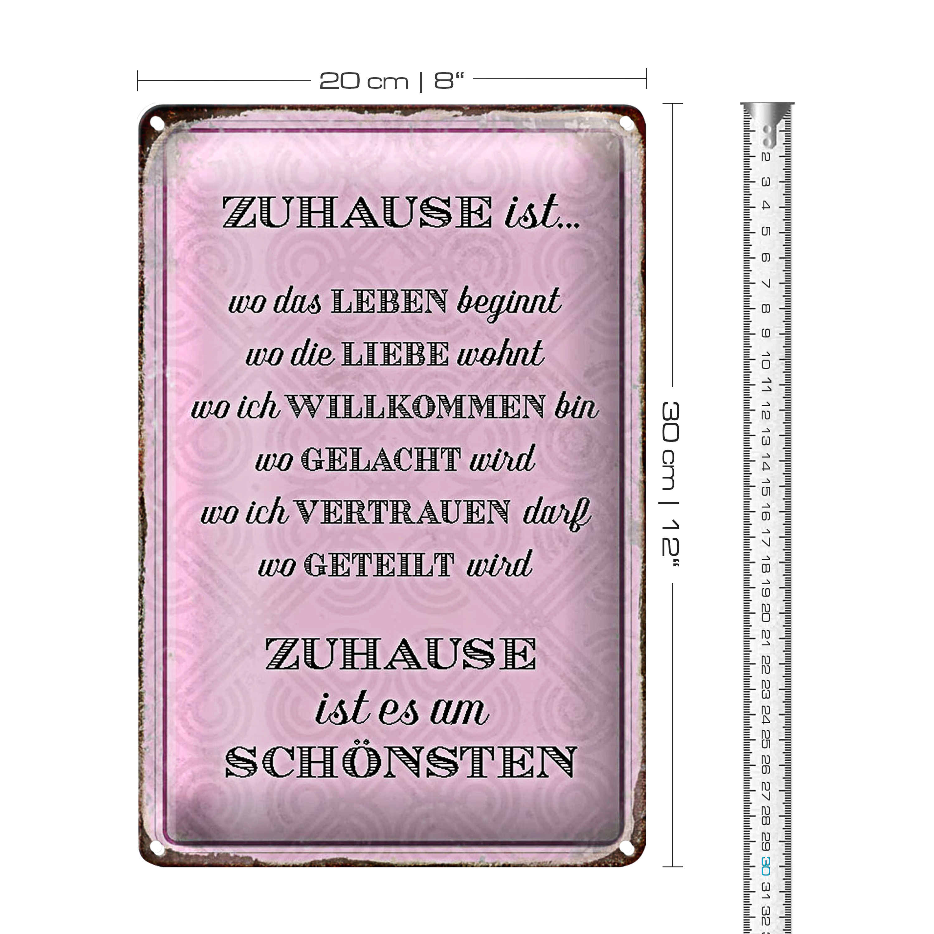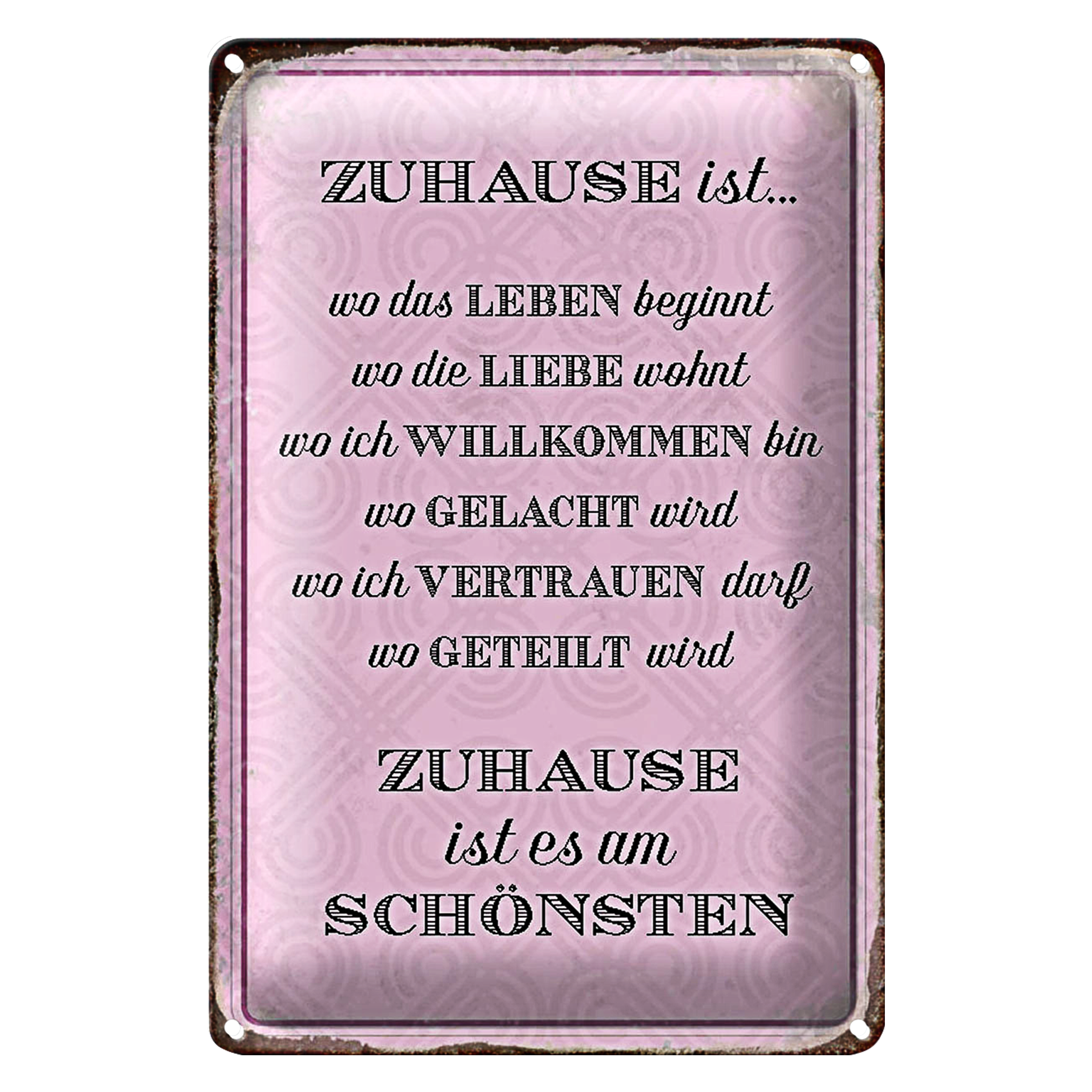 Blechschild Spruch 20x30cm Zuhause ist es am schönsten