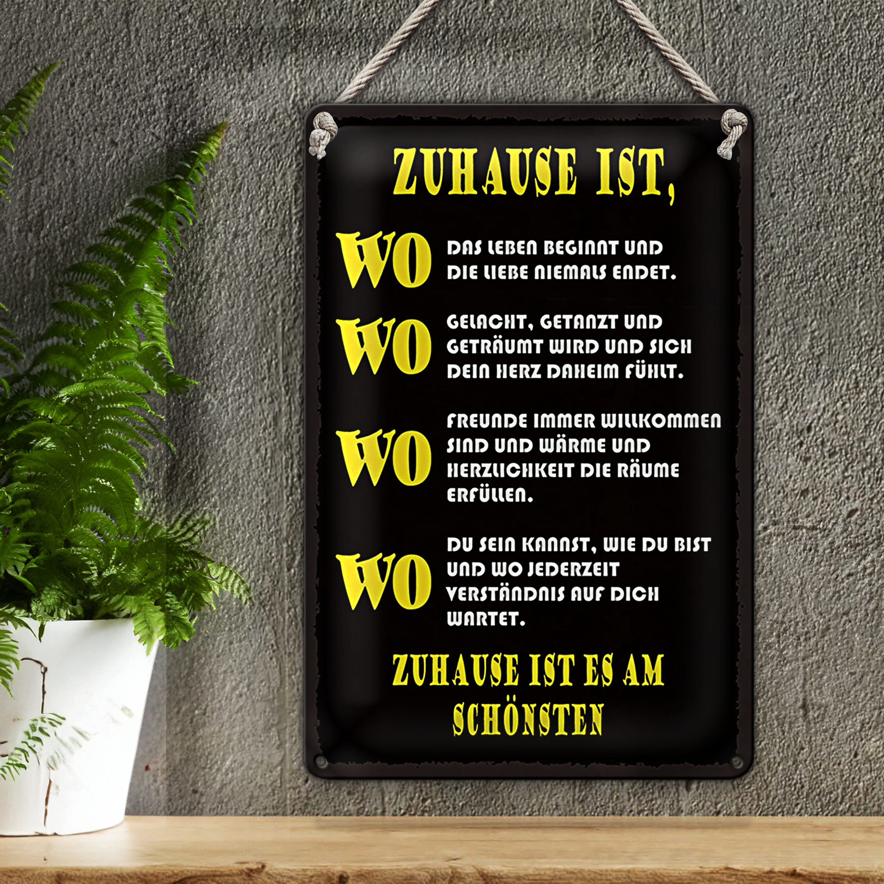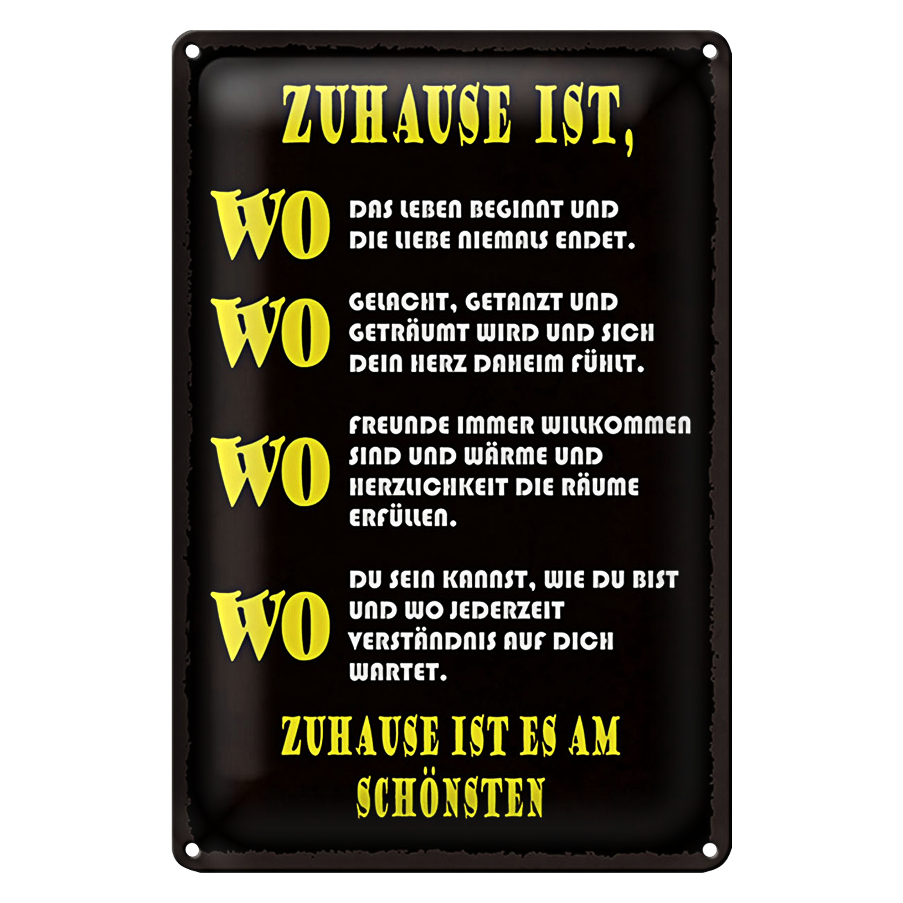 Blechschild Spruch 20x30cm Zuhause ist wo Leben und Liebe