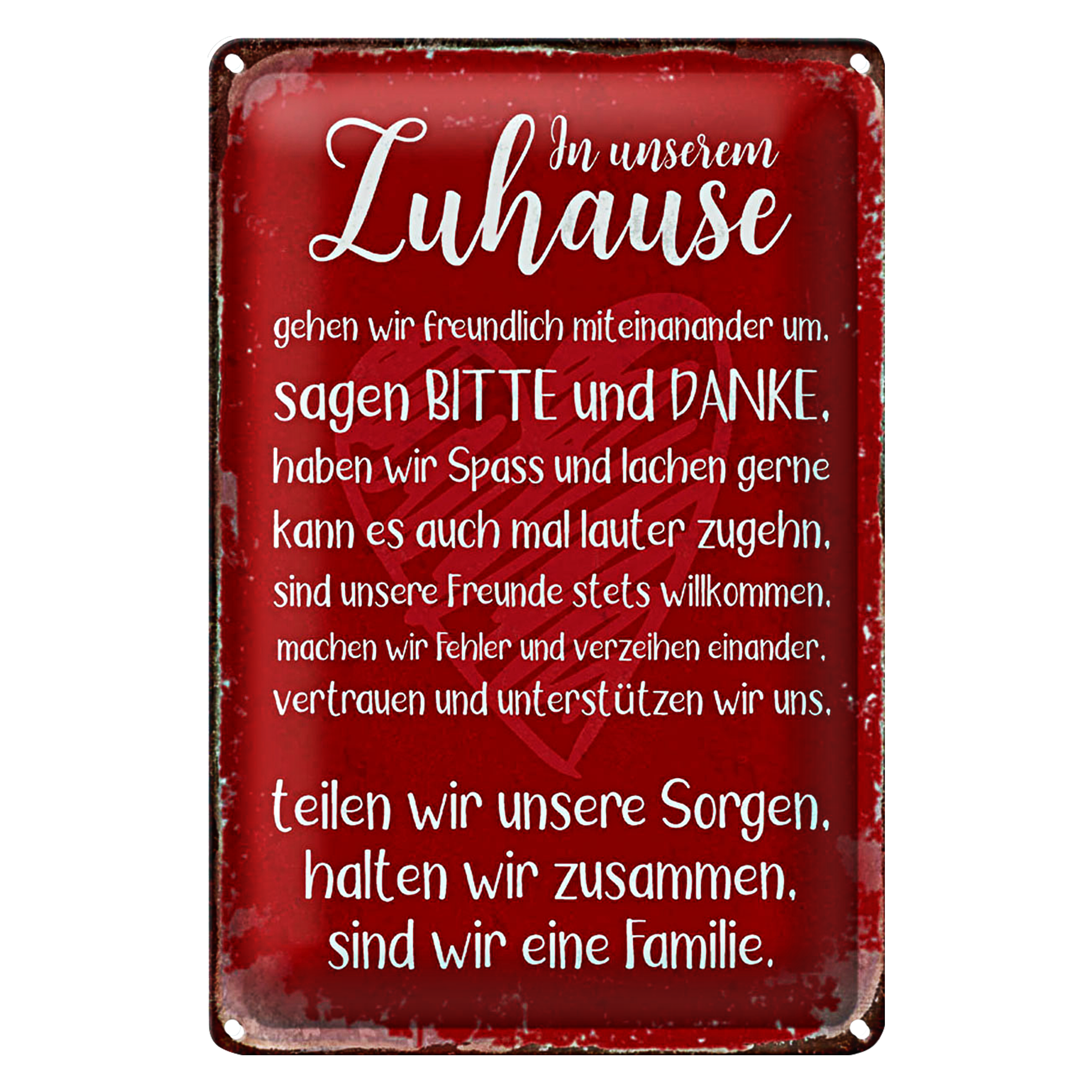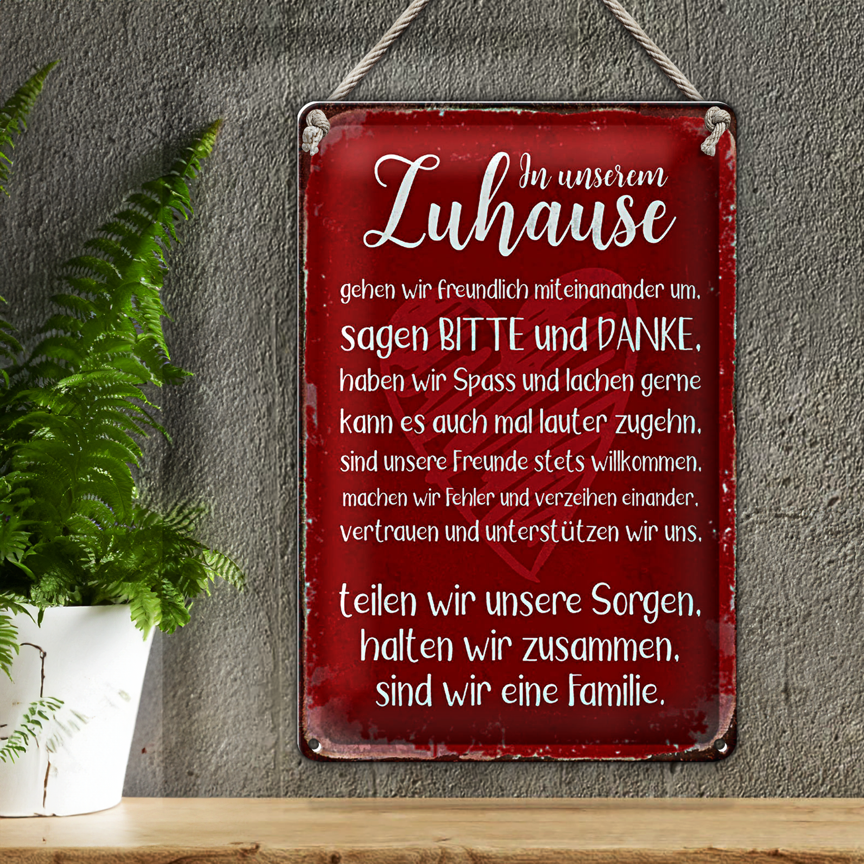 Blechschild Spruch 20x30cm Zuhause sind wir eine Familie