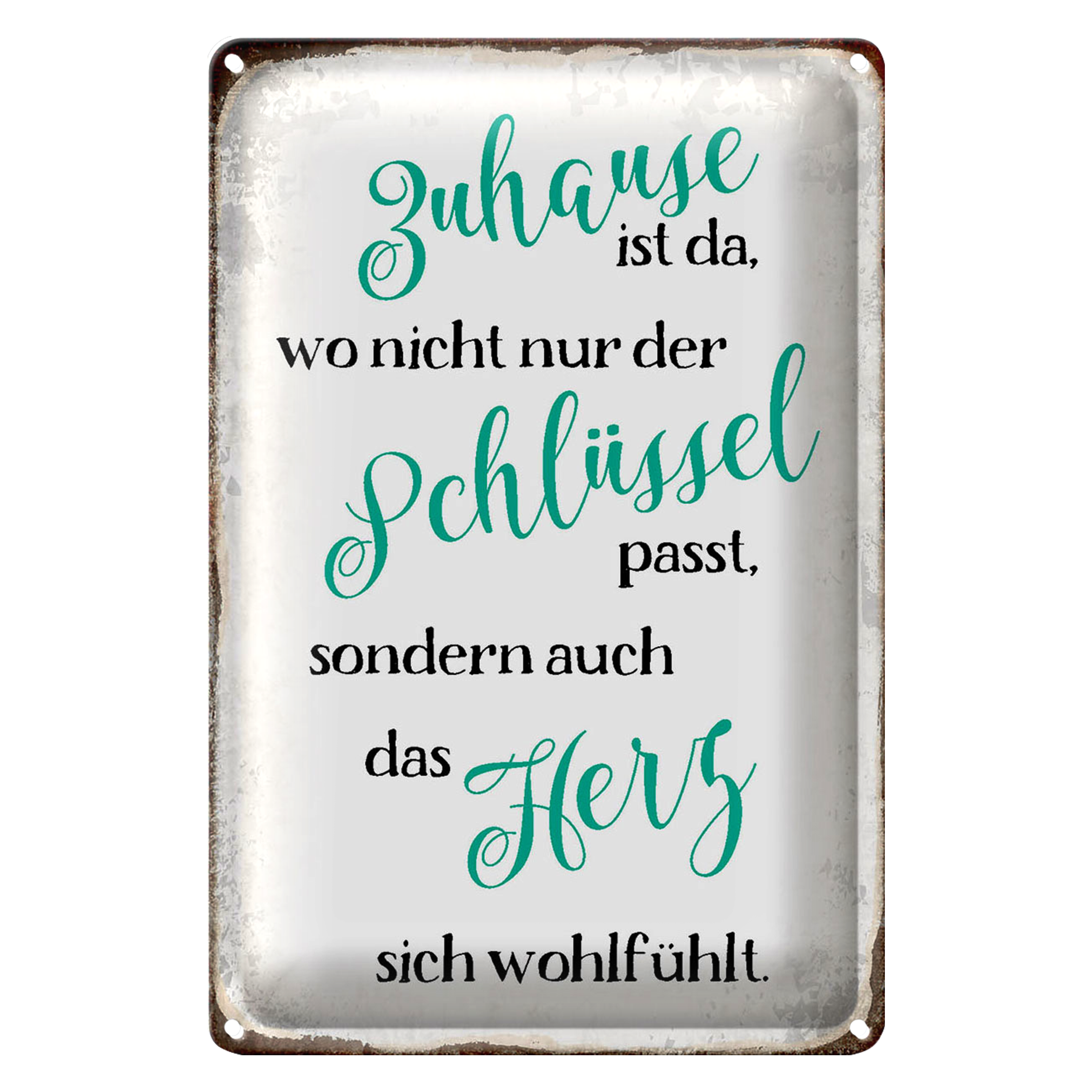 Blechschild Spruch 20x30cm Zuhause wo Herz sich wohlfühlt