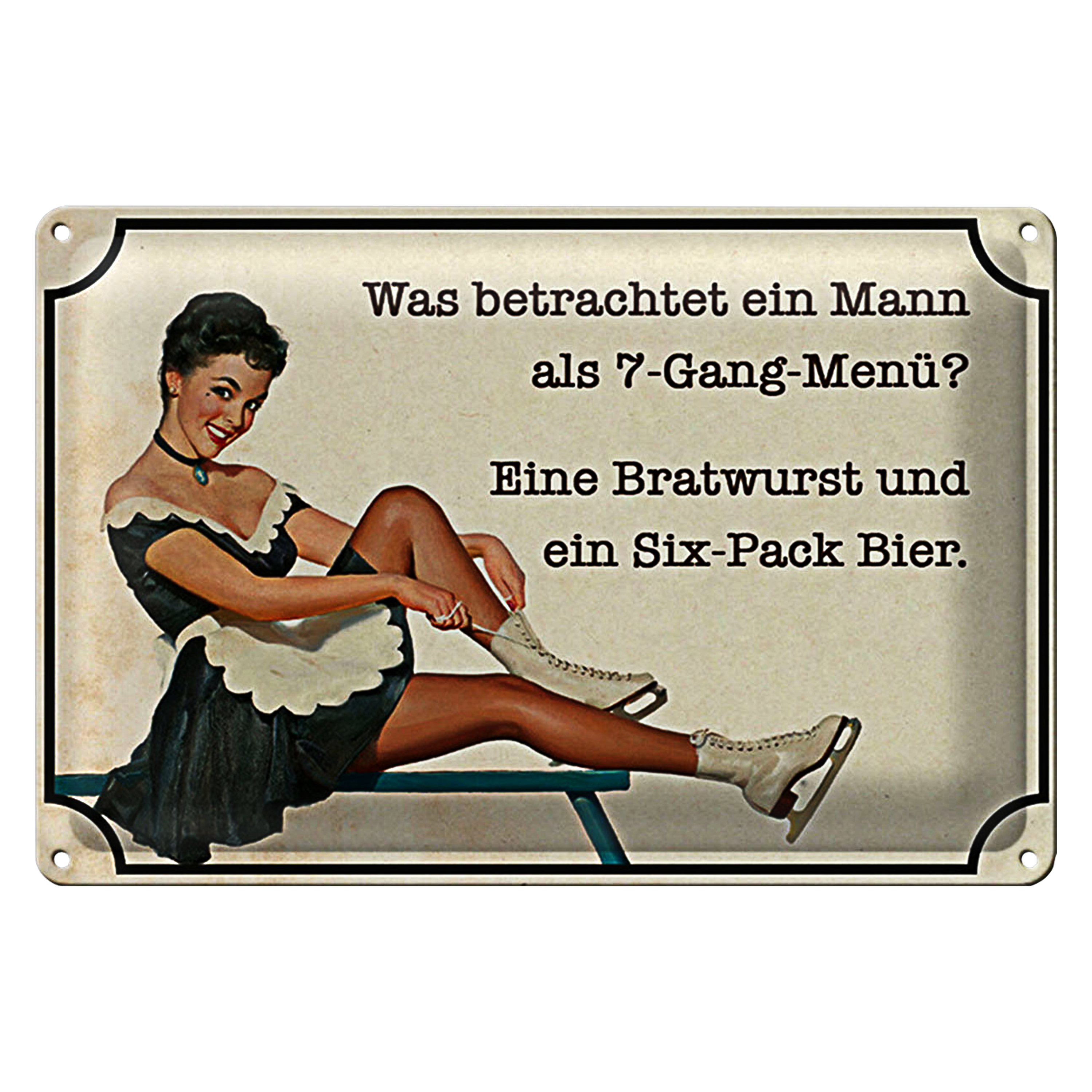 Blechschild Spruch 30x20cm 7-Gang-Menü Mann Wurst Bier