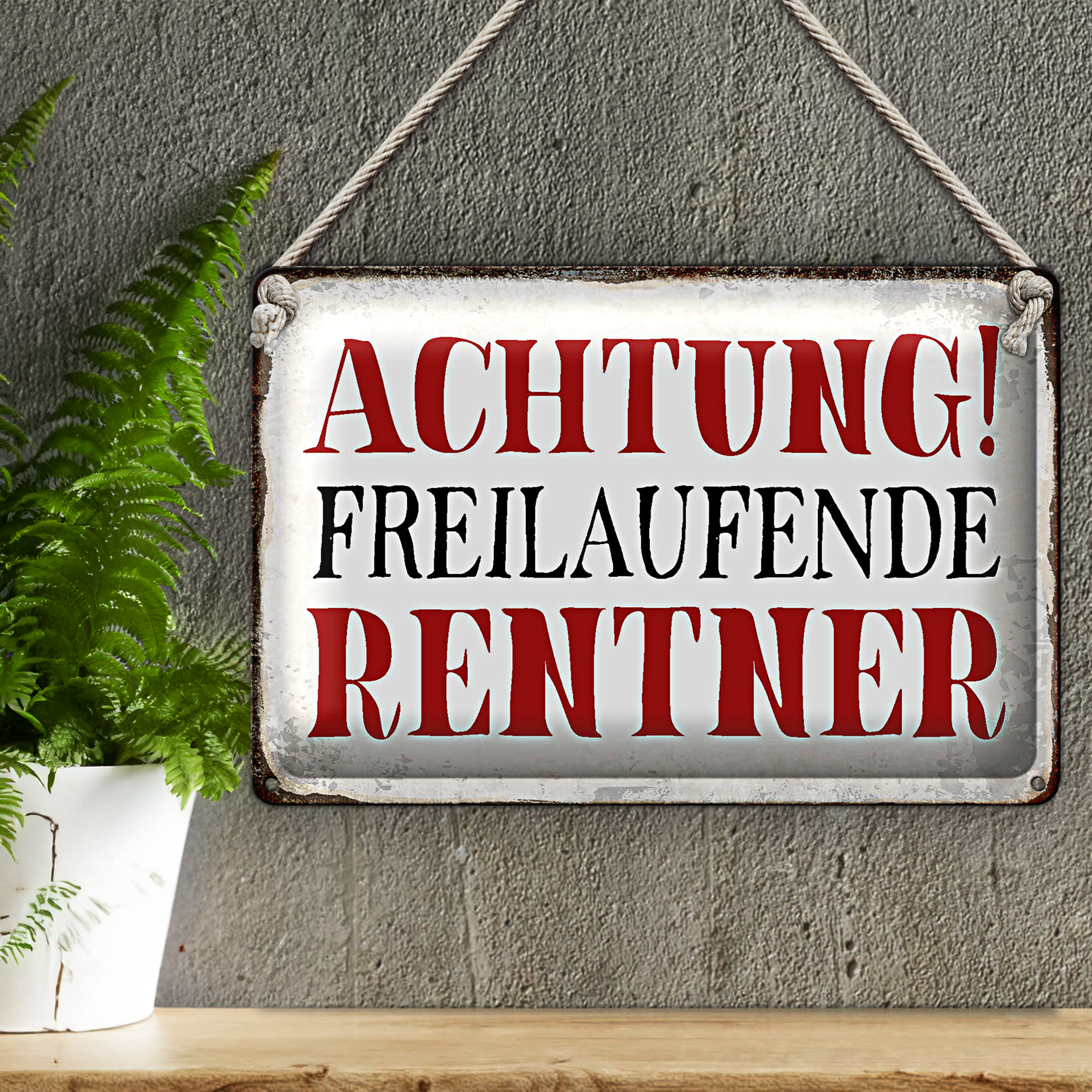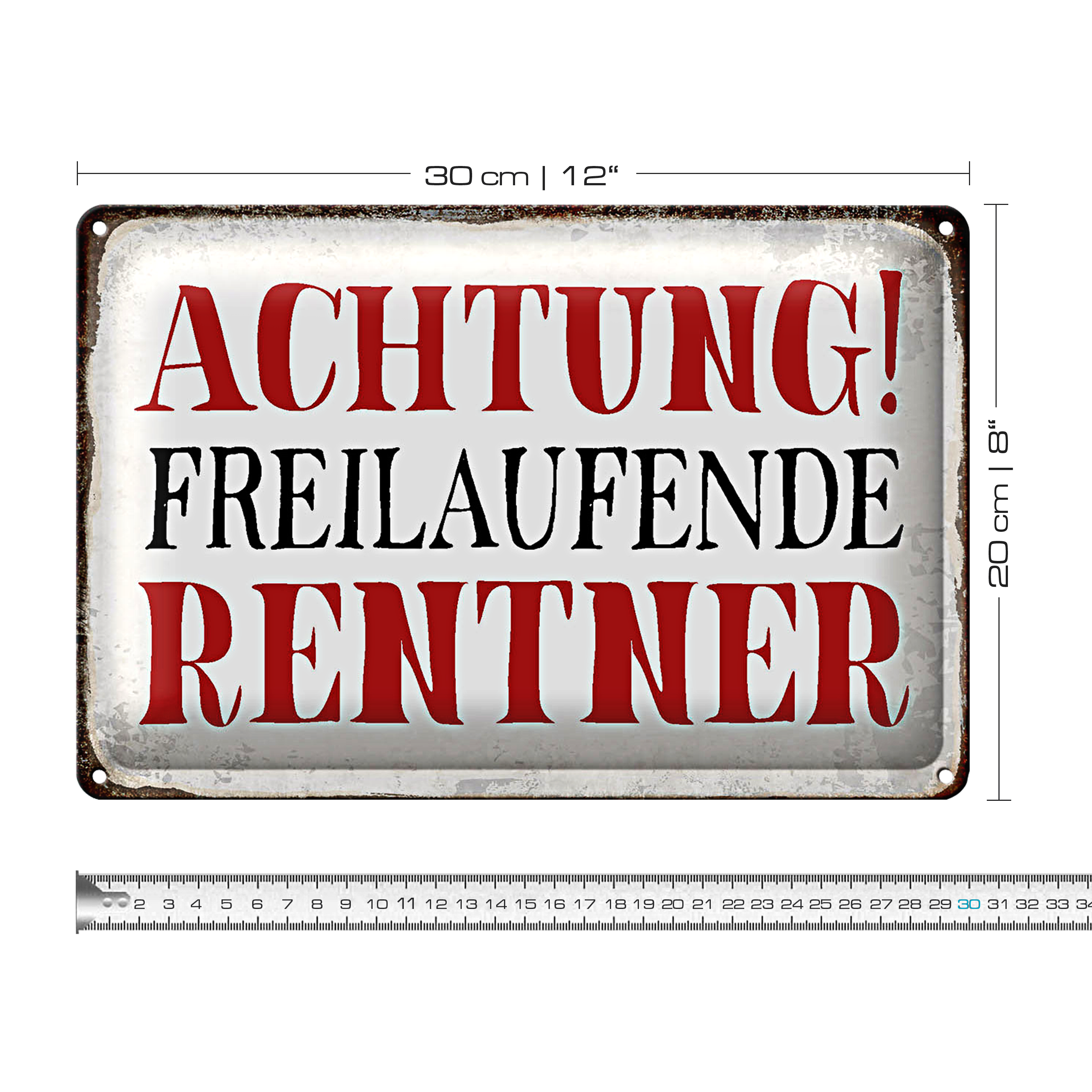 Blechschild Spruch 30x20cm Achtung freilaufende Rentner
