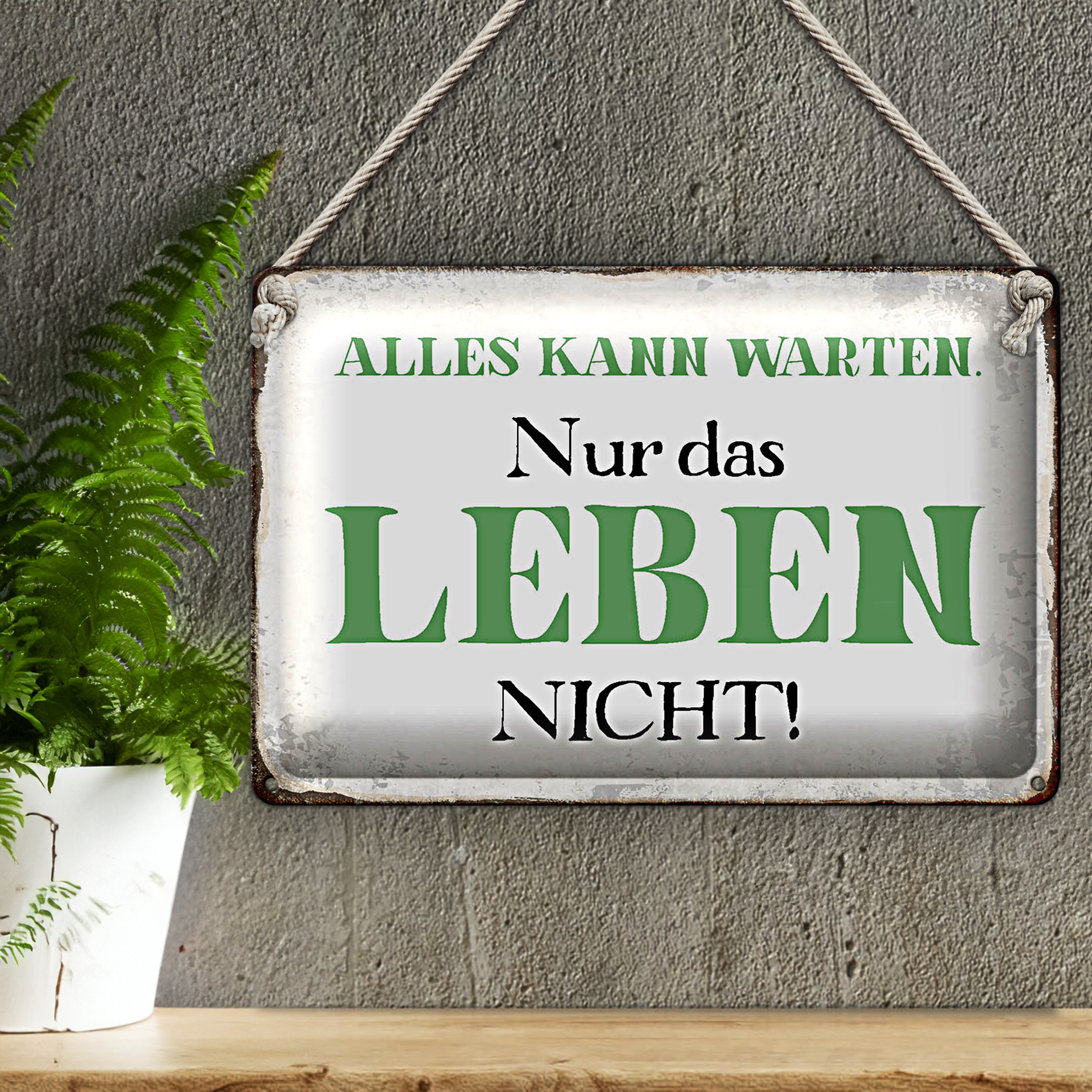 Blechschild Spruch 30x20cm alles kann warten Leben nicht