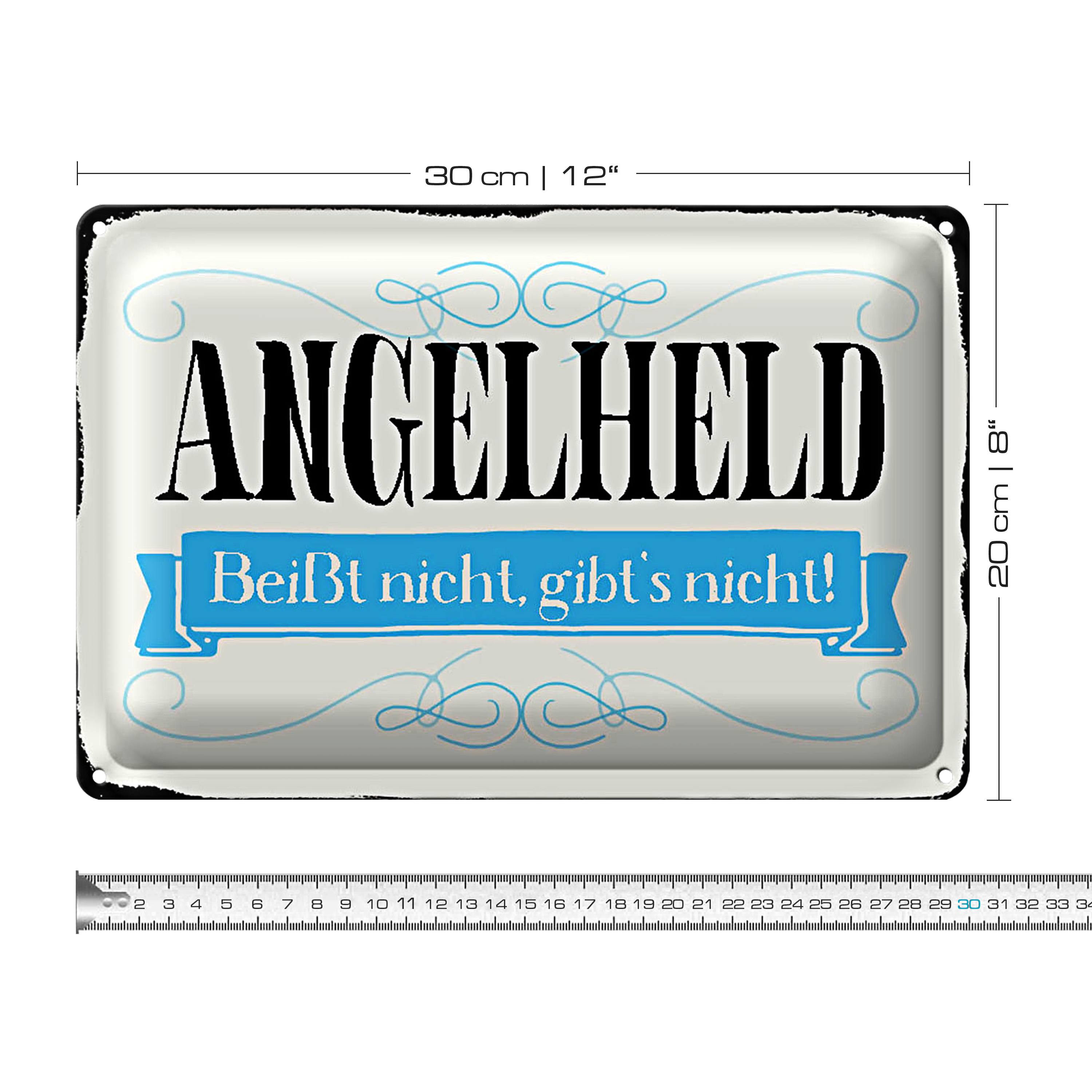Blechschild Spruch 30x20cm Angelheld beißt nicht angeln
