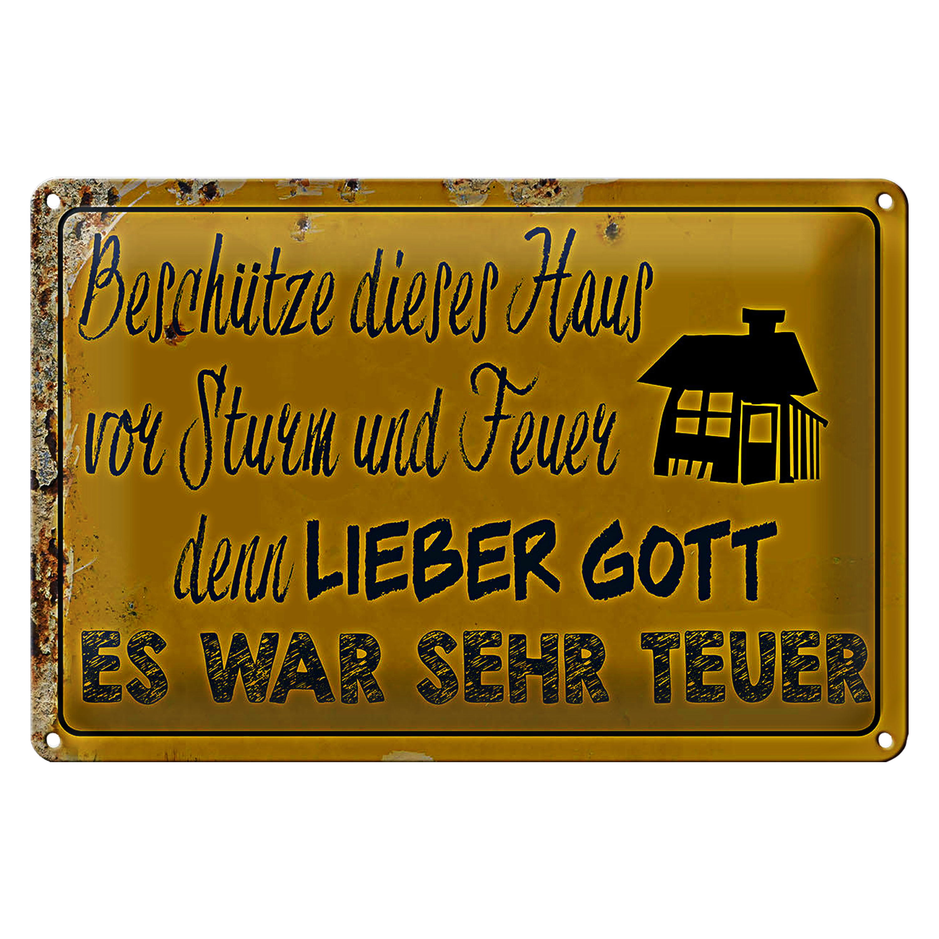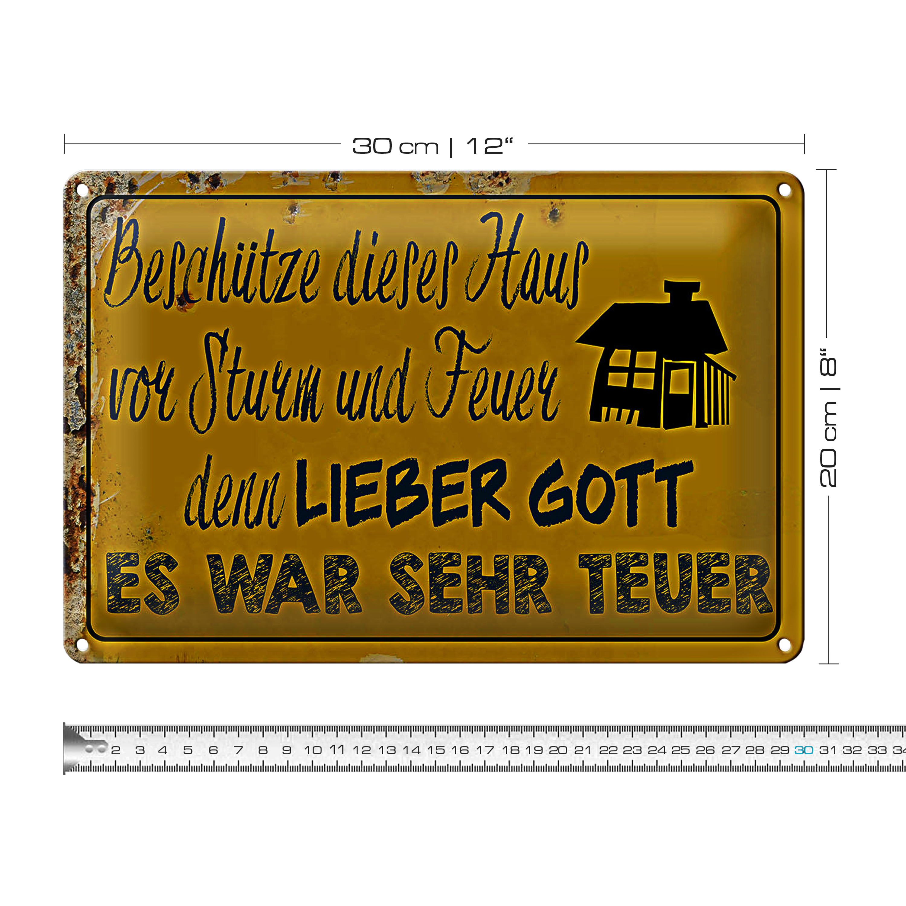Blechschild Spruch 30x20cm beschütze Haus vor Sturm Feuer