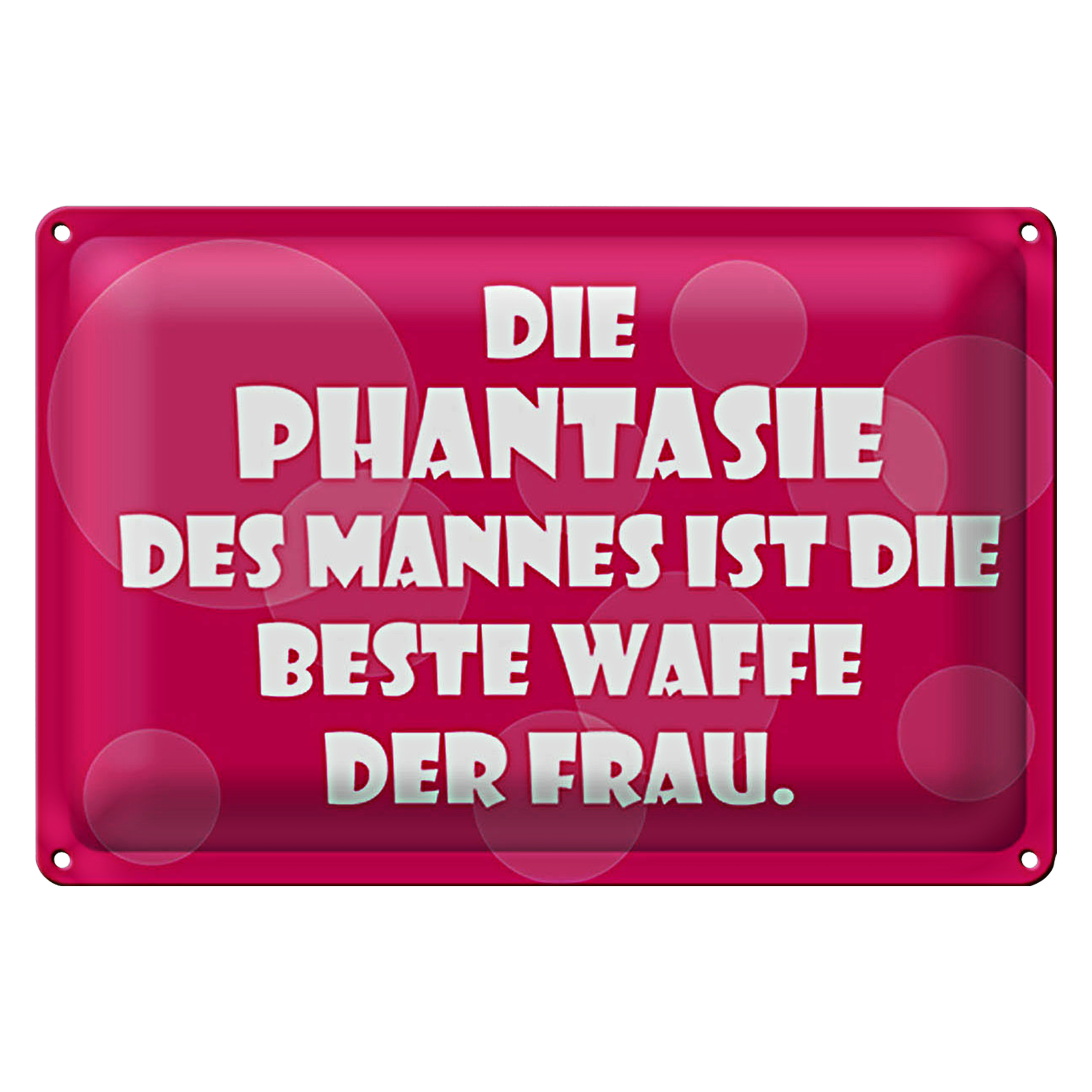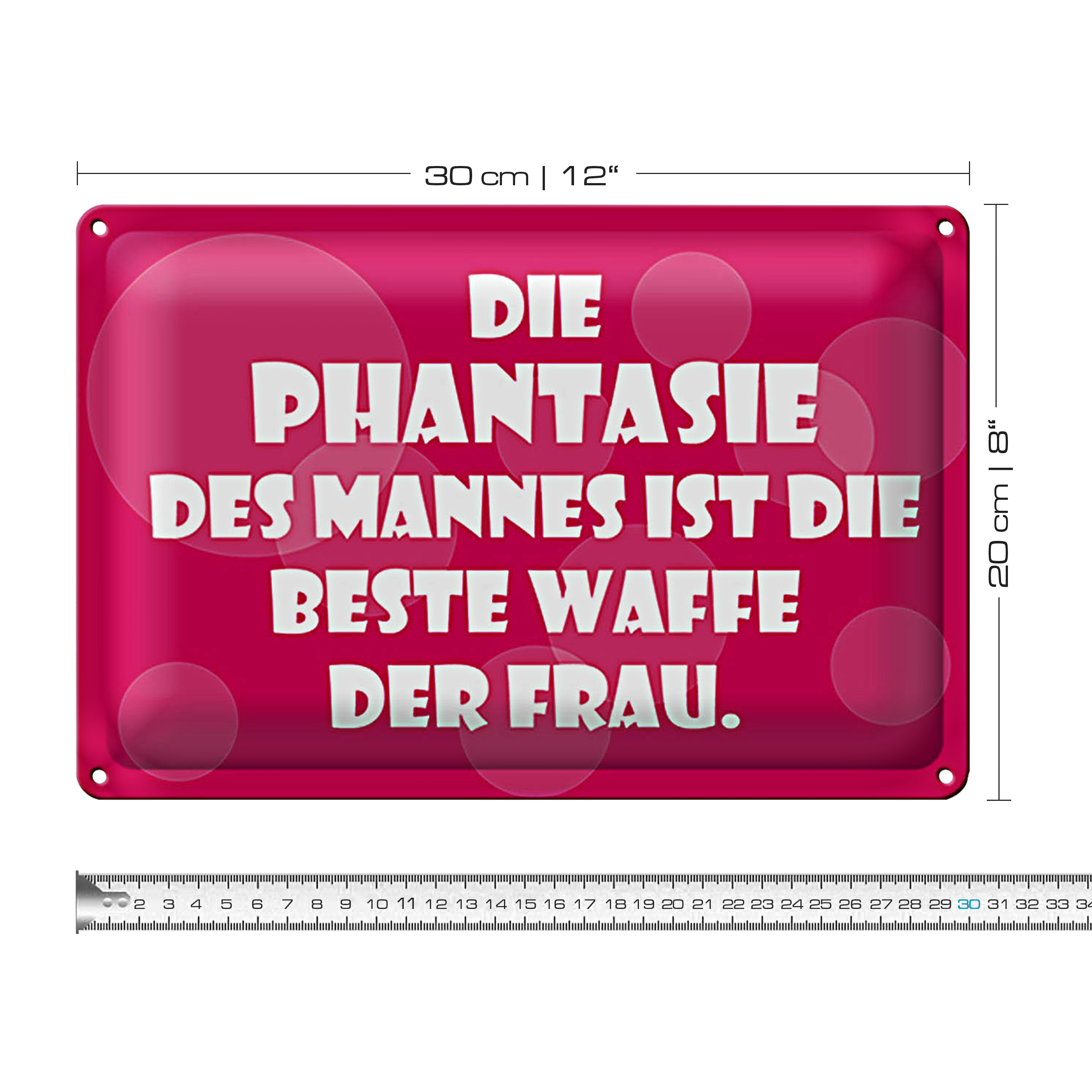 Blechschild Spruch 30x20cm Beste Waffe der Frau Phantasie