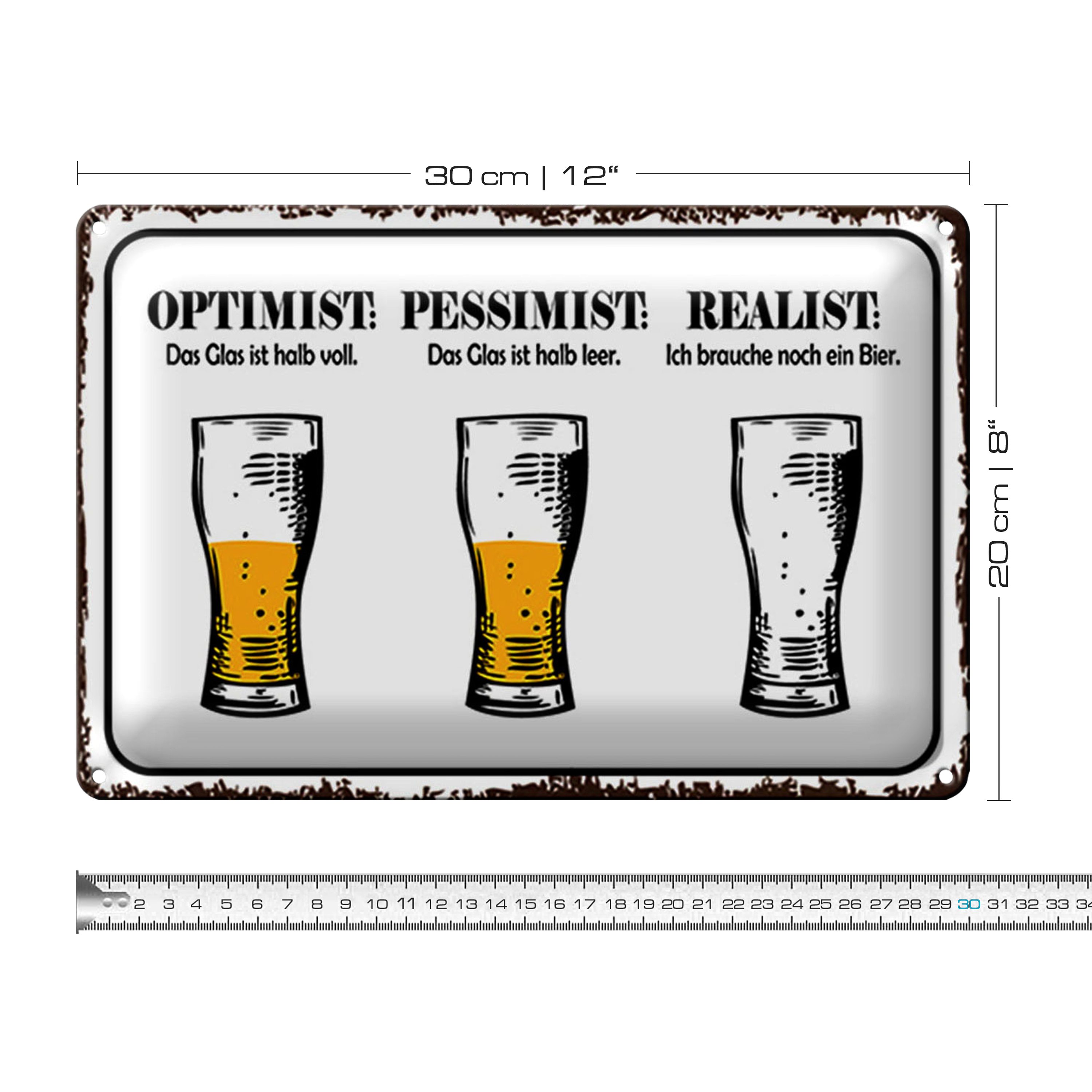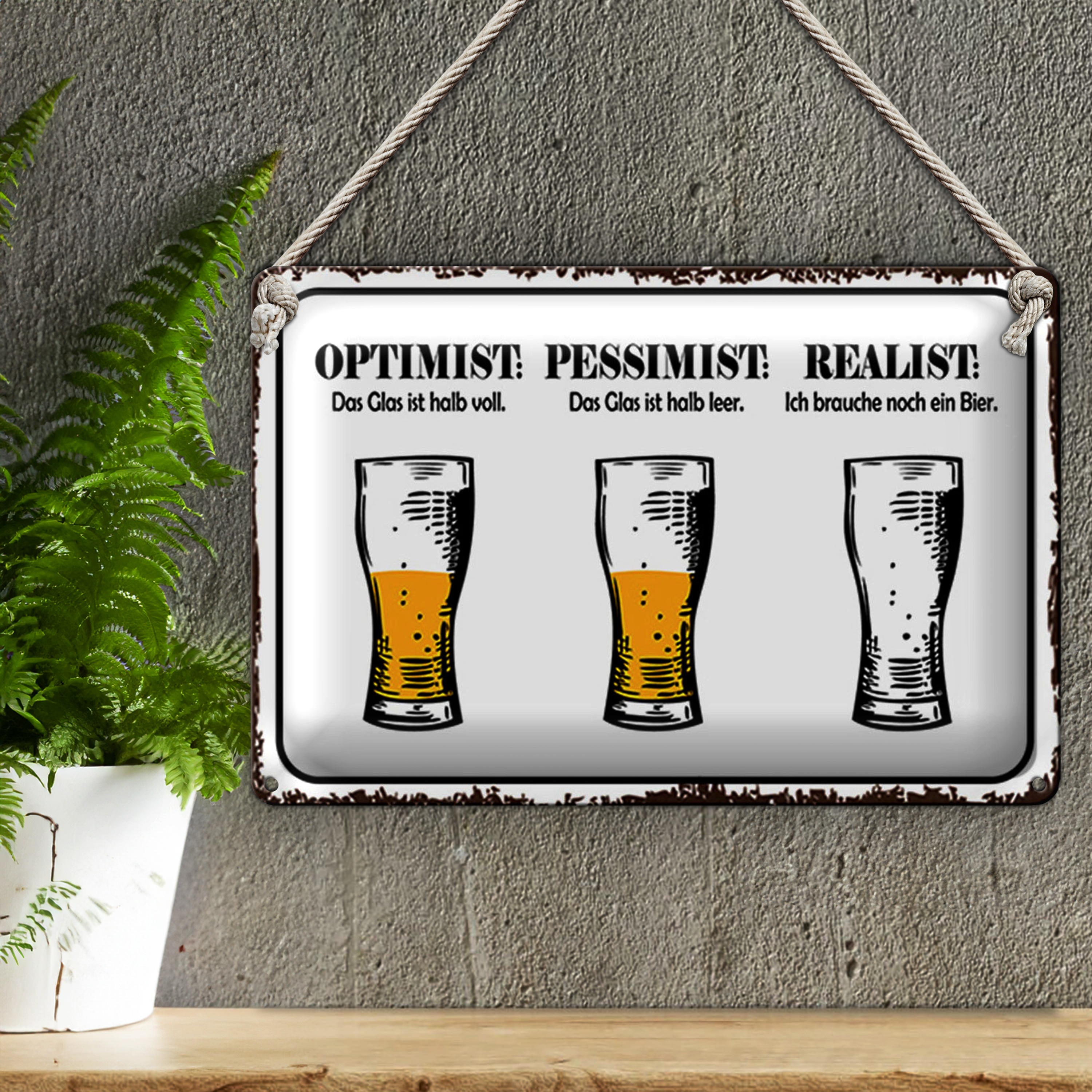 Blechschild Spruch 30x20cm Bier Optimist Pessimist Realist