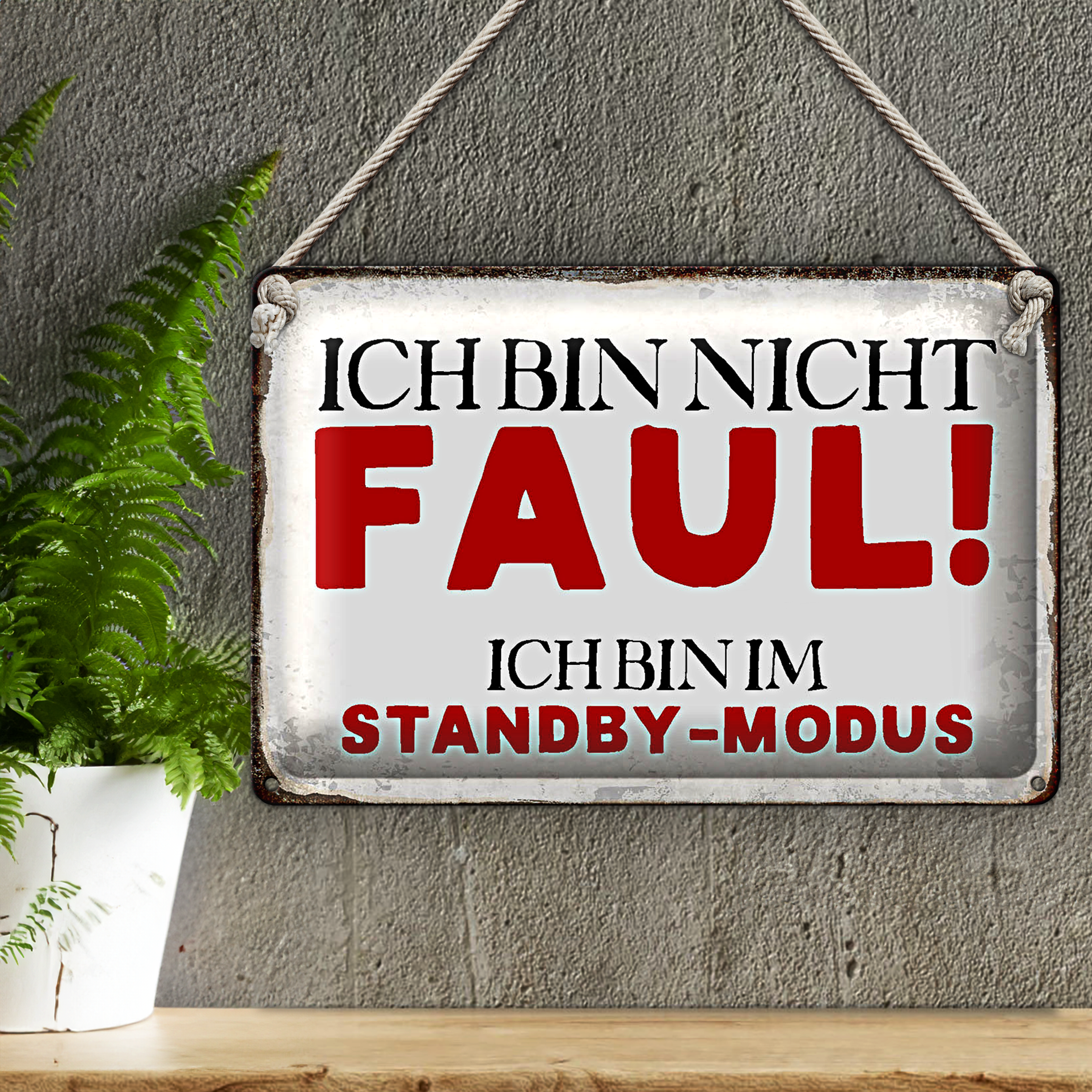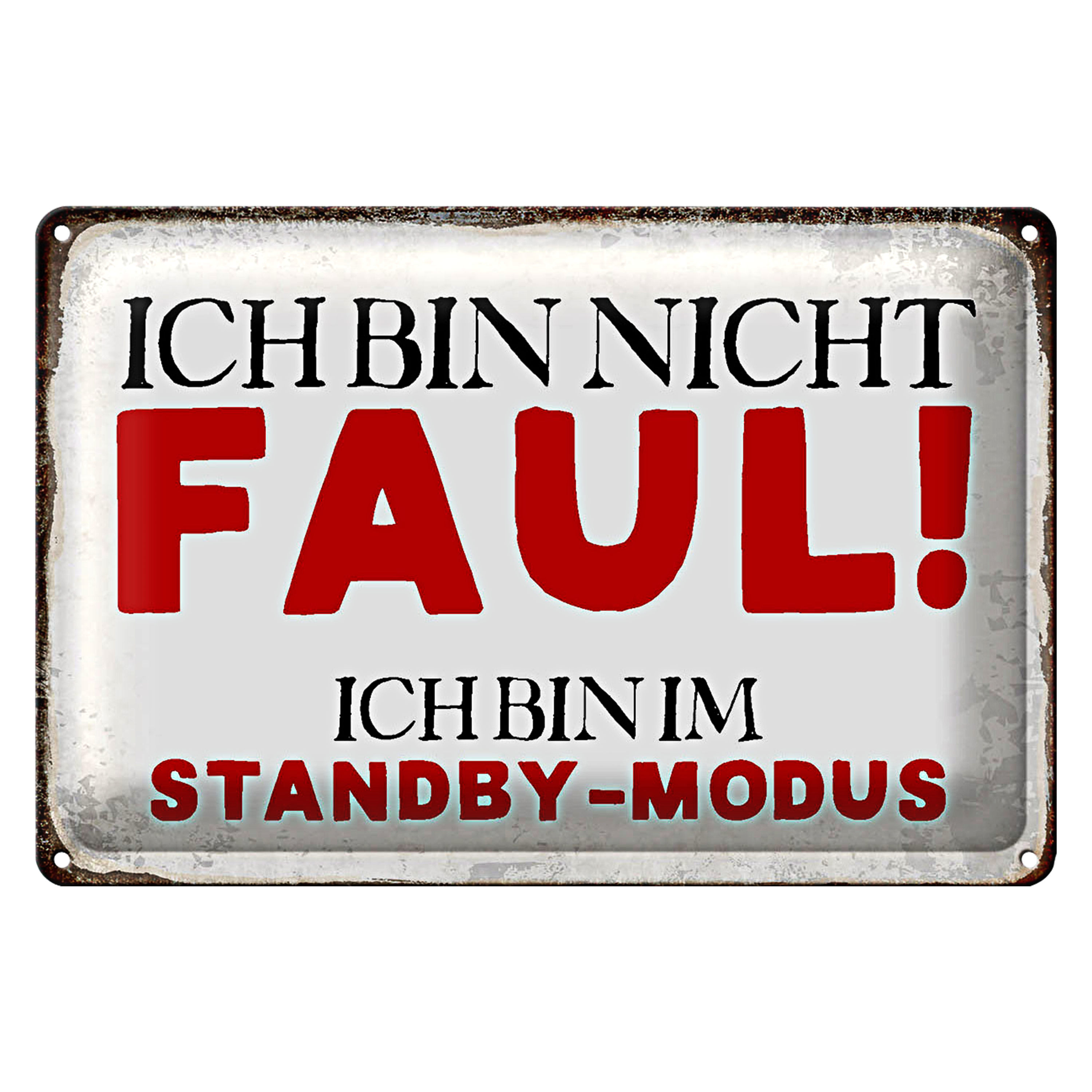 Blechschild Spruch 30x20cm bin nicht faul im standby Modus