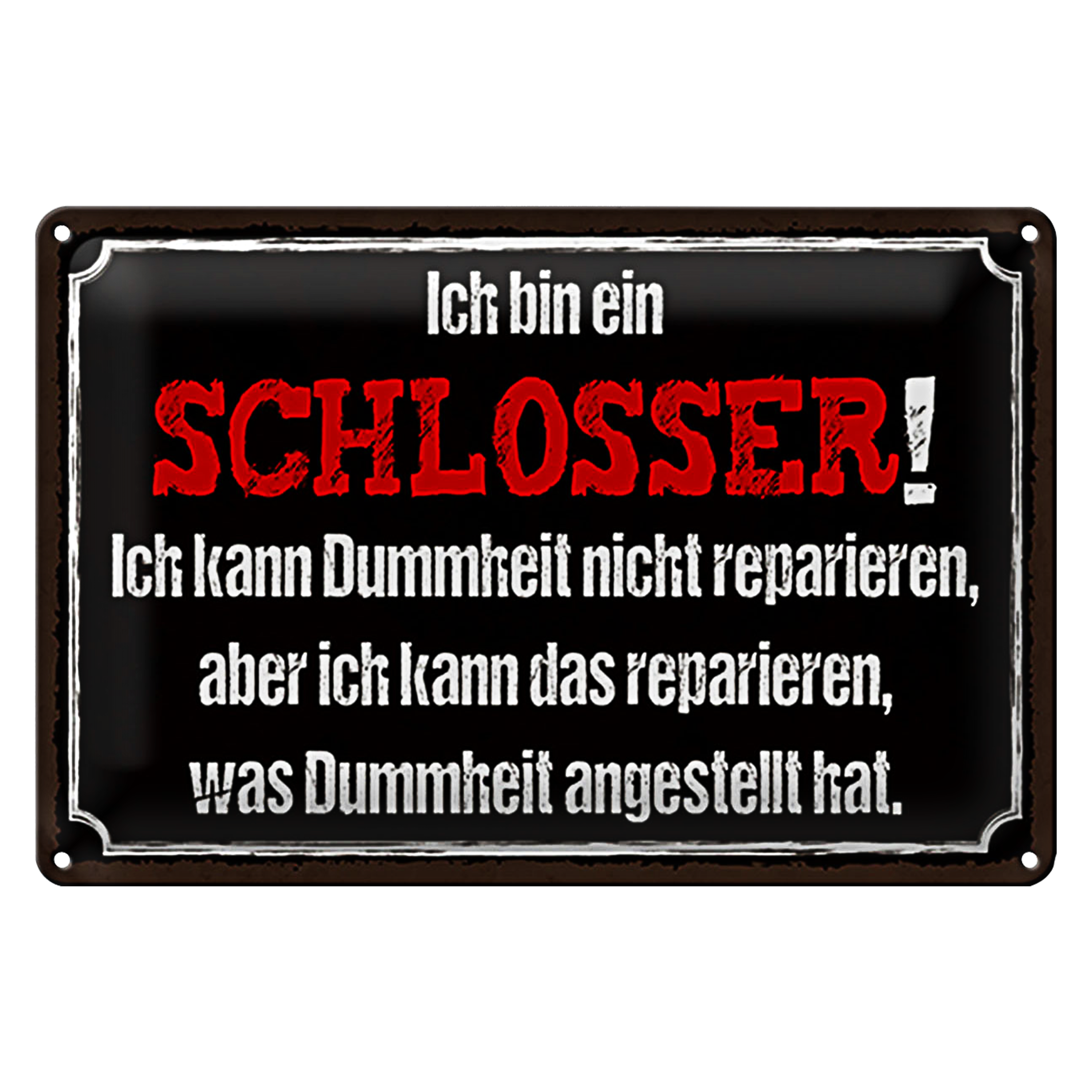 Blechschild Spruch 30x20cm bin Schlosser kann reparieren
