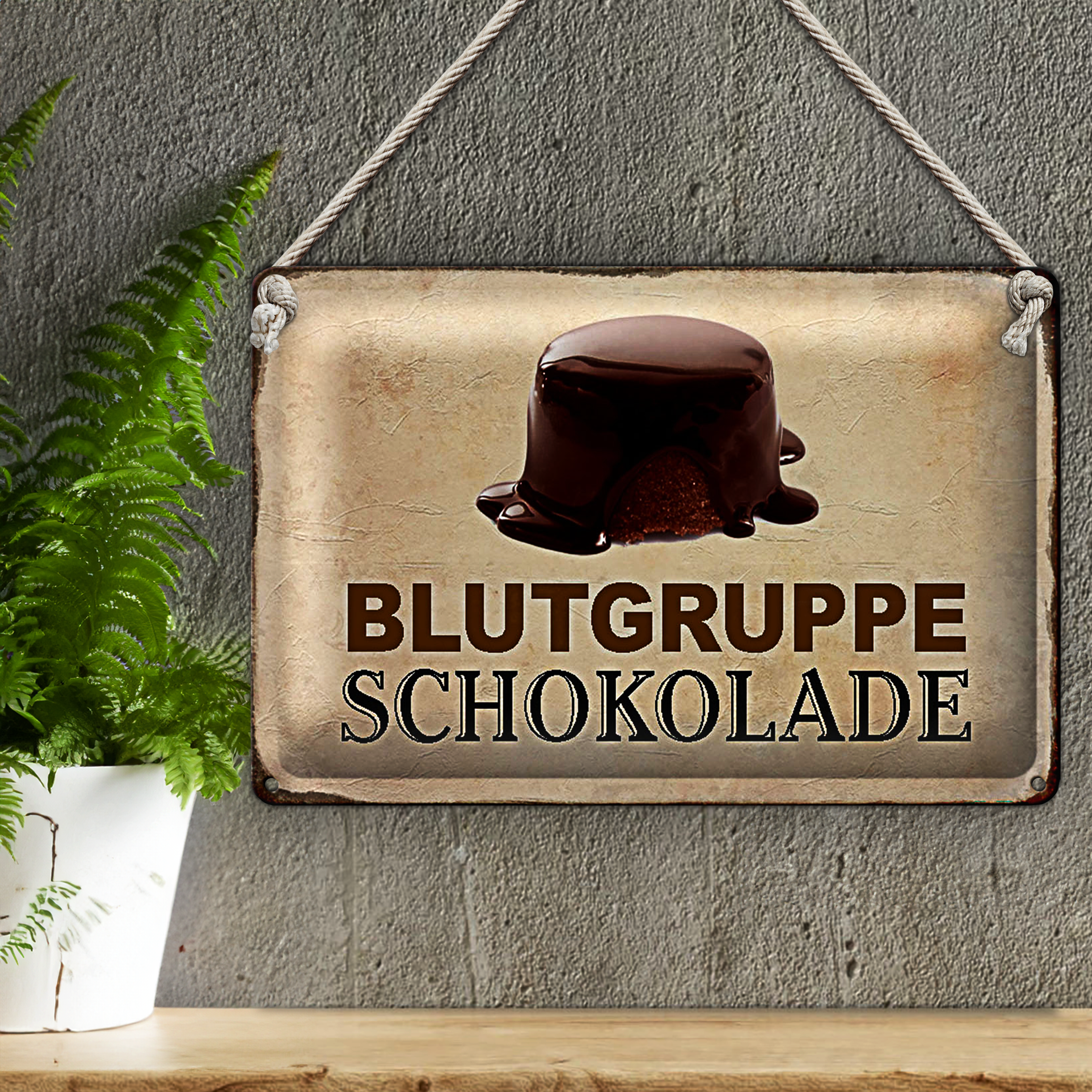 Blechschild Spruch 30x20cm Blutgruppe Schokolade