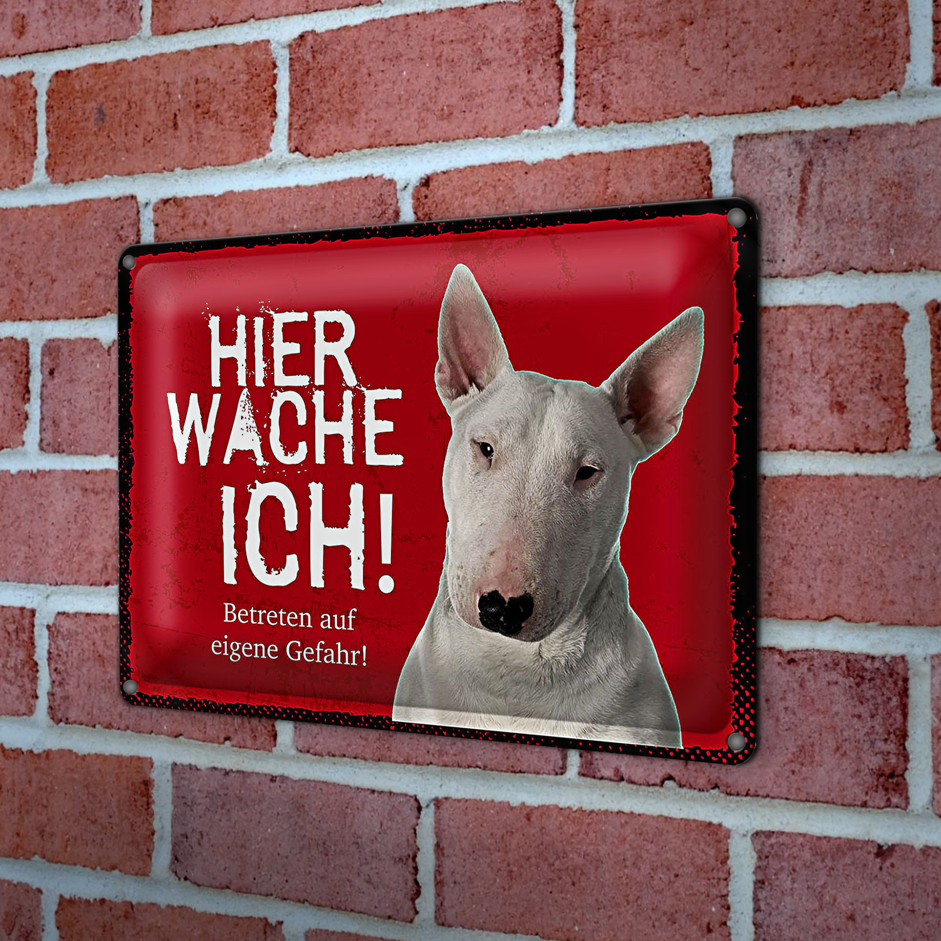Blechschild Spruch 30x20cm Bullterrier hier wache eigene Gefahr