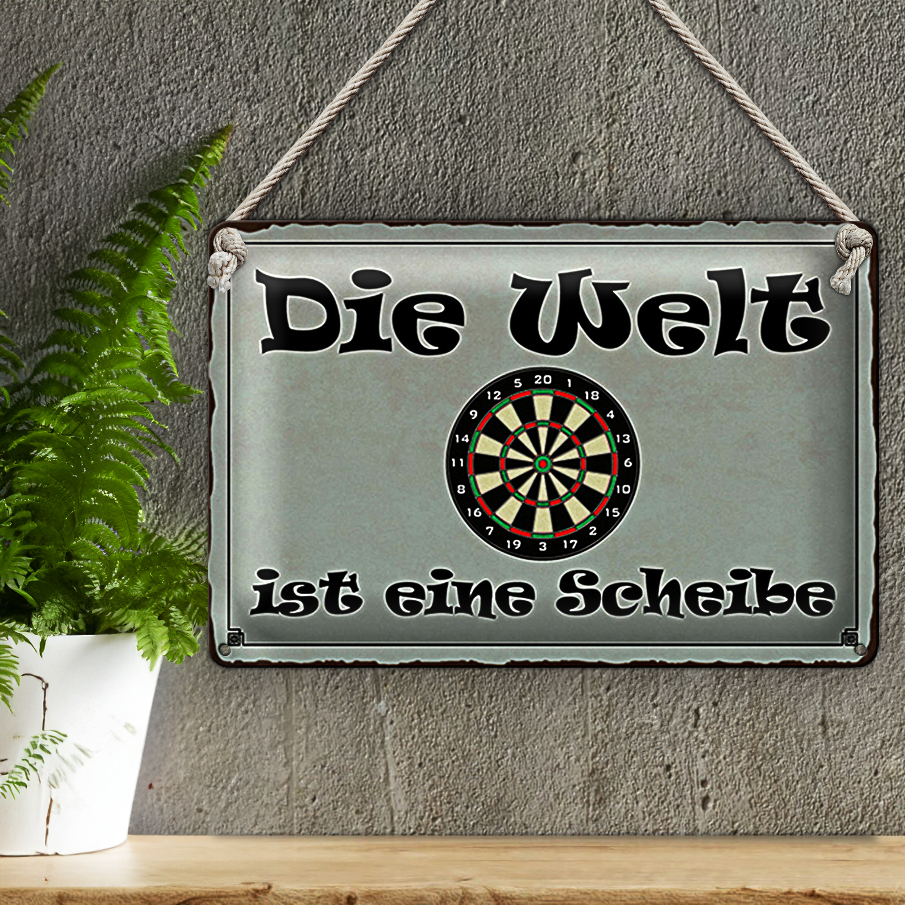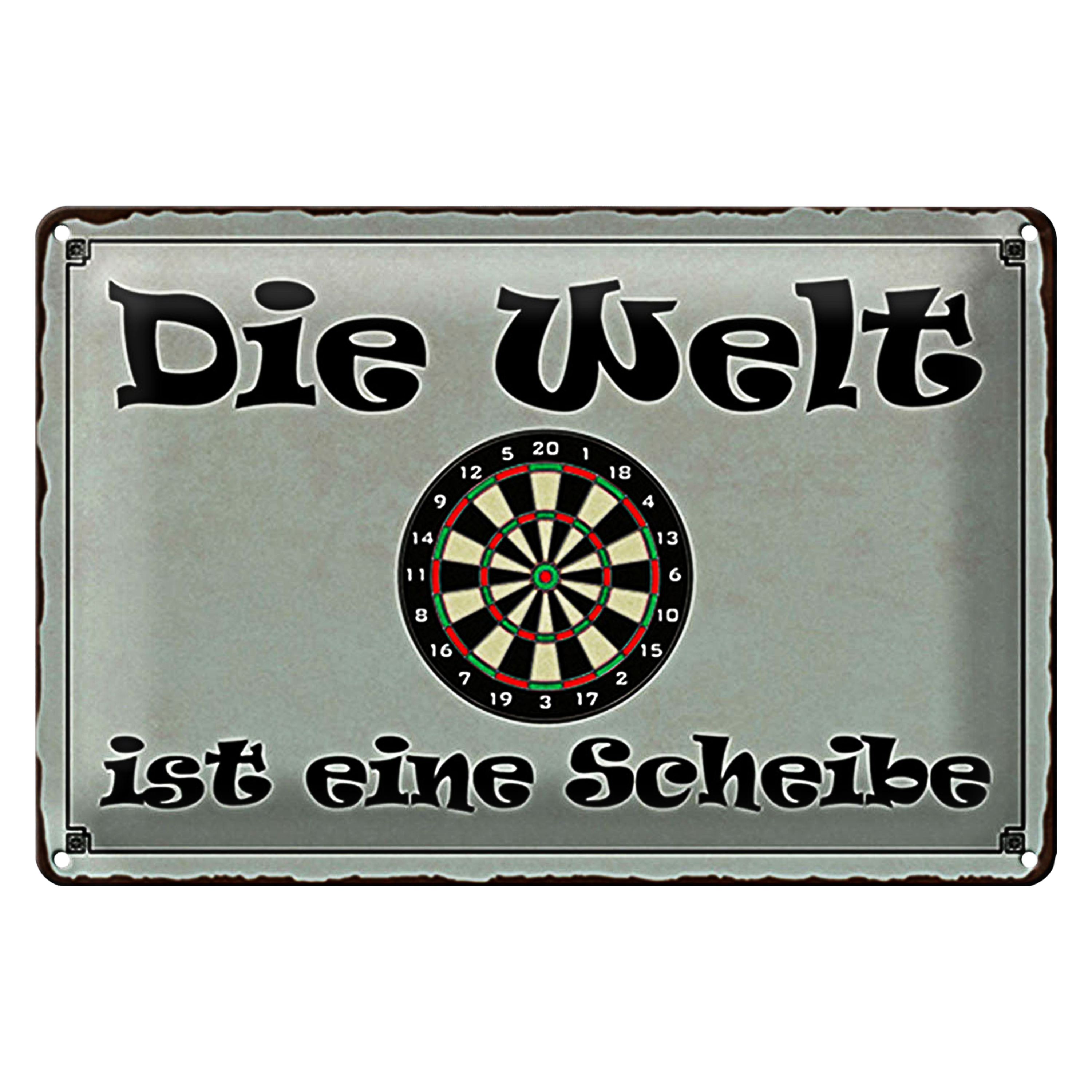 Blechschild Spruch 30x20cm Darts die Welt ist eine Scheibe