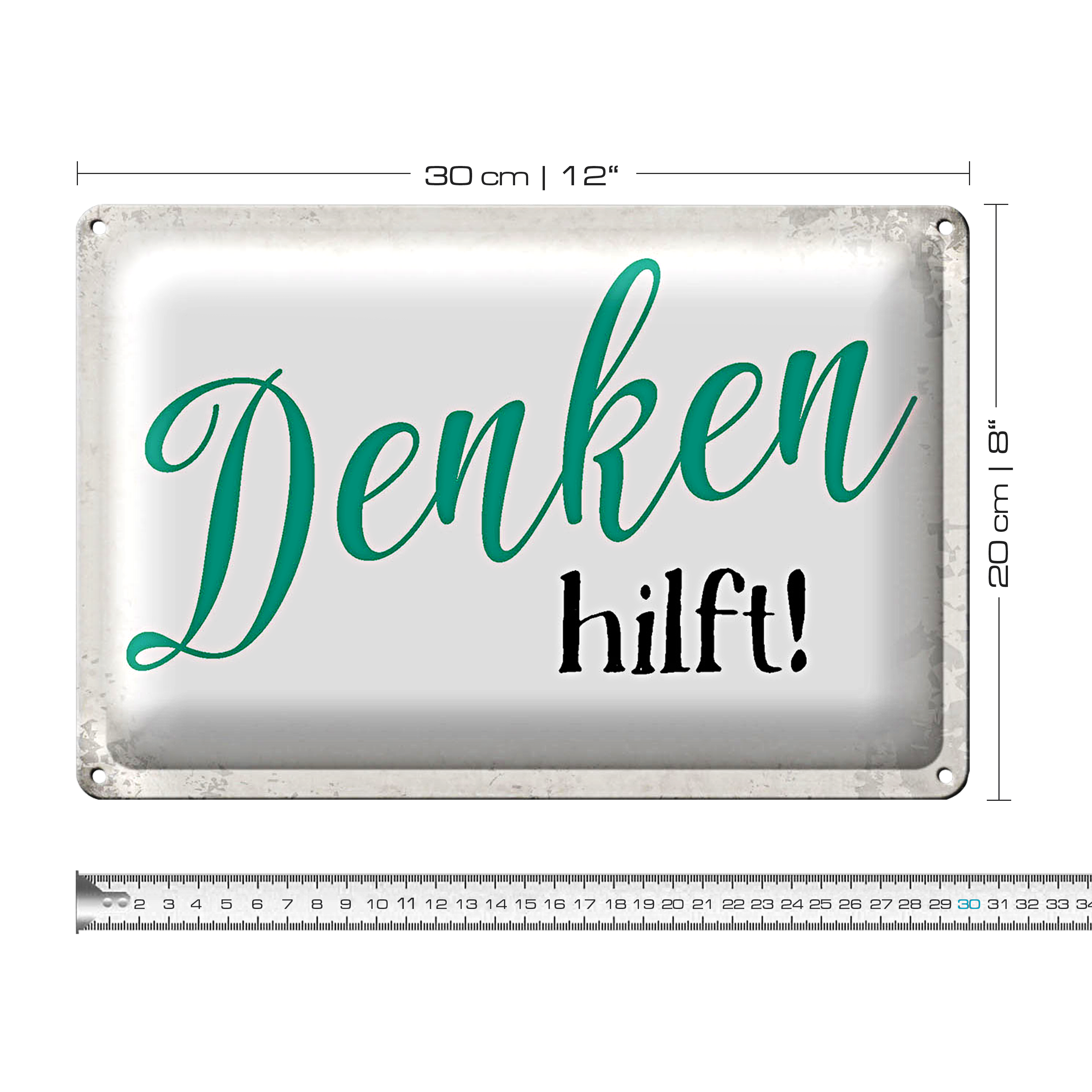 Blechschild Spruch 30x20cm Denken hilft Retro