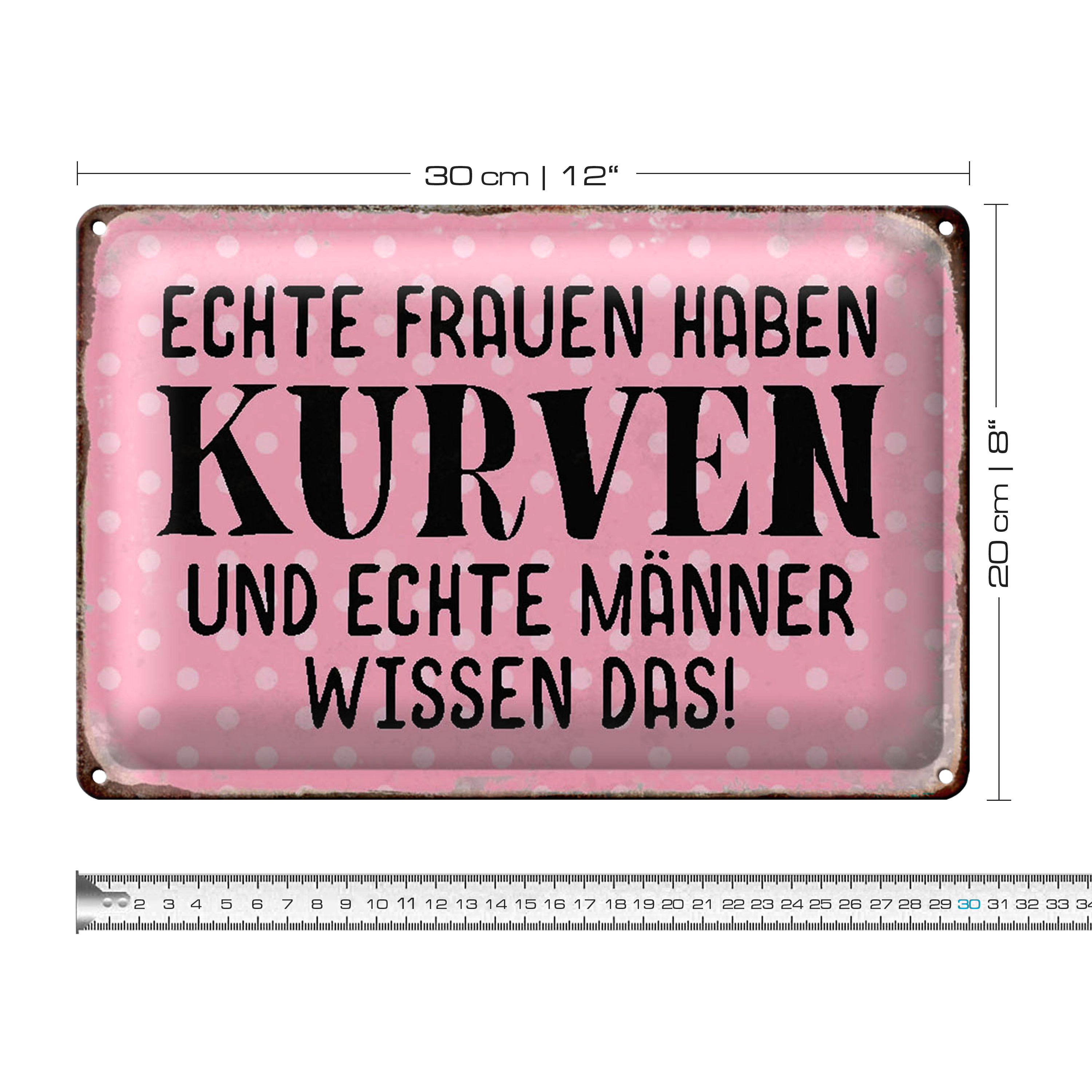 Blechschild Spruch 30x20cm echte Frauen haben Kurven Männer