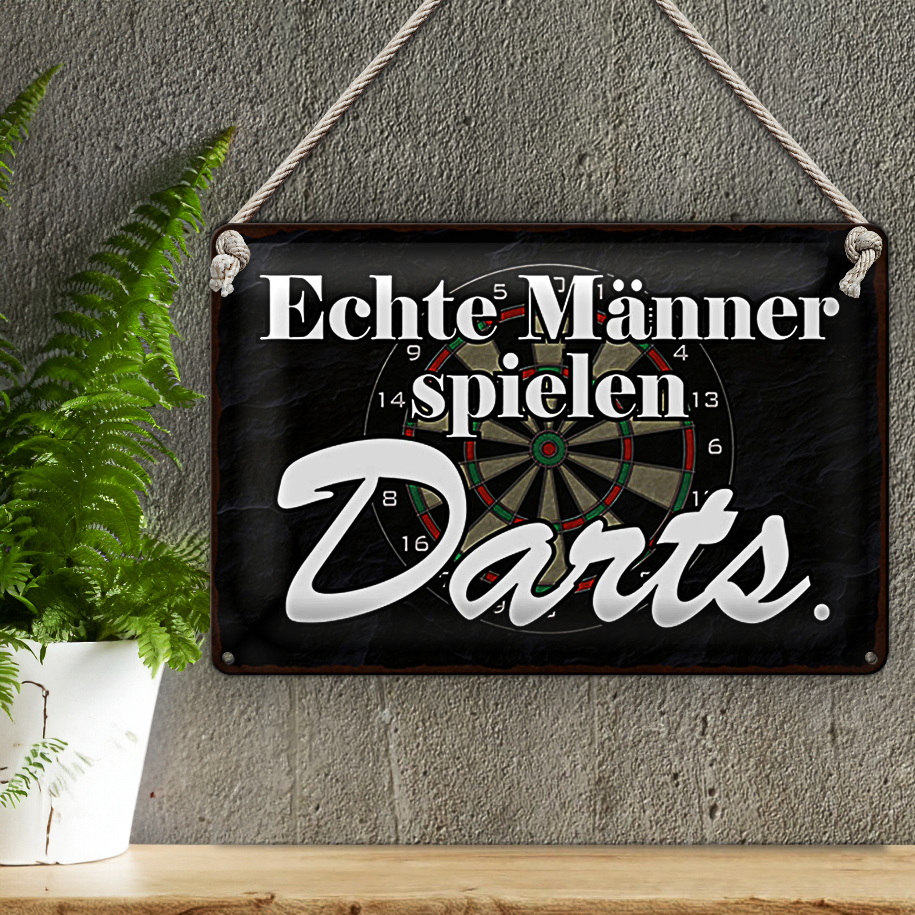 Blechschild Spruch 30x20cm echte Männer spielen Darts