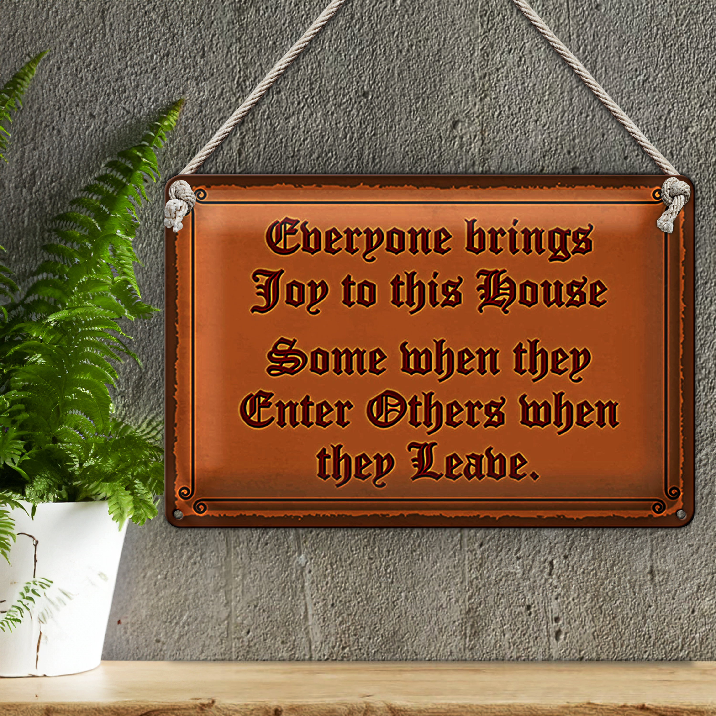 Blechschild Spruch 30x20cm everyone brings joy this house